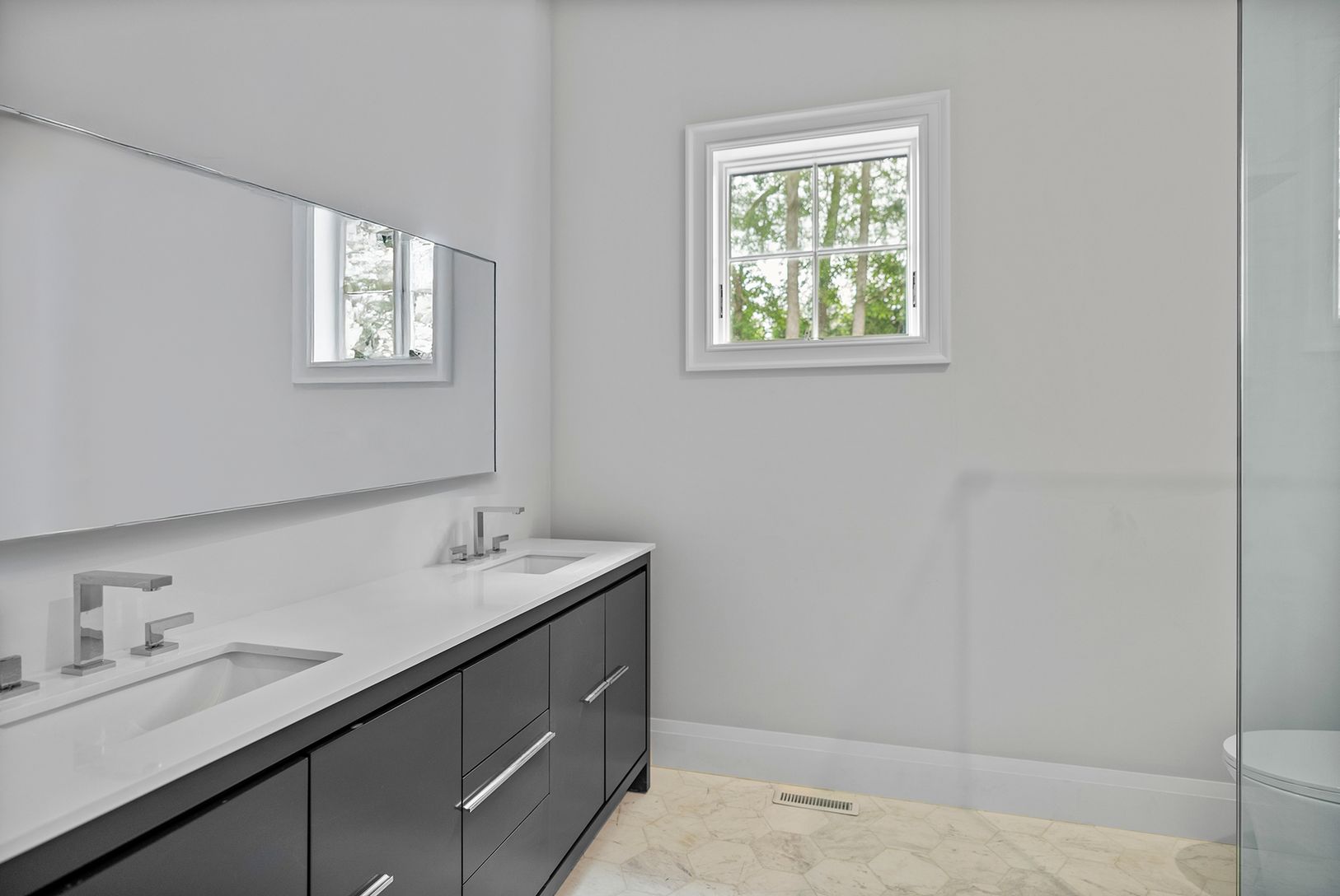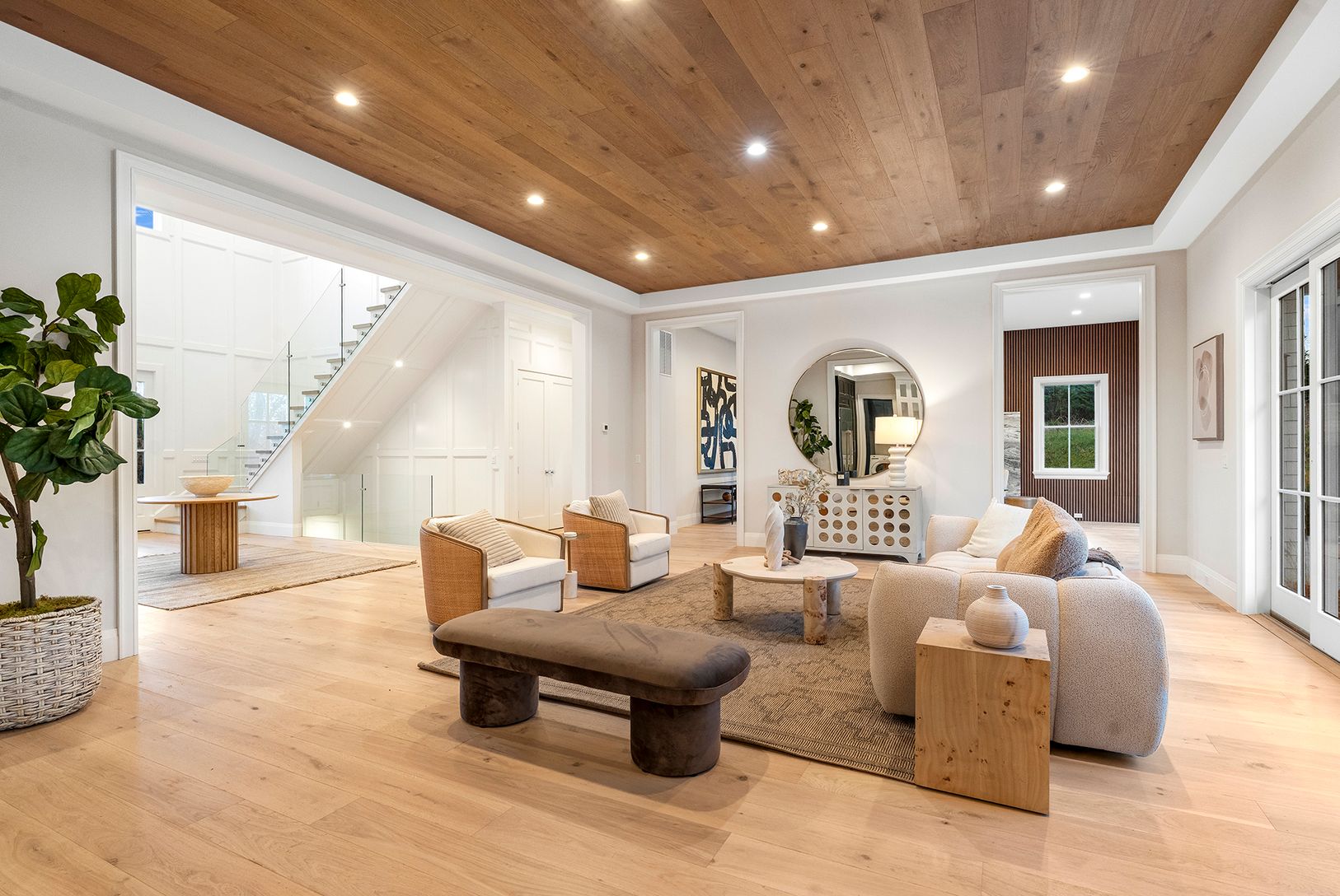 Stunning new construction situated on a 1.60+\- acre flag lot near the village of Sag Harbor, across from Little Peconic Bay. In a completely private, tranquil setting, this modern traditional style home features 7 bedrooms, 9 full and 2 half bathrooms, and total living space including the lower level of 7,985 square feet. The main level features a double-height foyer leading to a great room with an open kitchen, living room, and family room w