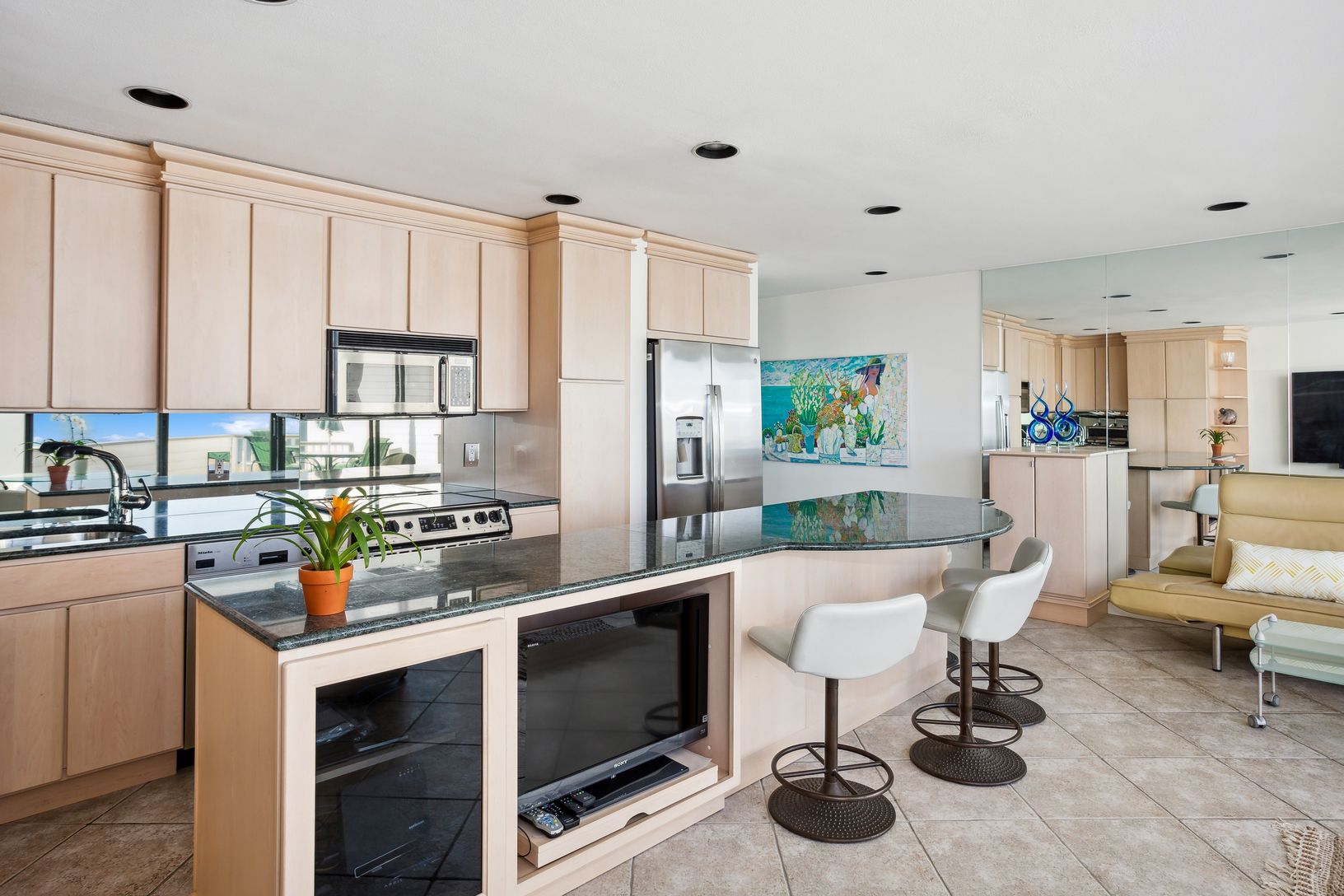 With 180 degree Oceanfront views, this fabulous and rare top floor 2 Bedroom, 2 full bath gem is ready for summer occupation. The open "E" floor plan with full kitchen with island dining, light and bright living room and dining area, a large patio for outdoor dining or lounging and uninterrupted views of the ocean, beach and hopefully a whale! Each bedroom has bay views, ample closets and full bath/showers. The unit boasts wonderful additional