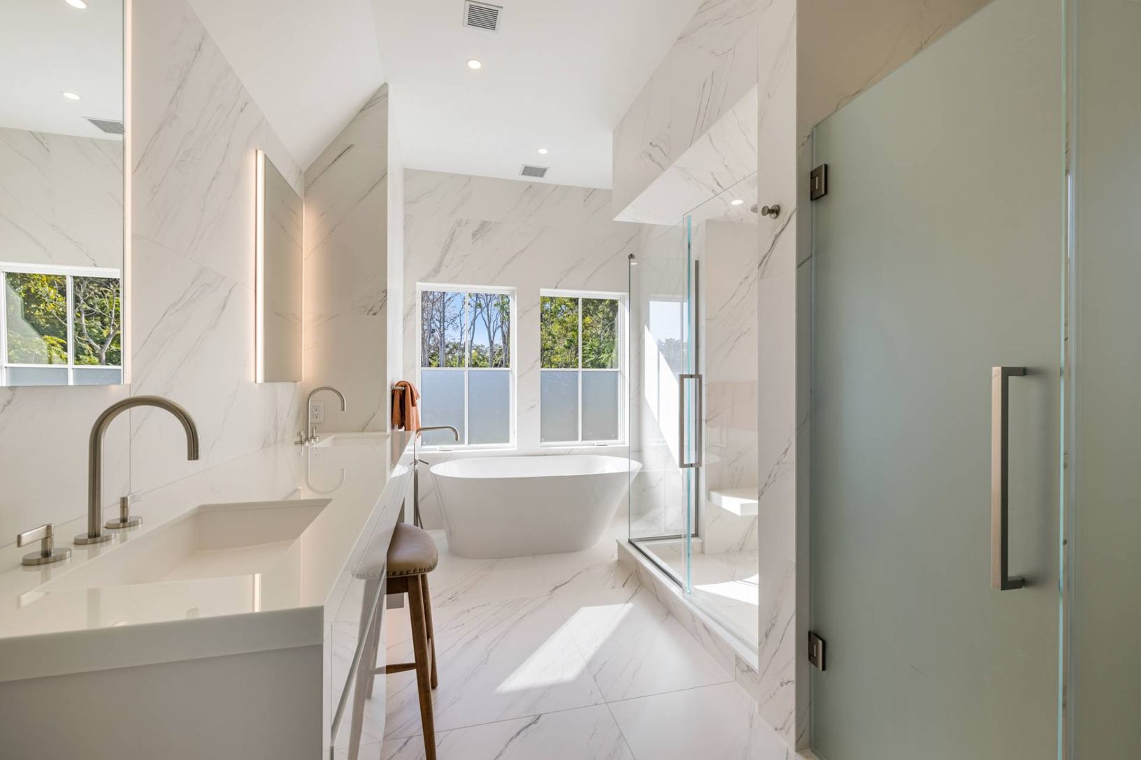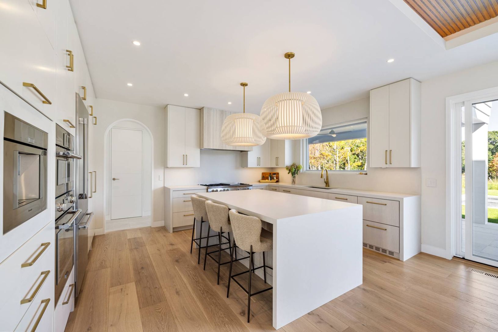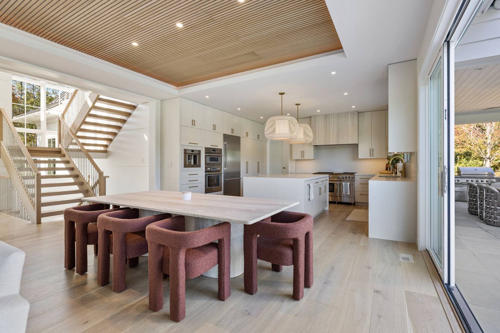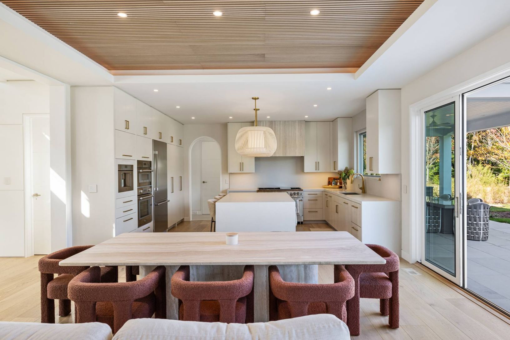 New construction from Farrell Builders in Sag Harbor is a true fusion of luxury, leisure, and natural beauty, delivering sprawling panoramic views of the golf course, reserve, and nearby bay beaches. Meticulously designed, the 3-level home is situated on an expansive 1.9 acres and offers 6 ensuite bedrooms, a detached 2-car garage, a heated gunite pool and spa, tennis, a fully equipped home gym with an indoor paddleboard court. Down a long, pr