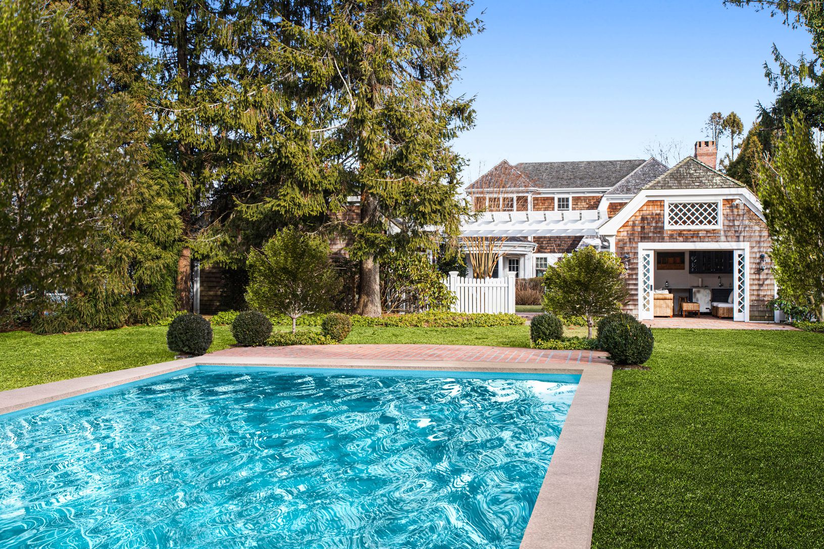 This impressive traditional Gambrel home with six en-suite bedrooms sits south of the highway. An unbeatable location with immediate proximity to Southampton Village shopping, dining and the highly esteemed sandy ocean beaches of the Hamptons. Situated on a half acre, the first floor opens to a gourmet eat-in kitchen complemented by a formal dining room. Adjacent are the living room areas with a master bedroom on the first floor, as well as a