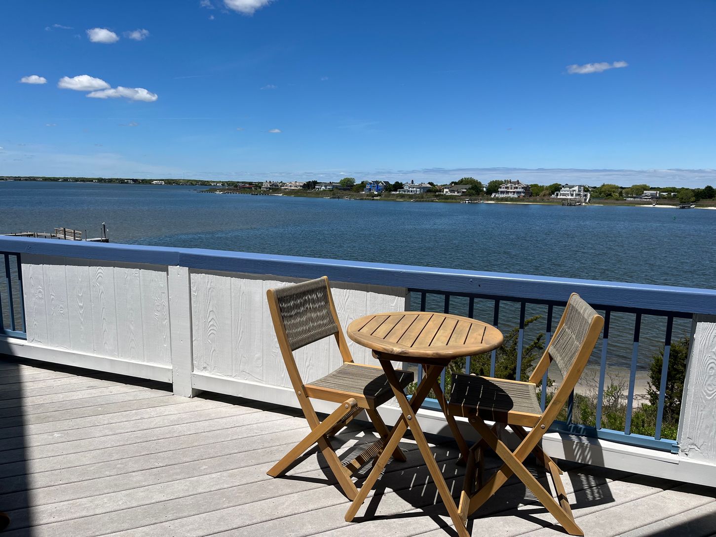 Overlooking Moriches Bay, this nicely furnished 2 bedroom, 2 full bath condo has it all! The open floor plan has a large kitchen island and living/ dining area which overlook a private balcony, perfect for indoor-outdoor summer living. This unit offers washer and dryer, a heated swimming pool, tennis courts, full time office staff, an assigned parking sp