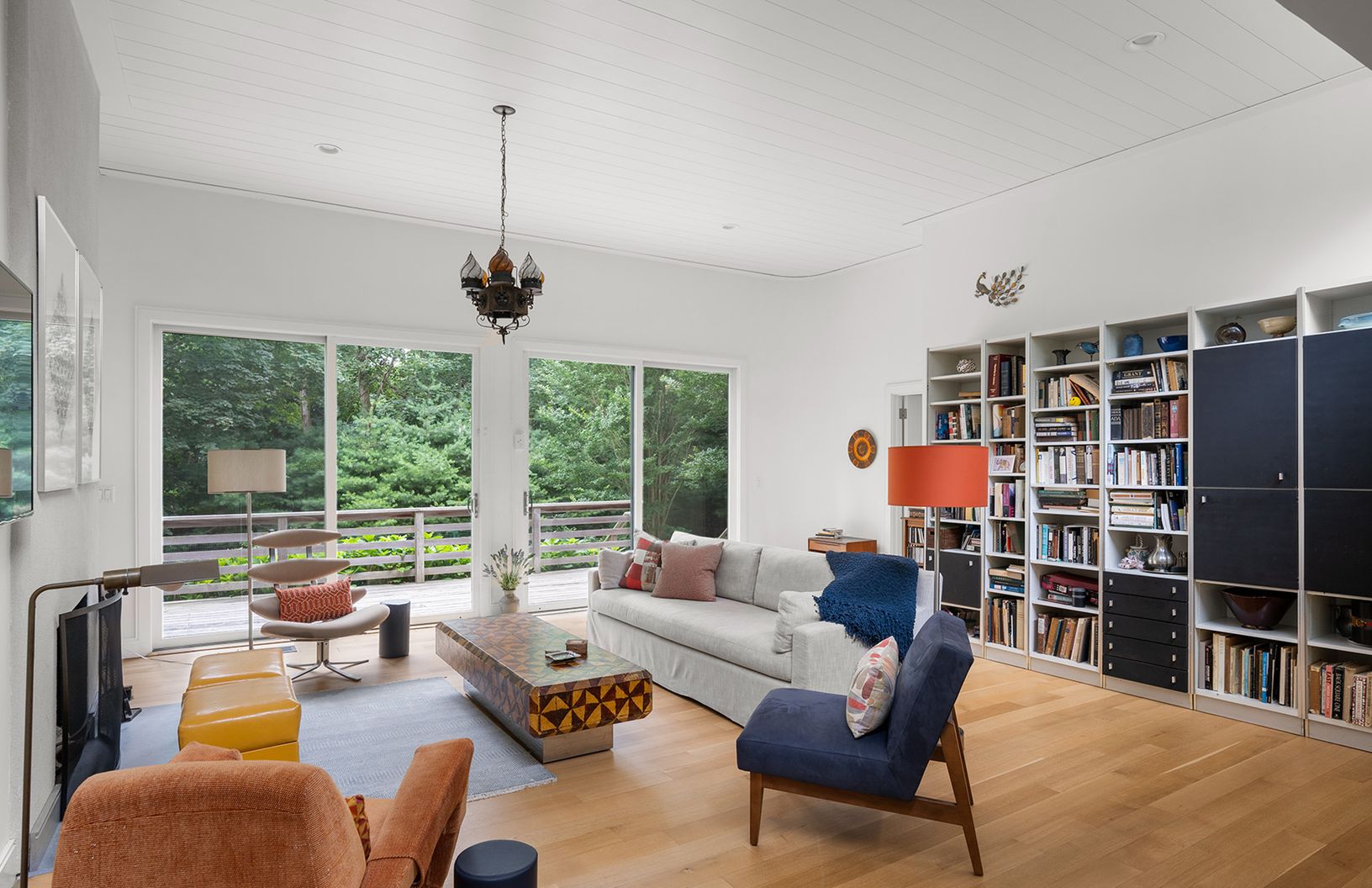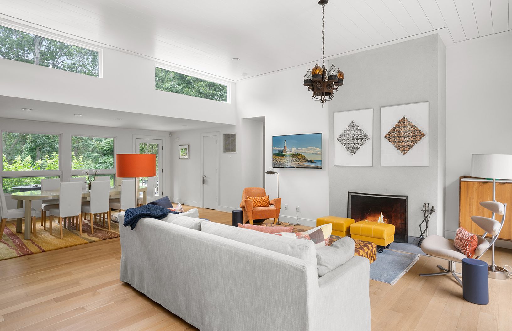 This classic and crisp custom contemporary home built by my singing partner and prolific architect Frank Hollenbeck in Amagansett is on just about one acre of land and off a long driveway. Sitting high and splashed with lights this beautifully renovated home offers four bedrooms and three full baths, wide plank white oak flooring with a spacious finished lower level, laundry, a 480 sq ft attached two car garage, new I/A septic system, and affo
