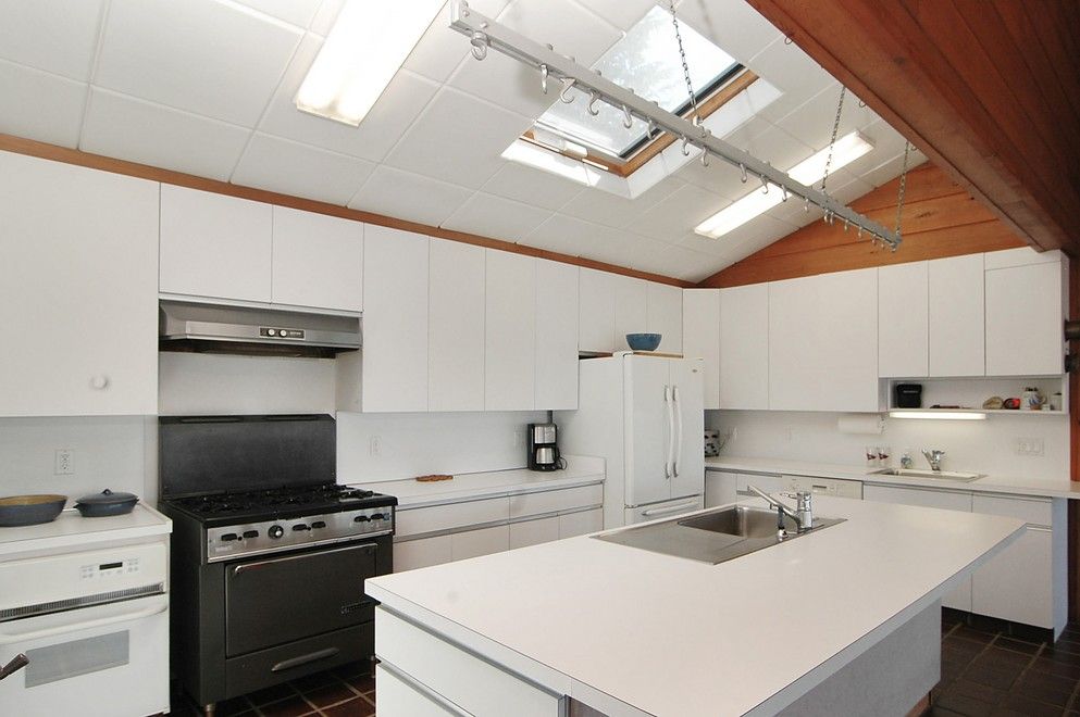 One of a kind East Lake Drive waterfront home graced with a waterside lawn leading to an incredible 175'+ dock with room for sizable vessel, plus 3 deep water moorings. Fully cleared grandfathered parcel features dramatic window walled Contemporary home set high, yet close to the waters edge that enjoys staggering views from one end of the Lake straight out the Harbor and the finest sunsets in Montauk. This home boasts soaring great room, l