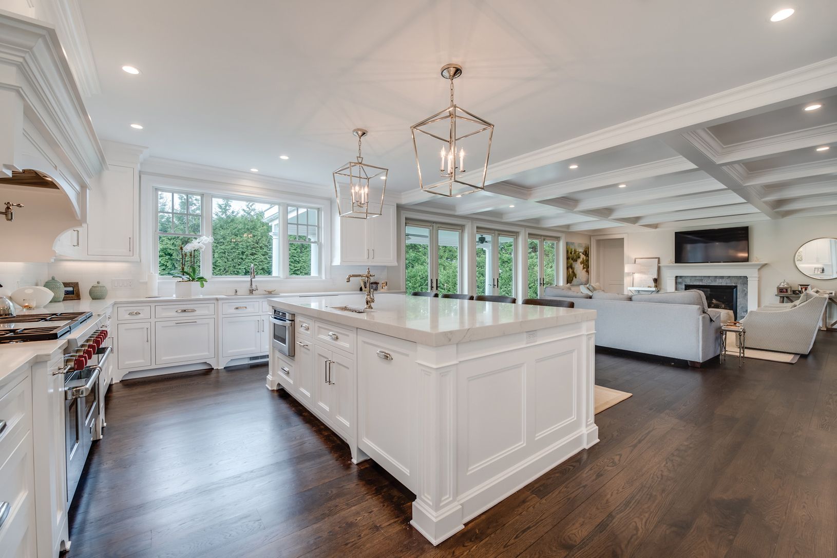 This new construction, cedar shake, magnificently landscaped 4,400+/- sq. ft. home is in the heart of the village and close to everything. The property is surrounded by mature 18 +/- foot high evergreen hedging for privacy. The gracious entry leads to the open concept great room and custom gourmet kitchen. The coffered ceiling and custom millwork moldings are two of many details found throughout this beautiful home. The chef's kitchen is full