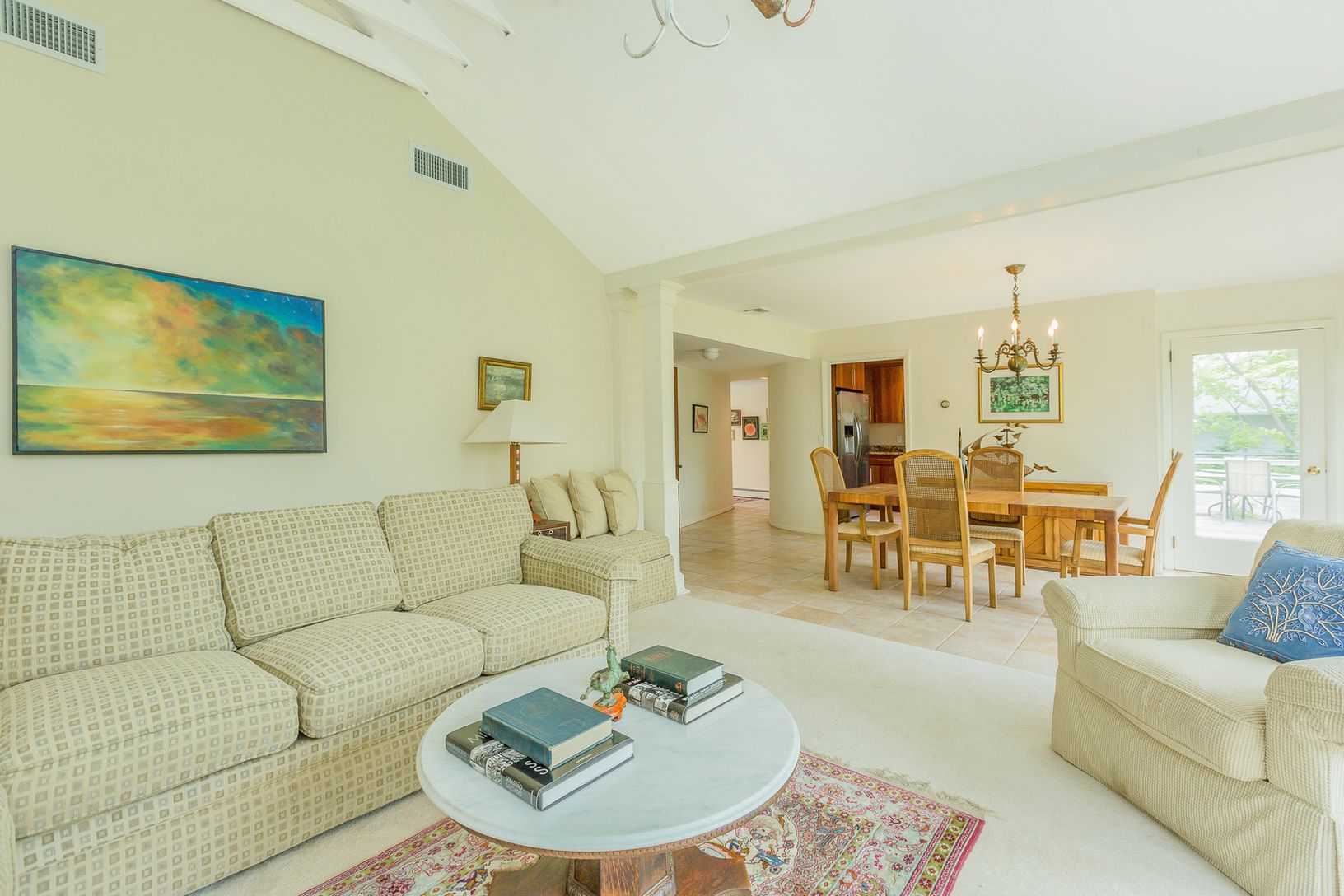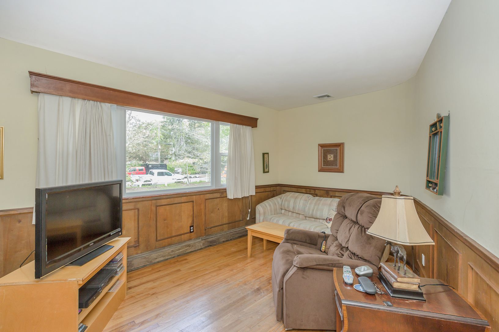 In the heart of Westhampton Beach sits this three bedroom, two bathroom on over 0.52 of an acre and features: an en-suite master; updated kitchen; two spacious living rooms--one with vaulted ceilings & floor-to-ceiling windows overlooking the sprawling backyard, the other with beautiful wainscoting and a wood fireplace; central AC; rare full basement; attached garage; updated roof & windows; and a 200-amp electric service.