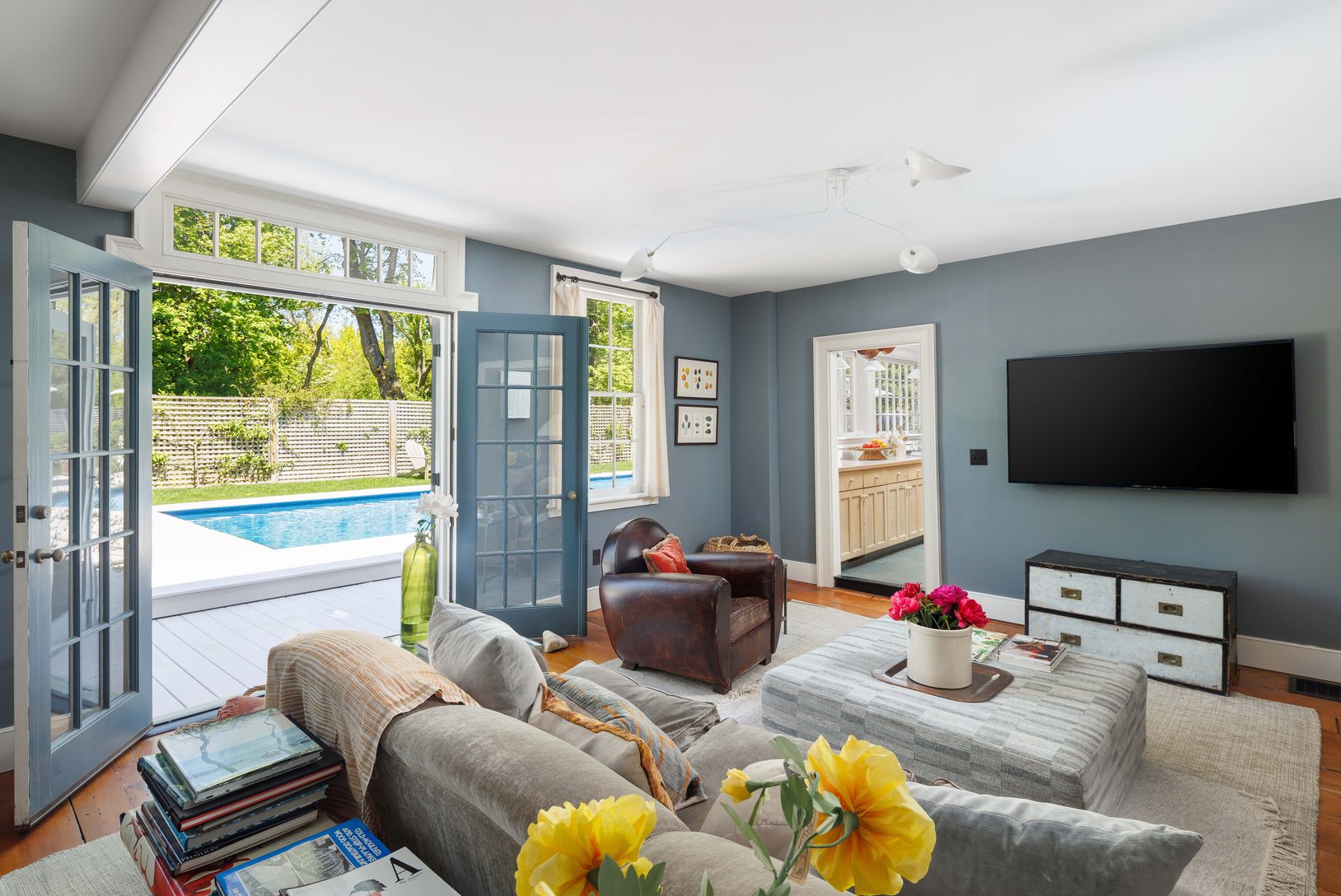 In a magnificent lush green setting is this amazing circa 1830's home meticulously restored and updated. The rooms are large and comfortable, so charming and inviting. The living room has french doors that spill out to the heated salt water pool with surround deck wonderful for entertaining and lounging. There are 3 fireplaces, formal dining room, sitting room/ office, 2 full baths, and three bedrooms, new Kohler 2022 full house generator. The