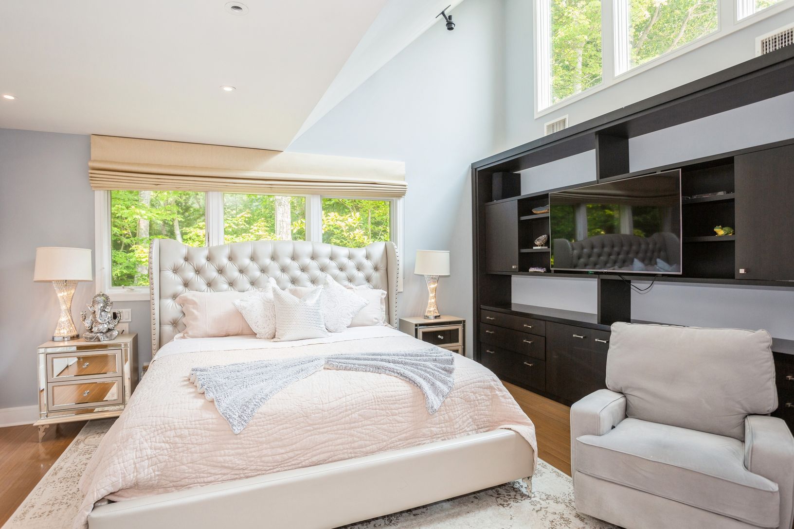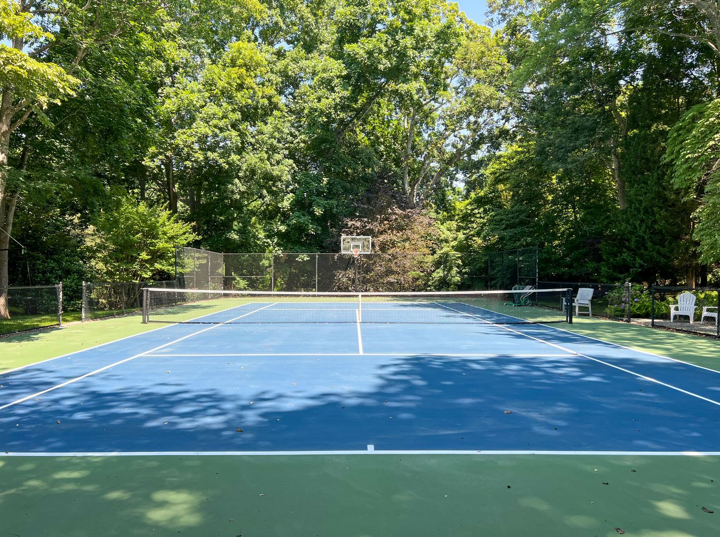This spacious contemporary home sits on 2 acres in Sag Harbor. There is a heated 20 x 40 pool as well as a tennis and basketball court. Close to Sag Harbor Village, Bridgehampton and Southampton.The floor plan is open on the first floor with a large living area, a great room with marble fireplace and views from every angle. There is a formal dining area with bar, a spacious eat-in kitchen with island seating. There are stainless steel appli