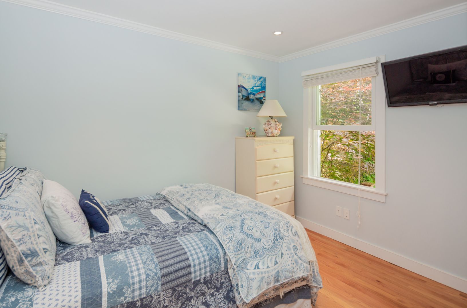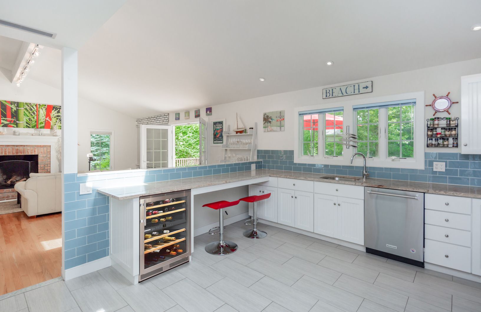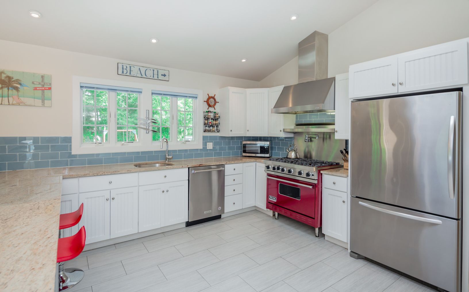 Located in the private Clearwater Beach community, tucked behind mature plantings and a gated driveway, discover this pristine 3 bedroom, 3 bath contemporary beach house. Enter through charming patio to spacious living room with wood burning fireplace and formal dining area that opens to impressive gourmet chef's kitchen. The kitchen is equipped with Viking stove, wine fridge, and numerous stainless steel appliances. The large master bedroom