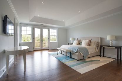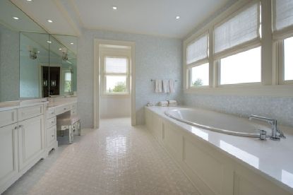 The unique interiors of this ten bedroom, twelve and two half bath house were custom designed by the Alyse Ruth Design Group, who personally selected all of the extraordinary materials. The design's centerpiece is a one-of-a-kind second floor master suite boasting two sitting rooms, three large closets (two with extensive built-ins of the highest quality) and complementary 'his' and 'hers' master baths. Both of these bathrooms benefit from ste