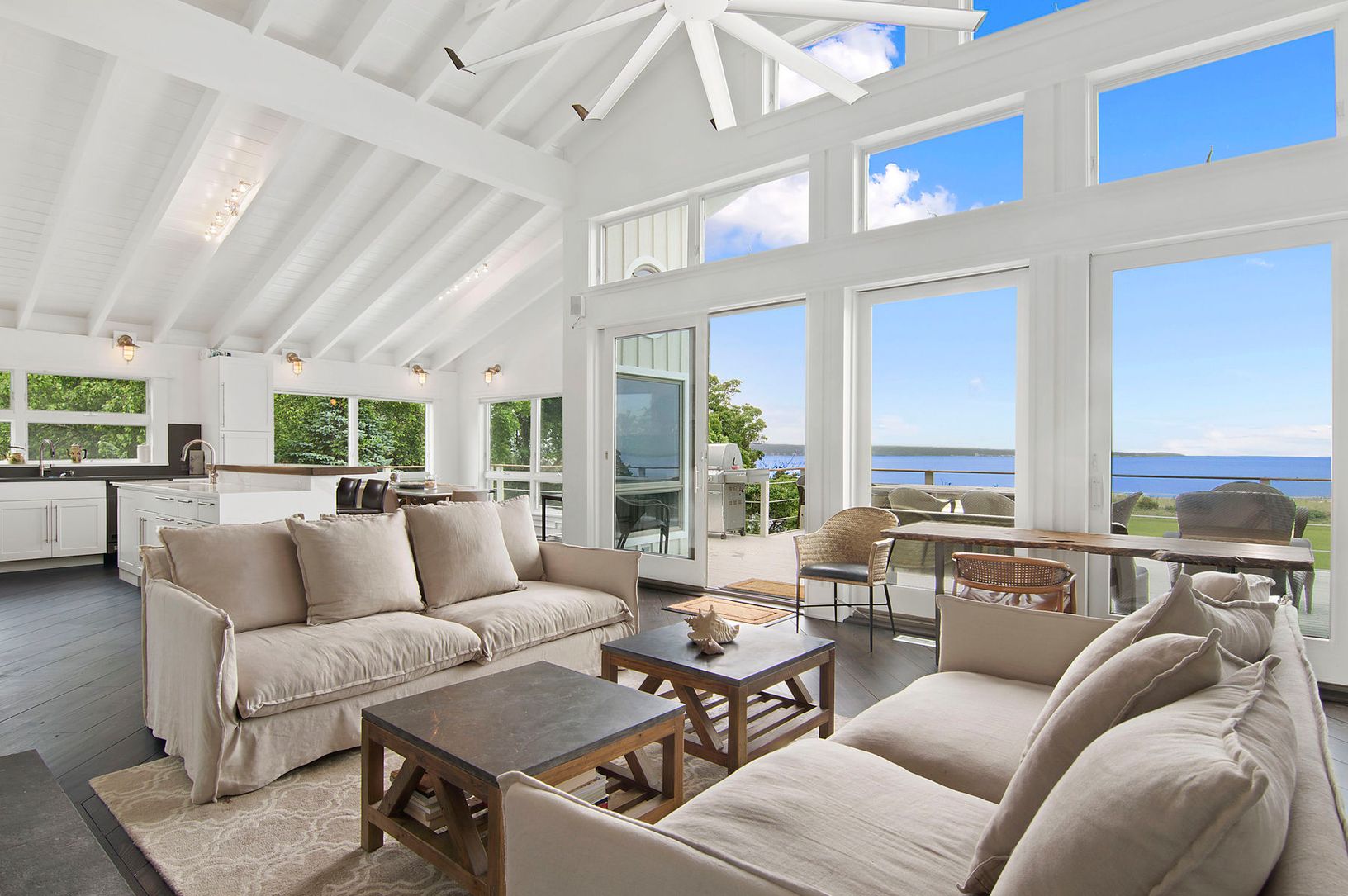 Just moments from Long Beach, this Sag Harbor gated waterfront compound offers spectacular sunsets and unobstructed views of Noyac Bay, Shelter Island and the North Fork. Situated on 1.2 acres, the property is comprised of two separate parcels and includes a Main House, Guest House and Pool House/Garage. The main house boasts 4 bedrooms, 3.5 baths and 2 separate living areas. The breathtaking views are maximized with a second floor living roo
