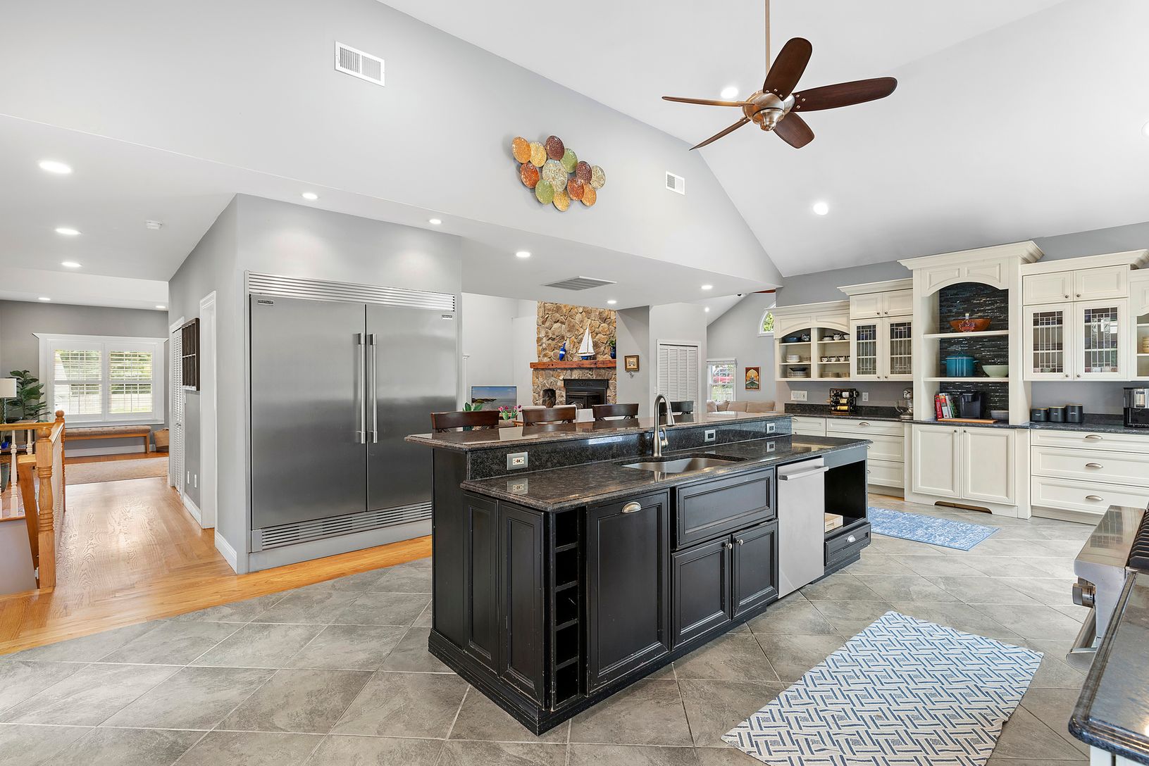 Welcome to this stunning 3-bed, 3.5-bath, split ranch offering an idyllic retreat with modern amenities and immaculate updates throughout. As you enter, you are greeted by an inviting foyer that leads you to the heart of the home with an open-concept living room and soaring cathedral ceilings. The focal point is a huge stone fireplace, equipped with a modern pellet stove, perfect for cozy evenings. The kitchen boasts state-of-the-art new appli