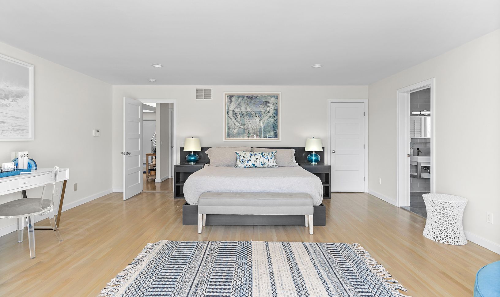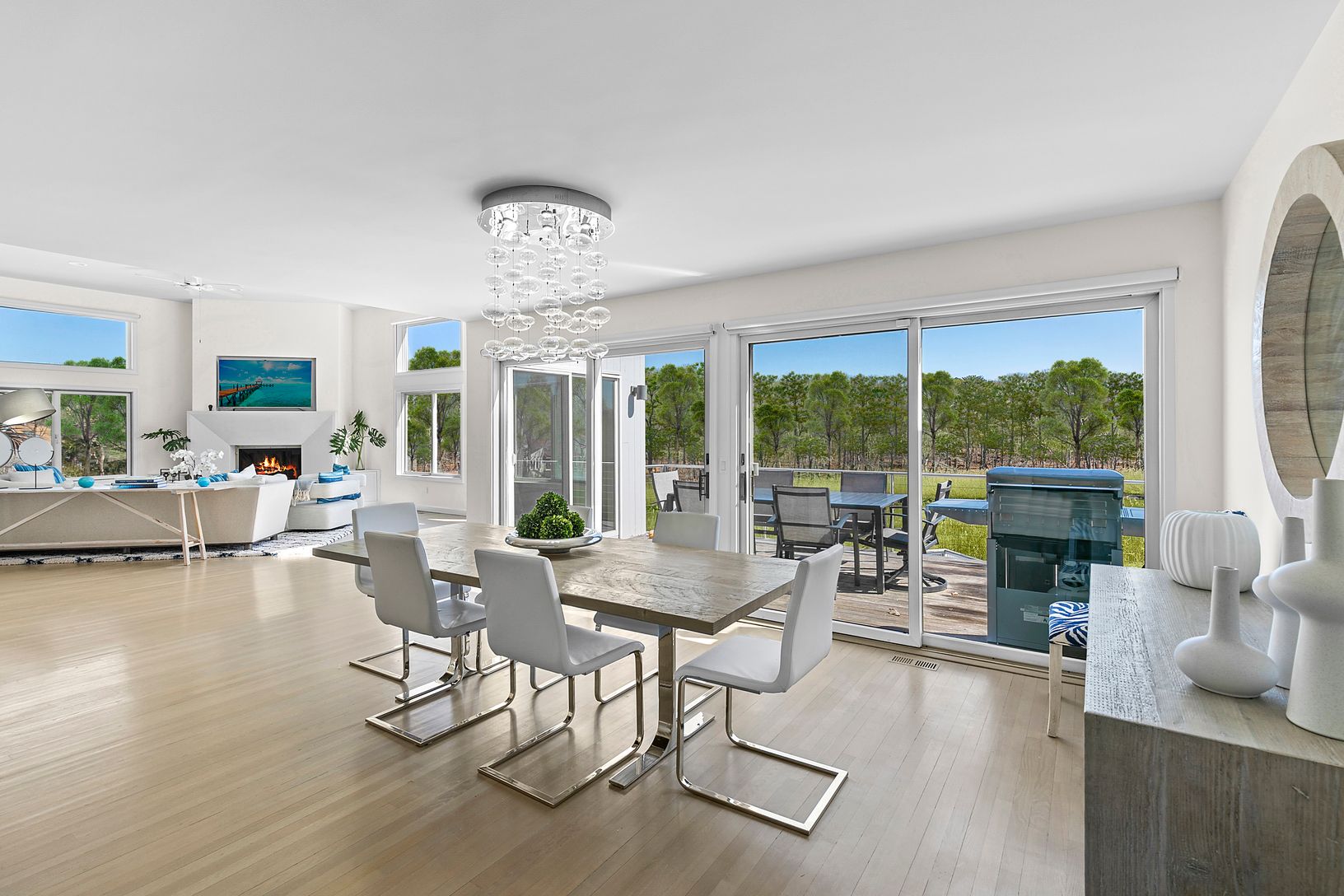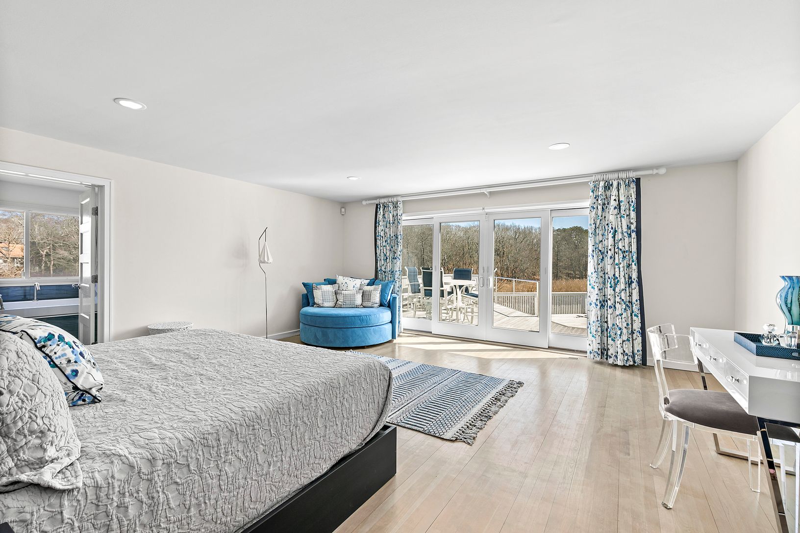 South of the highway in Westhampton and 90 minutes to NYC, this meticulous contemporary home is sited on a scenic waterfront setting of 1.33 acres with a gunite pool, Har-Tru tennis court and 125' frontage on Brushy Neck Creek. Featuring 4 bedrooms, 4 full and 2 half-baths, the 3,620 sq.ft. of open, bright living spaces showcase the beautiful outdoors with access to the large deck, pool, and the lush private grounds. Every room is appointed wi