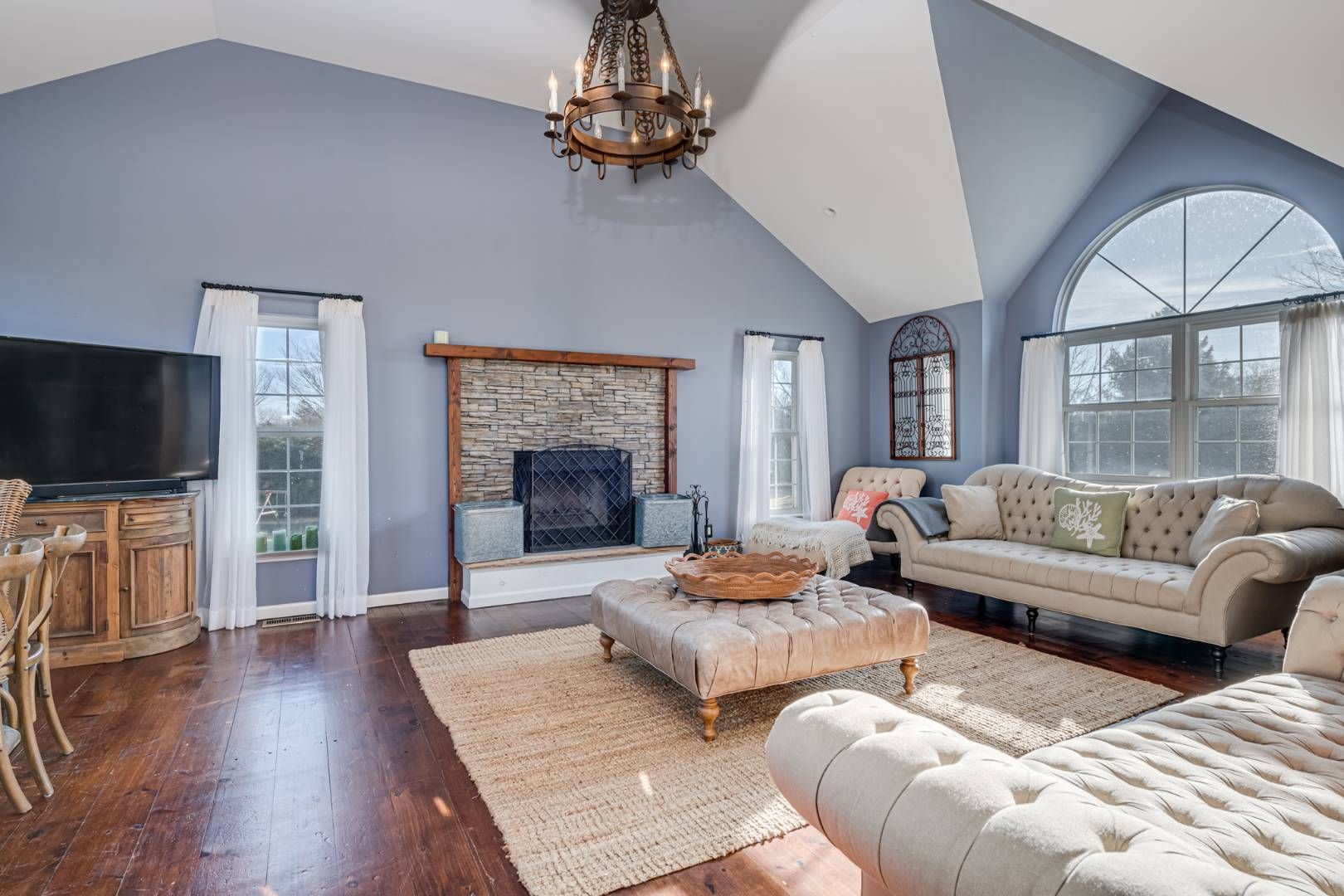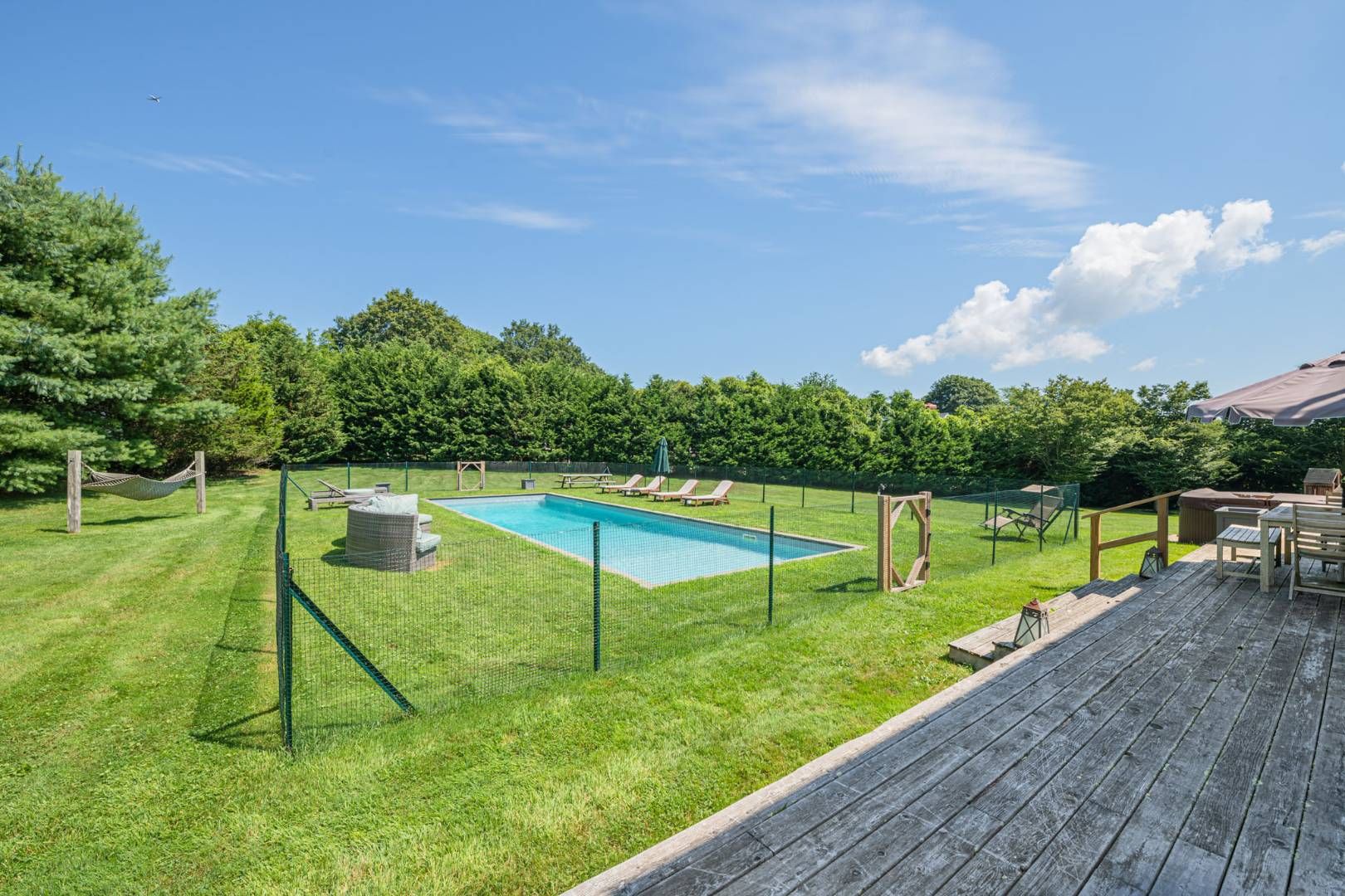 Located down a rustic driveway resides this oversized parcel with house and pool ready for its next chapter. With mature evergreens protectively lining the perimeter of the 1.73 acres, this pastoral property can be updated as is or reimagined with a sprawling residence, accessory structures, pool and tennis. The 2000+/- sq.ft 4 bedroom, 3 bath home includes an updated eat-in kitchen, high ceilinged great room with wood-burning fireplace, centr