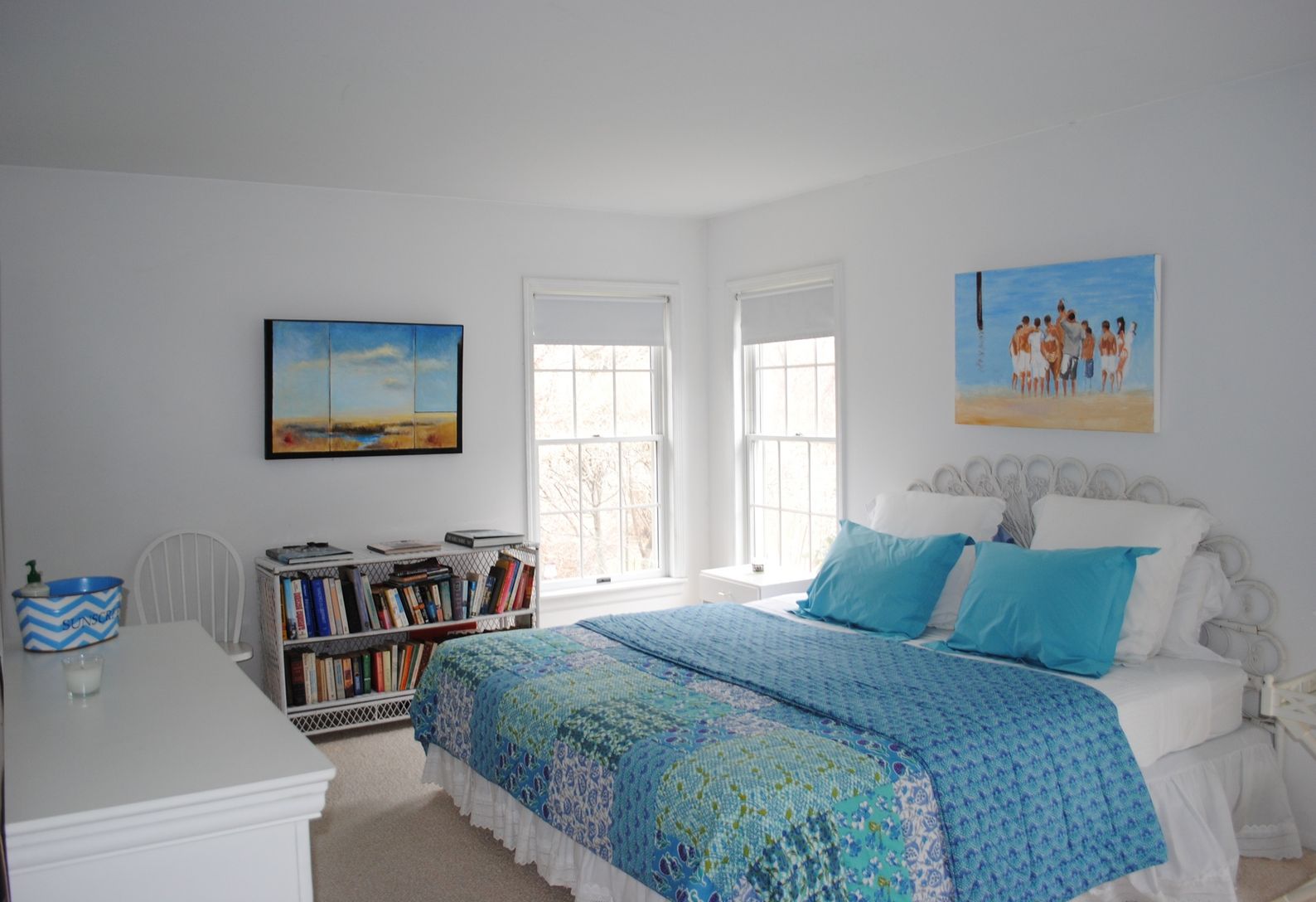 This attractive and light-filled residence features a living room with fireplace, dining area open to additional sitting area with sliding doors to terrace, new eat-in kitchen, five bedrooms, four baths (including 1st floor master bedroom and bath, 2 bedrooms , 2 baths), with a staircase from the kitchen to an additional 2nd story 2 bedrooms, 1 bath. Enjoy community pool and tennis privileges; Located in close proximity to Village ocean