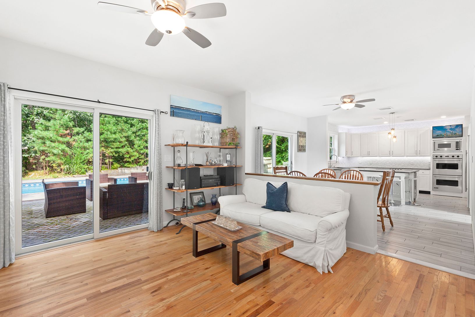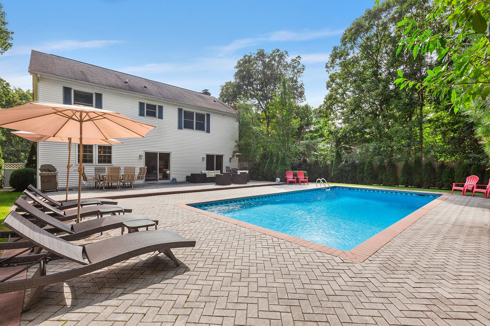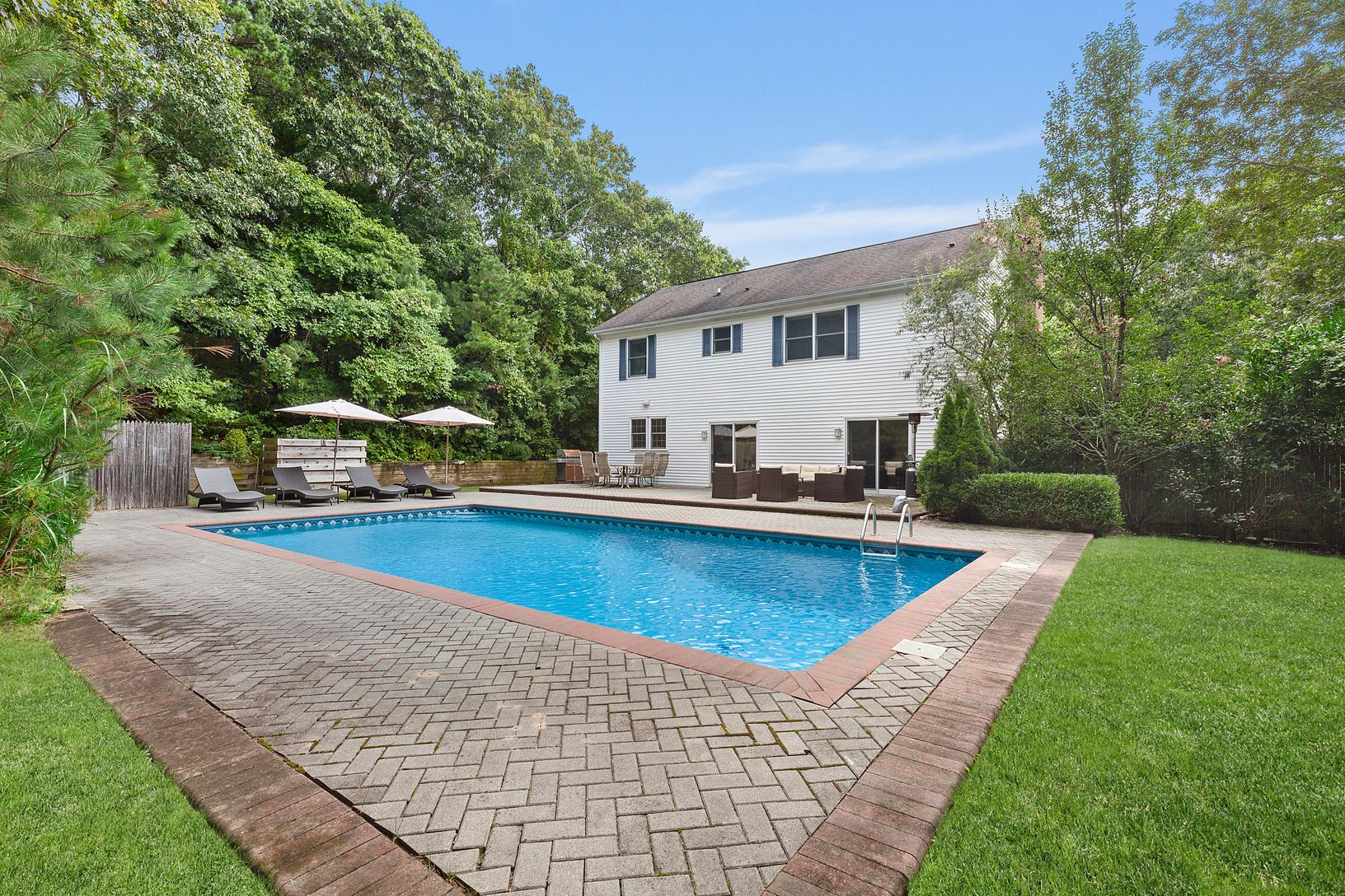 Close to the villages of East Hampton and Sag Harbor this traditional 2300 sq ft updated four bedroom, two and a half bath bathroom home is clean and simple. All Bedrooms are spacious and located on the second floor. Main floor features open updated kitchen and two living areas, one which overlooks the pool / entertaining area. Two car garage below the home and a side mud room with washer and dryer and adjoining powder room. Easy year round