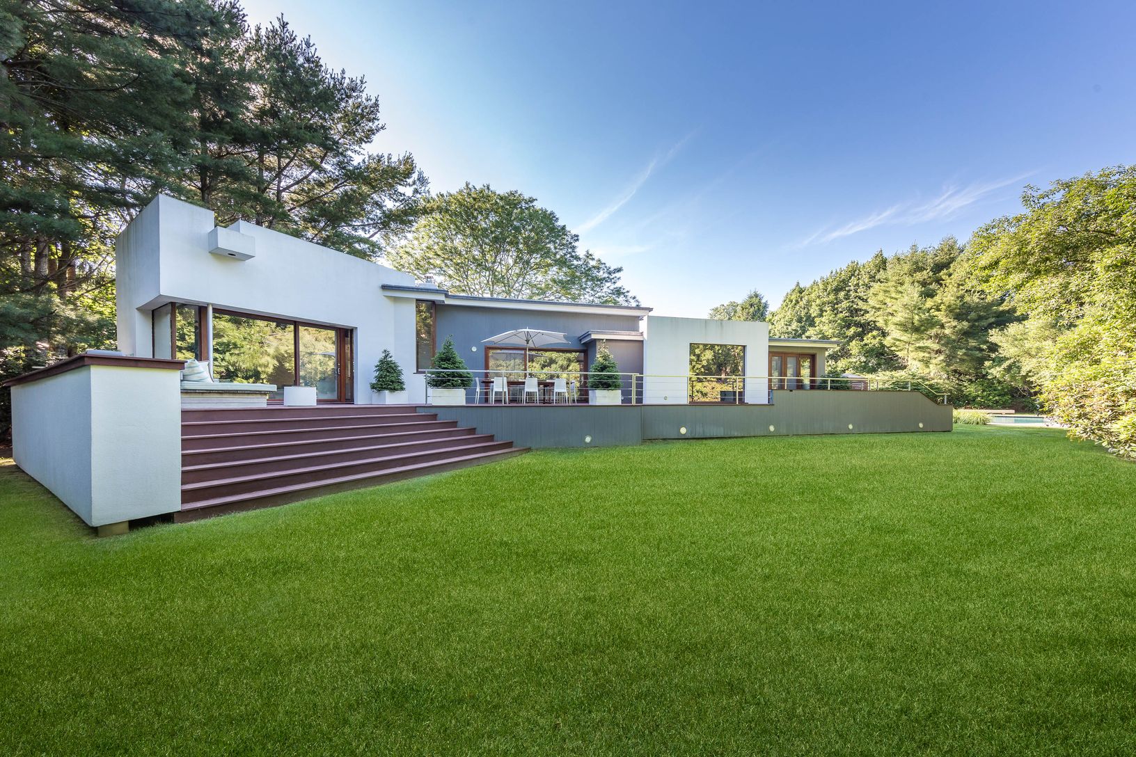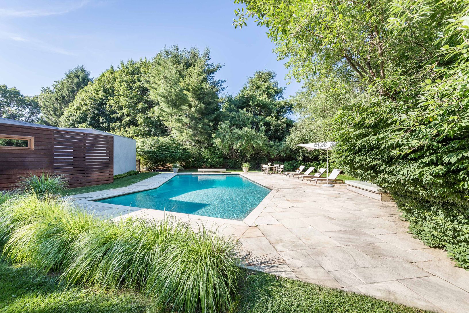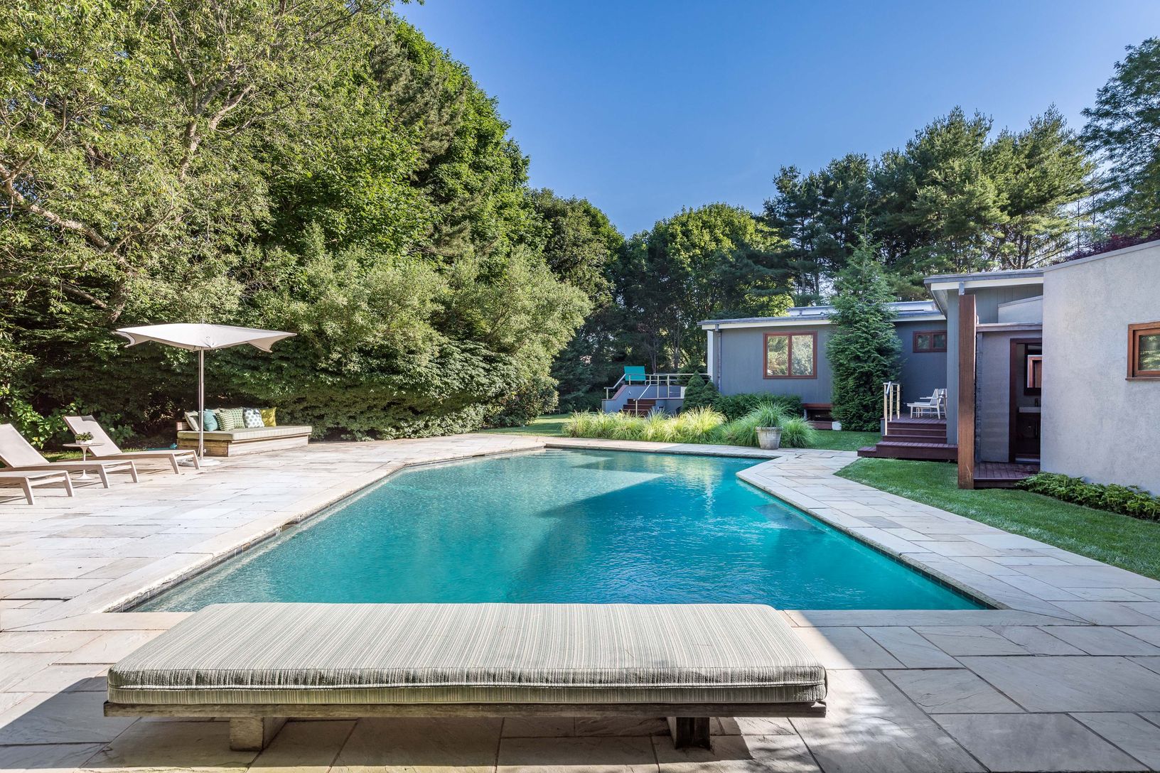 Experience East Hampton living like never before from this sophisticated, privately gated retreat, featuring a spectacular gunite pool, cabana, and patio for effortless summer entertaining. Completely renovated by award-winning Hamptons architect, Maziar Behrooz, every inch of this luxurious modern estate is adorned with the highest level of fit and finish. The walls of glass bring the outdoors in, an exquisite custom kitchen, and modern furni