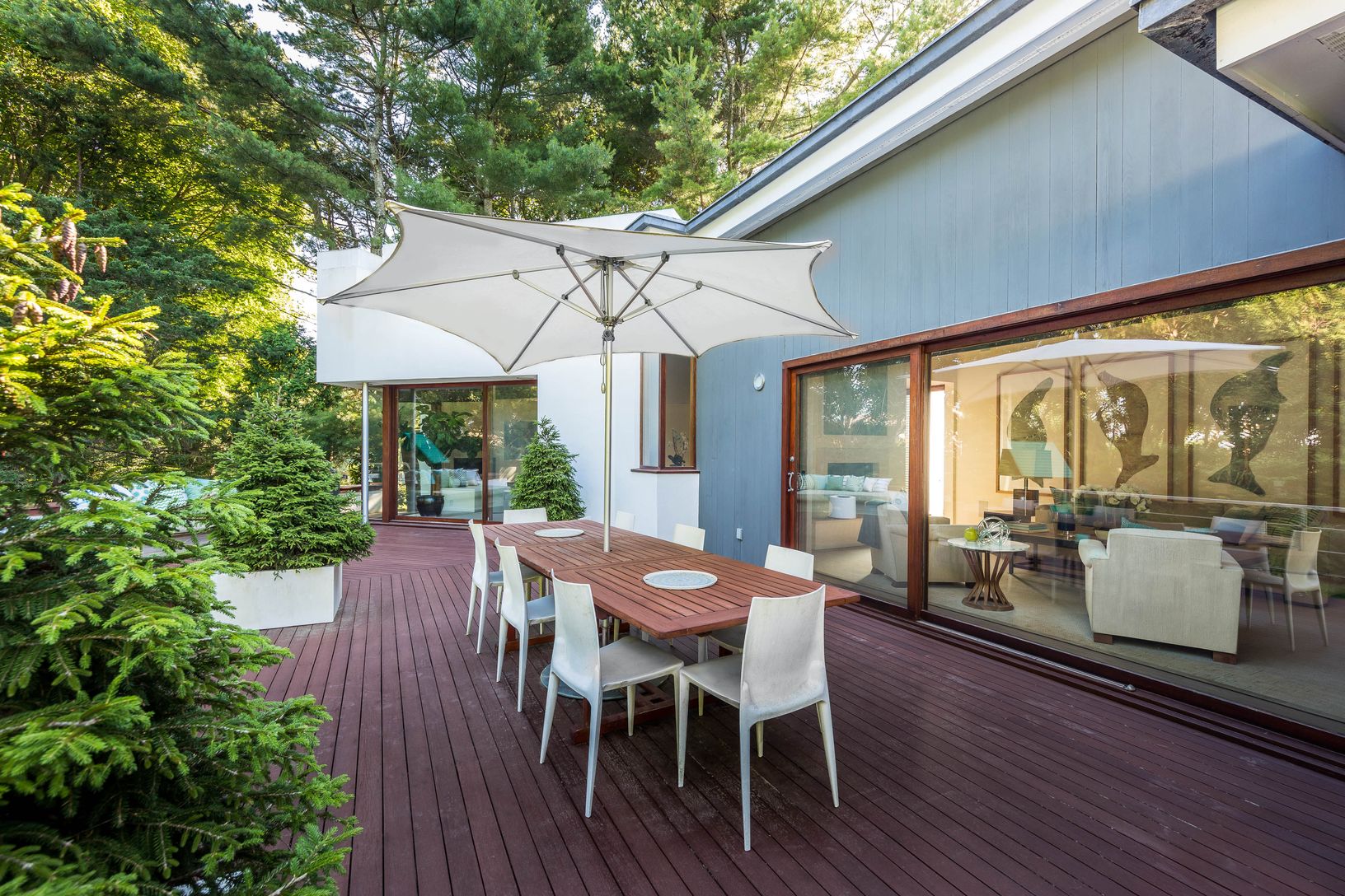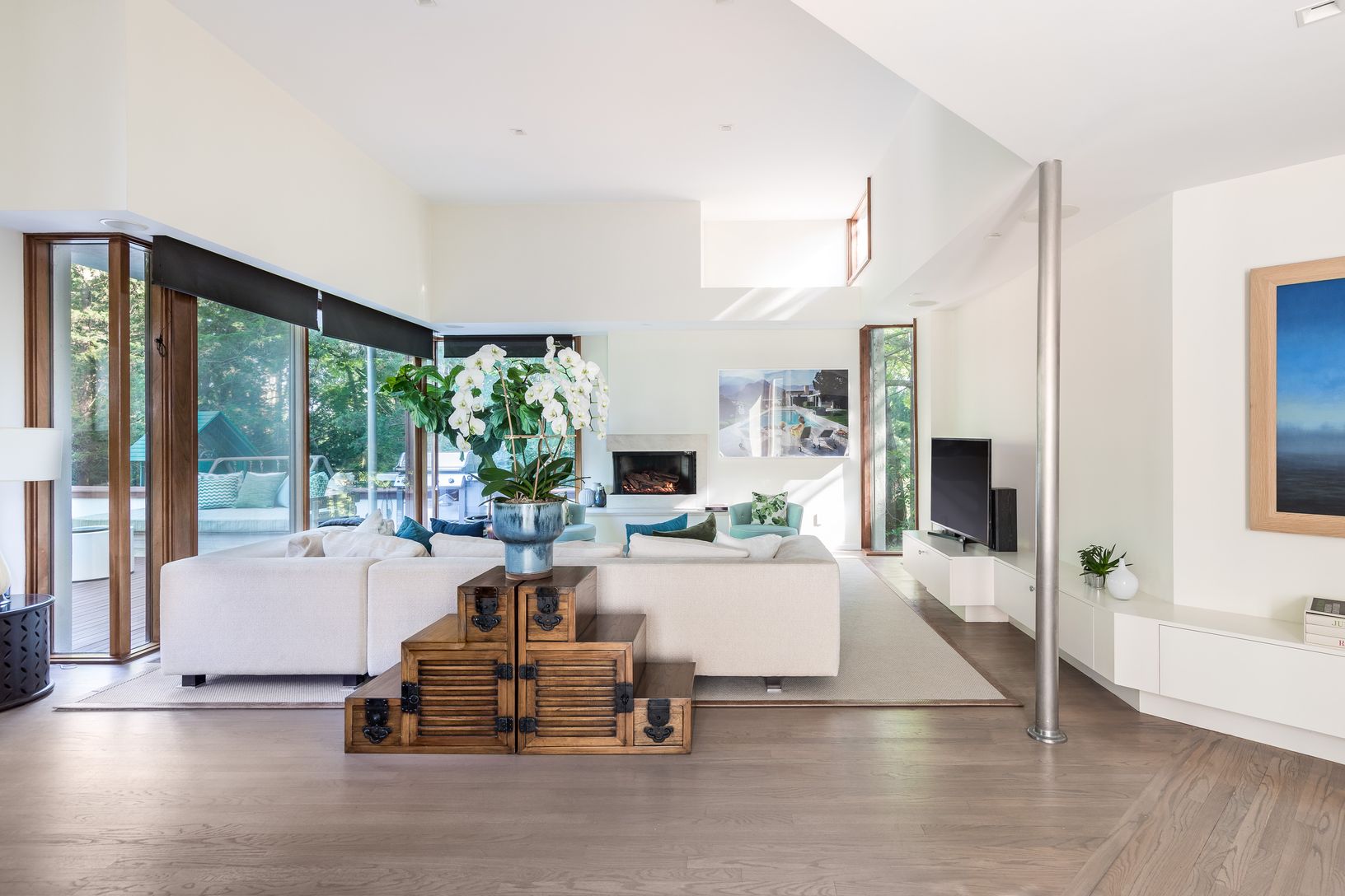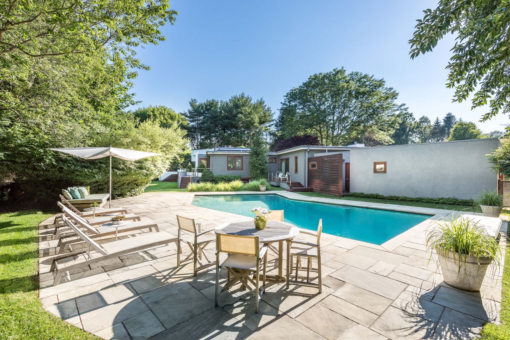 Experience East Hampton living like never before from this sophisticated, privately gated retreat, featuring a spectacular gunite pool, cabana, and patio for effortless summer entertaining. Completely renovated by award-winning Hamptons architect, Maziar Behrooz, every inch of this luxurious modern estate is adorned with the highest level of fit and finish. The walls of glass bring the outdoors in, an exquisite custom kitchen, and modern furni