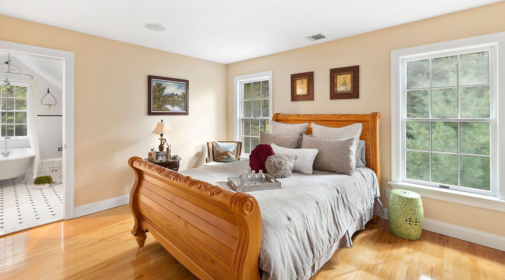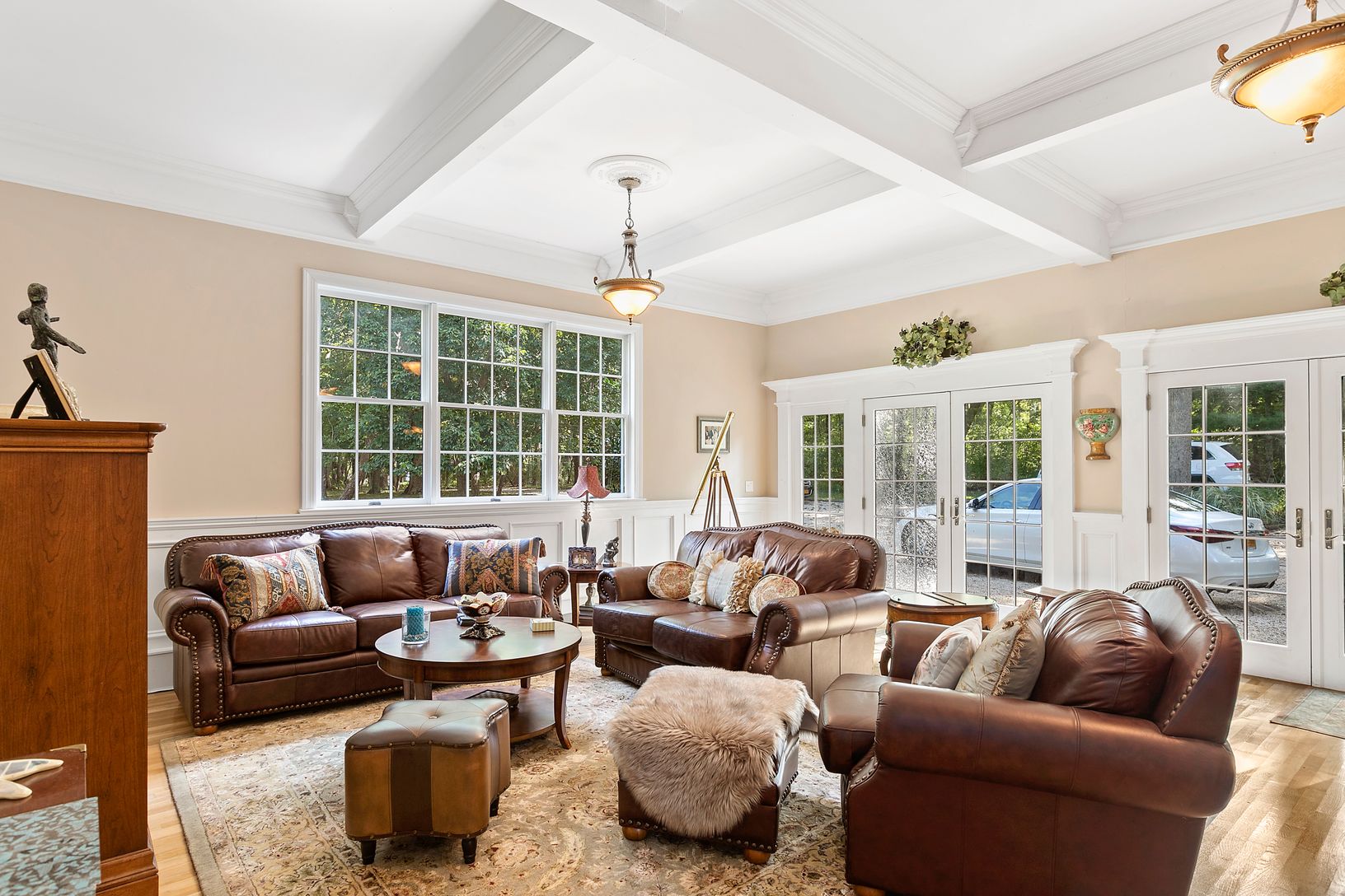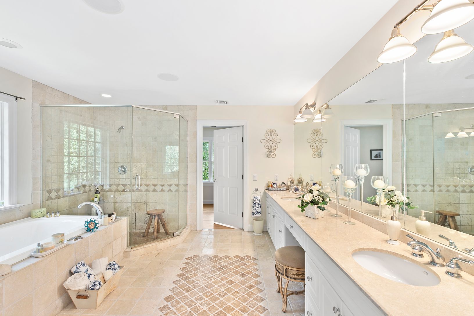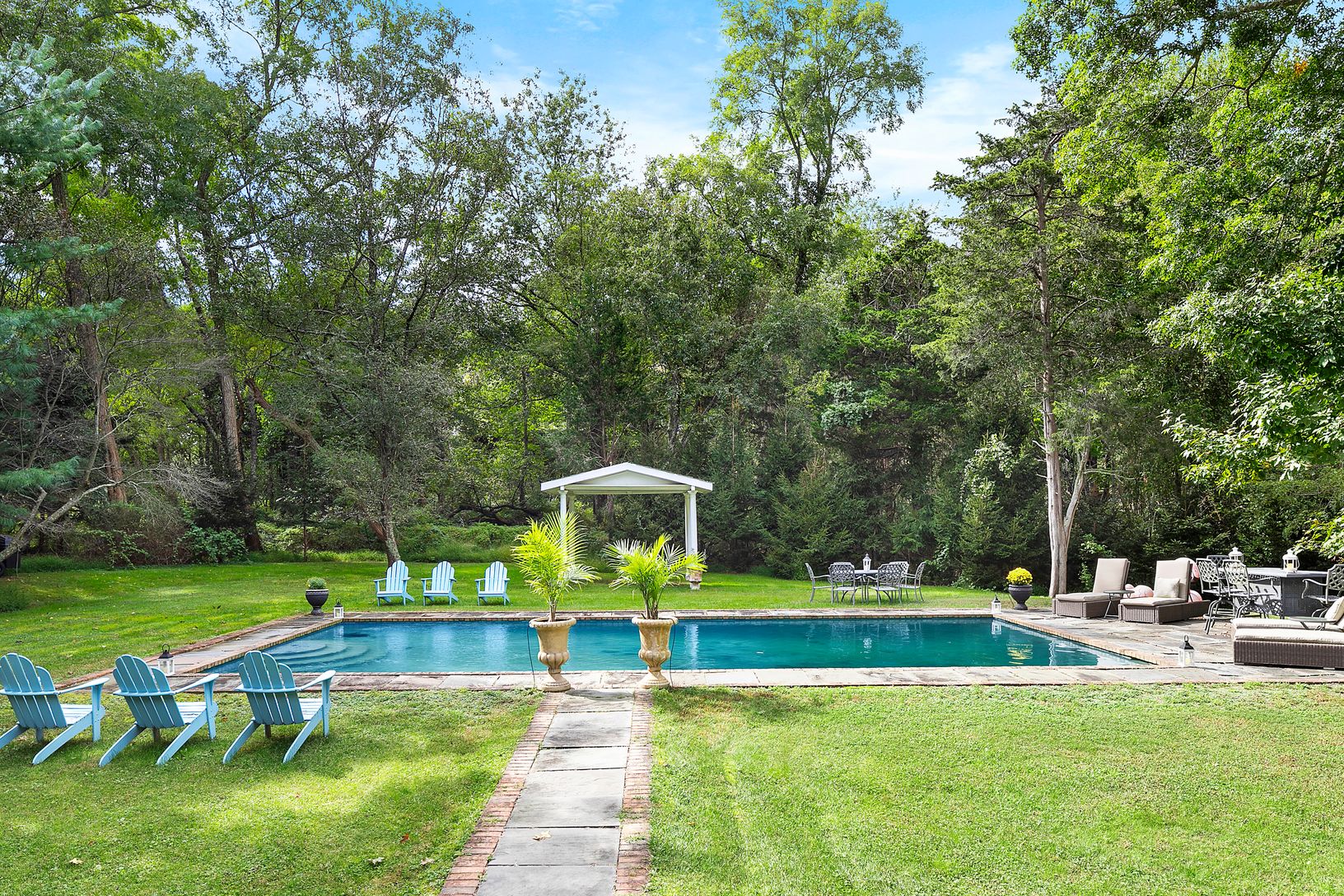 Located in sought after North Haven Point at the end of a cul de sac is this traditional with four bedrooms, (all en suite), 5 full baths and two half baths, a chef's kitchen, a gunite heated pool, 2 beautifully landscaped acres, 2 wood burning fireplaces, 3 community tennis courts and a community bay beach with kayak racks.