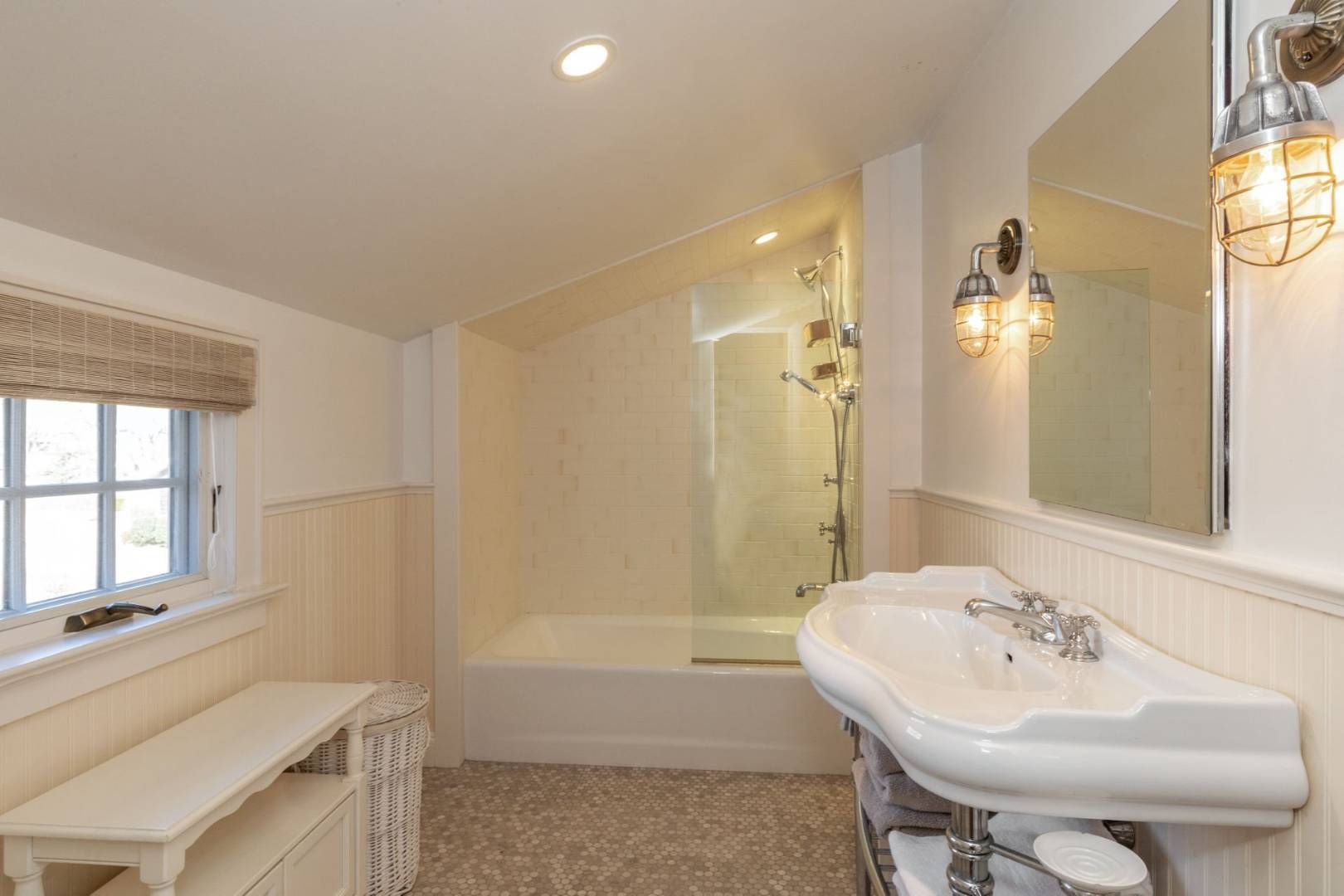 This charming Southampton Village property is located on a quiet street within a short distance to the village center and ocean beaches. The home boasts four bedrooms and three and a half baths, including a first floor en-suite bedroom. The first floor also features a light filled open kitchen/living area and an additional sitting room with fireplace. The free form heated gunite pool is surrounded by lush landscaping for privacy.