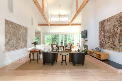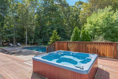 Rental Registration #: 16-294 On 1.7 +/- private acres set amidst the Beech forest is this architecturally dramatic and unique home with two separate and private master suites. It has a total of four bedrooms, three and a half baths, a double-height cathedral living room with multiple glass sliders, a formal dining room, a professional eat-in-kitchen, and built-in office. A total of 4,000 +/- sq.ft. on one level with new gunite heated pool, s