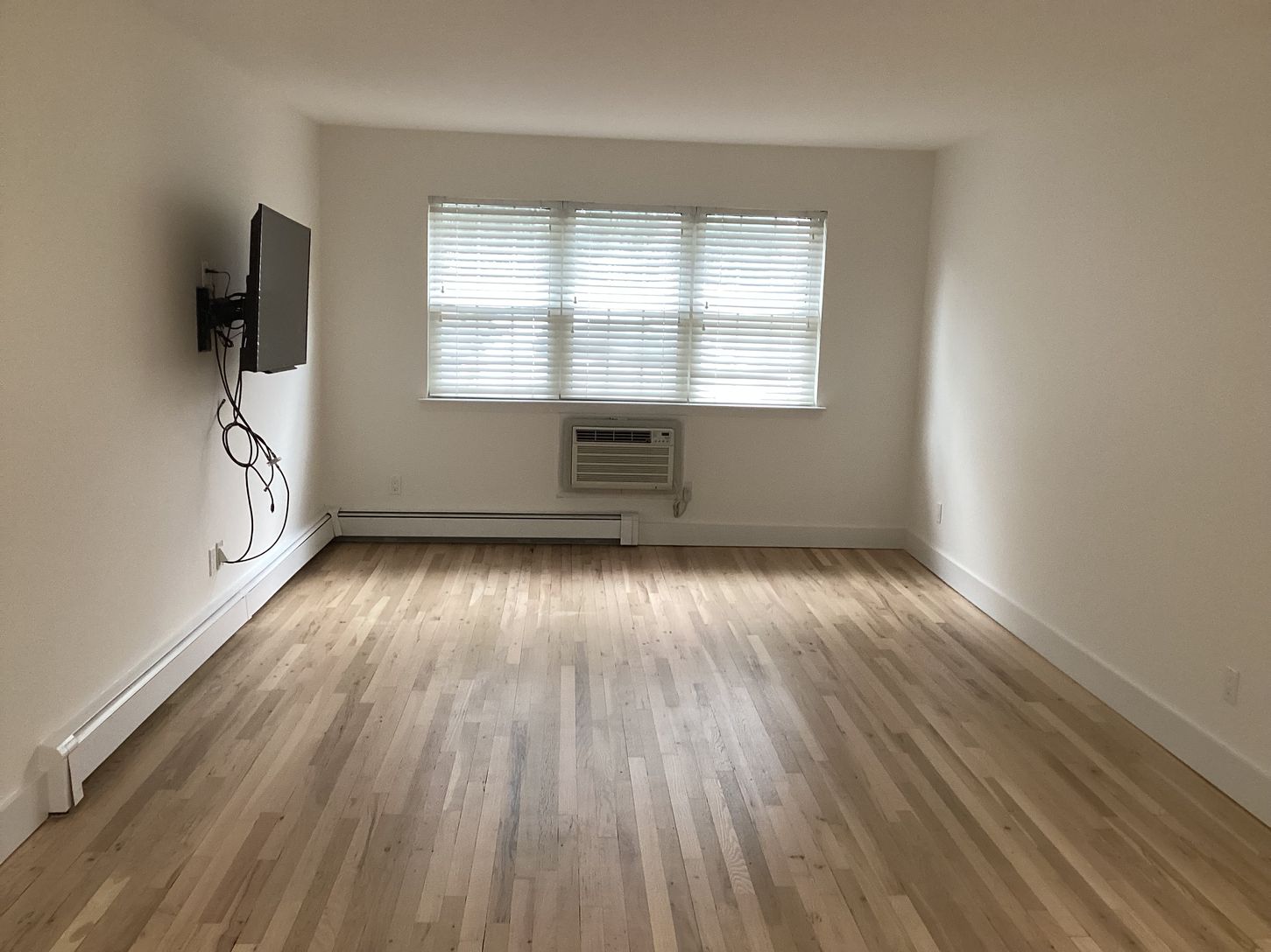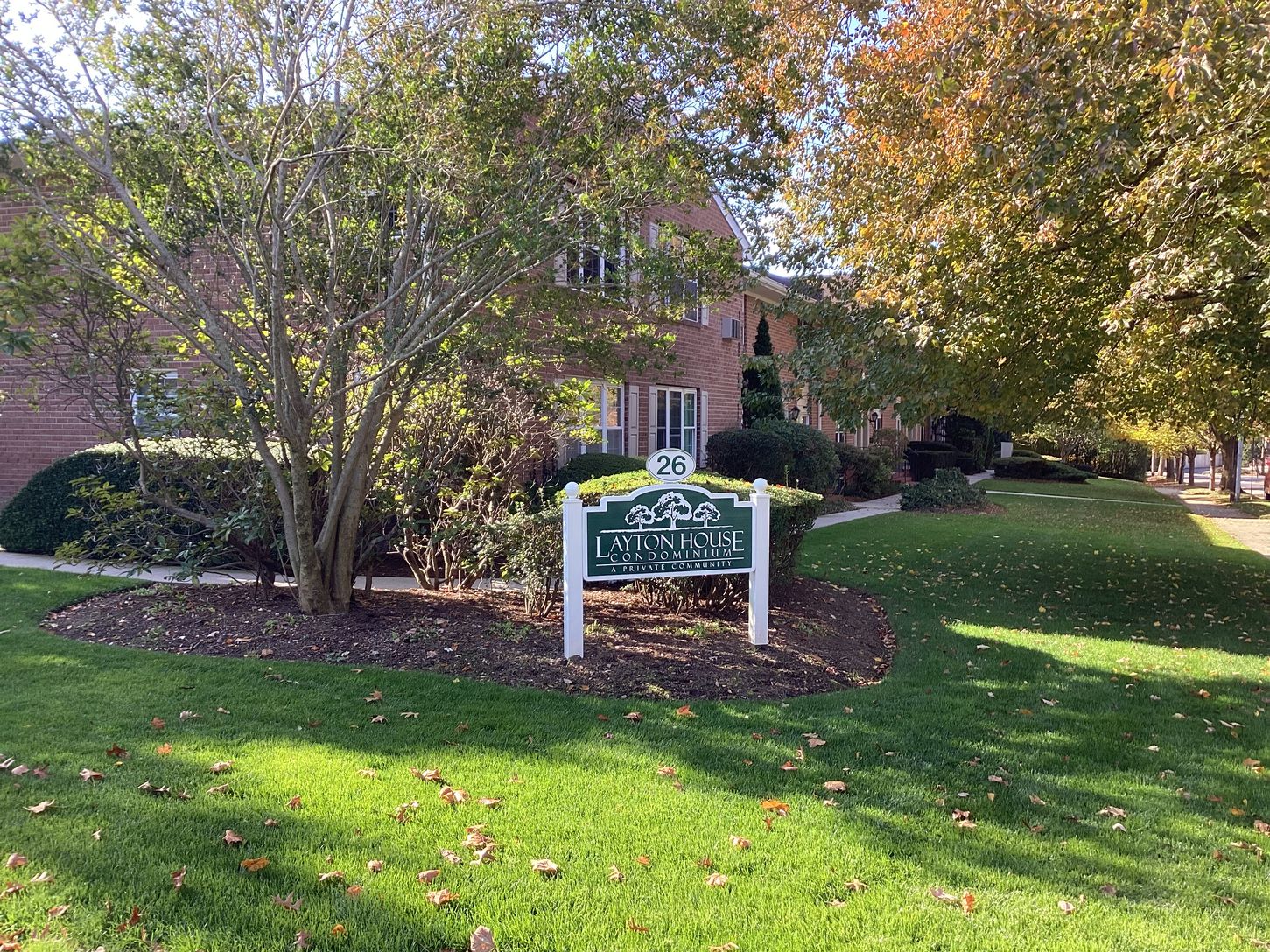 Convenient walk-to-train and heart-of-town location! Don't miss this one, Layton House rarely offered 2 bedroom, 1 bath first floor corner unit overlooking common garden patio area. Hardwood floors, living room, kitchen, dining area, washer/dryer located in the unit, newly painted, floors refinished, central gas heat, air-conditioned (wall units). Common amenities include a laundry room and storage unit in the complex's basement and off-street