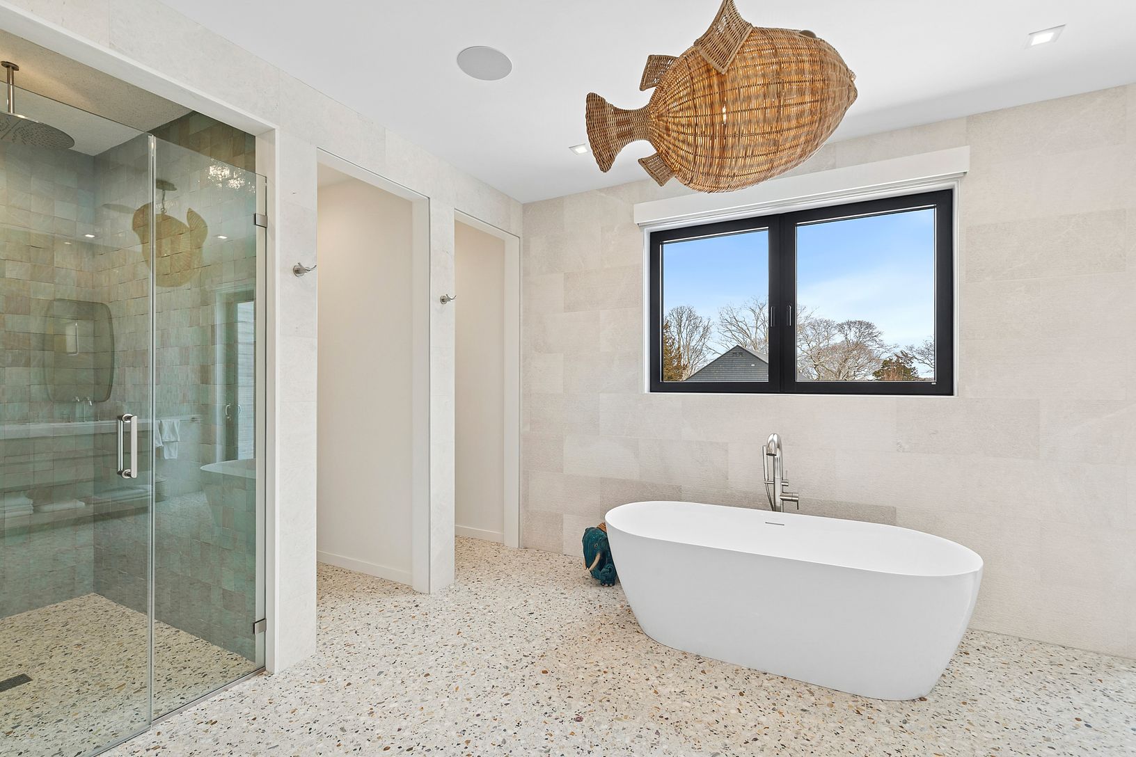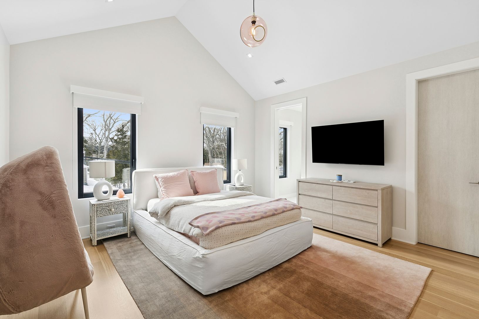 A rare first-time rental in coveted Northhampton Colony, just moments from private beach access and the Northhampton Colony Yacht Club. This 7,700-square-foot transitional estate offers 5 bedrooms and 5.5 baths, thoughtfully designed for a summer that feels both elevated and effortless. Built by Jack Curto Development, the home pairs clean architectural lines with sweeping water views from its second-floor terraces. The main level unfolds in l