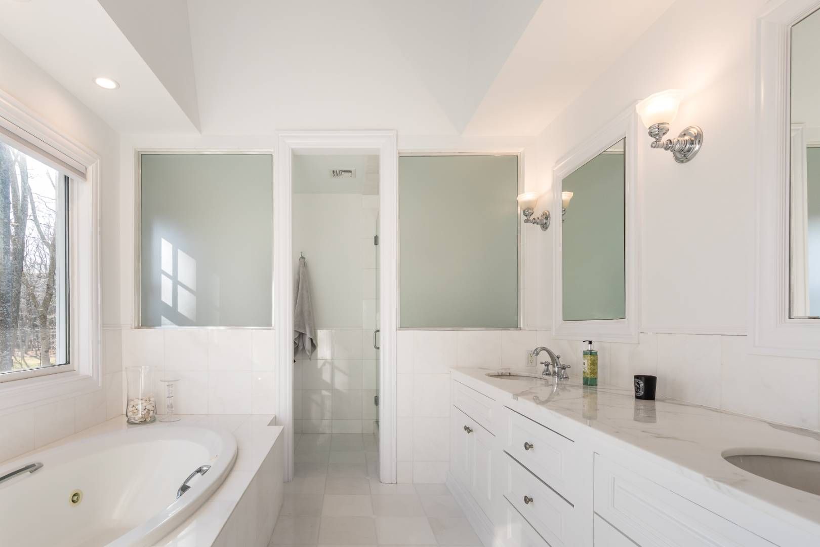 Secluded down a long private drive in Sag Harbor's prestigious North Haven Point, sited on 1.9 professionally landscaped acres, this newly renovated and elegant 7 Bedroom, 7 Bathroom home offers close to 7000 square feet of light-filled white interiors which are complimented by beautiful wood flooring. Enter from the covered front porch to a two-story living room with a fireplace and large windows on both levels. An eat-in kitchen with marble
