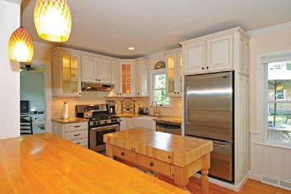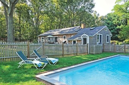 Walk up the brick path to the covered porch and step into this charmingly restored Sag Harbor cottage. Open floor plan, living room with fireplace and cathedral ceiling, terrific kitchen with beveled glass cabinets and granite counter tops. There is a secondary living space consisting of an informal dining area and den with custom built in cabinets, full bath and easy access to pool area. Wonderful back yard for entertaining. The serene set