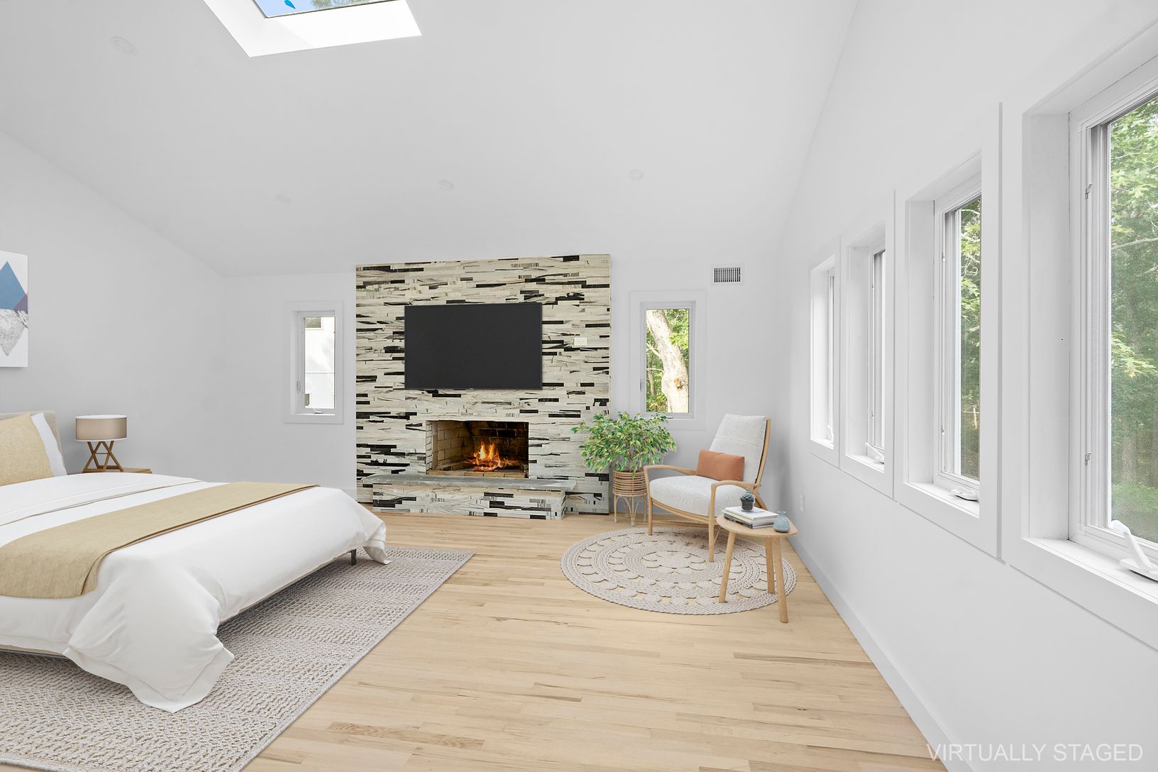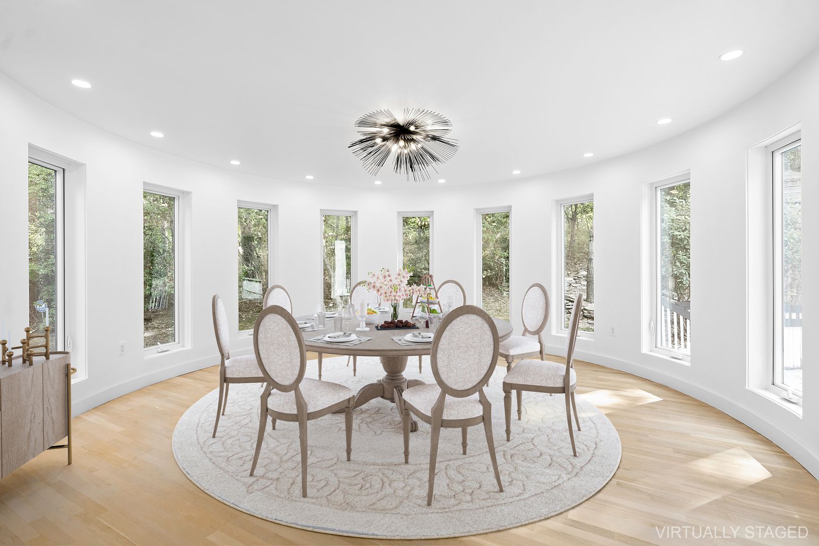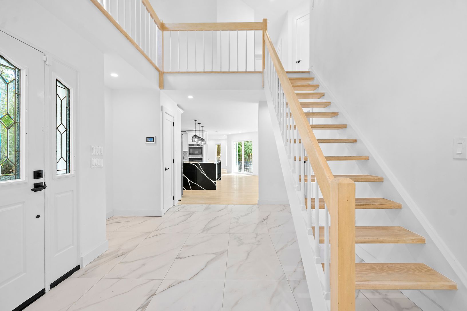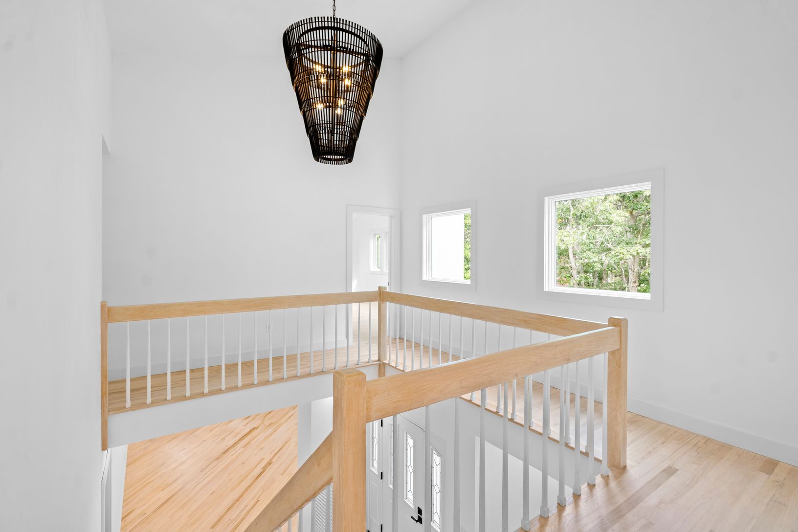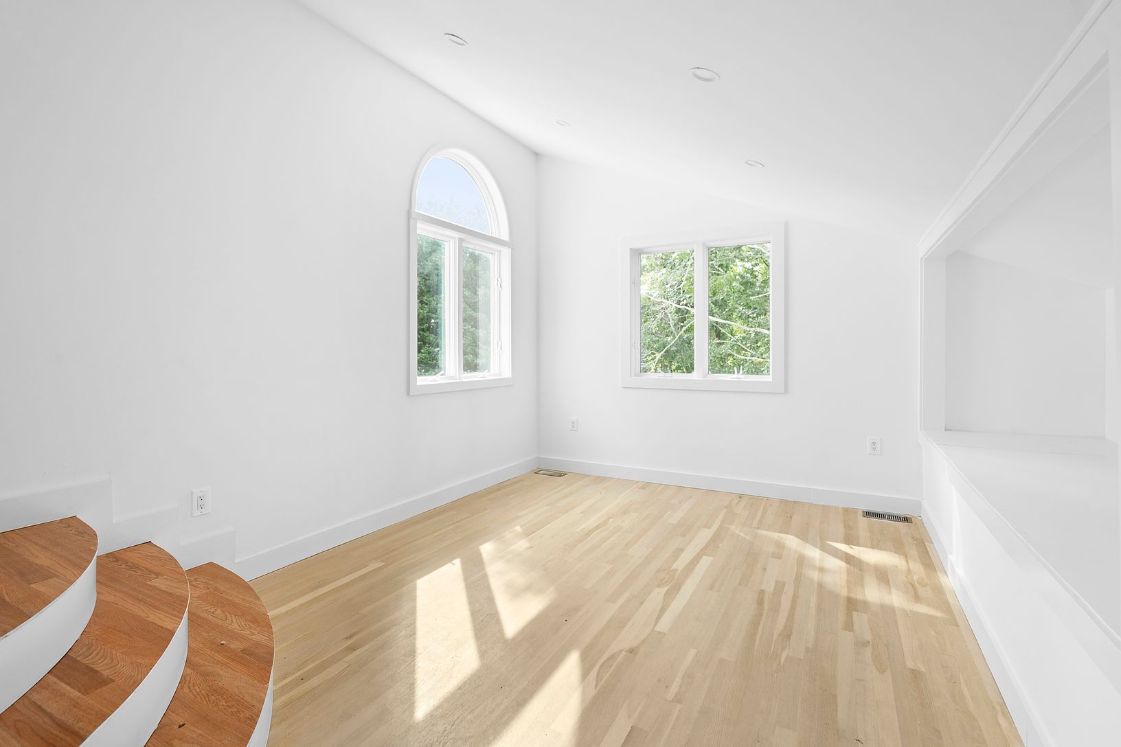 Set on a cul de sac street In the serene Ravenswood area of Hampton Bays, this fully renovated contemporary sits on a 1-acre 2 dwelling compound and backs to a preserve for ultimate peace.