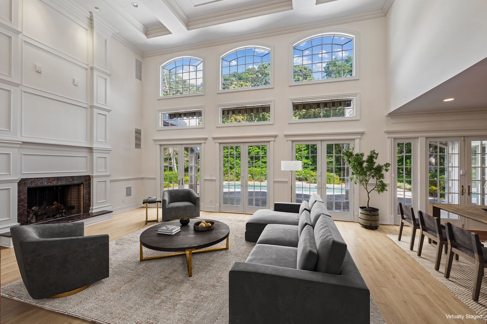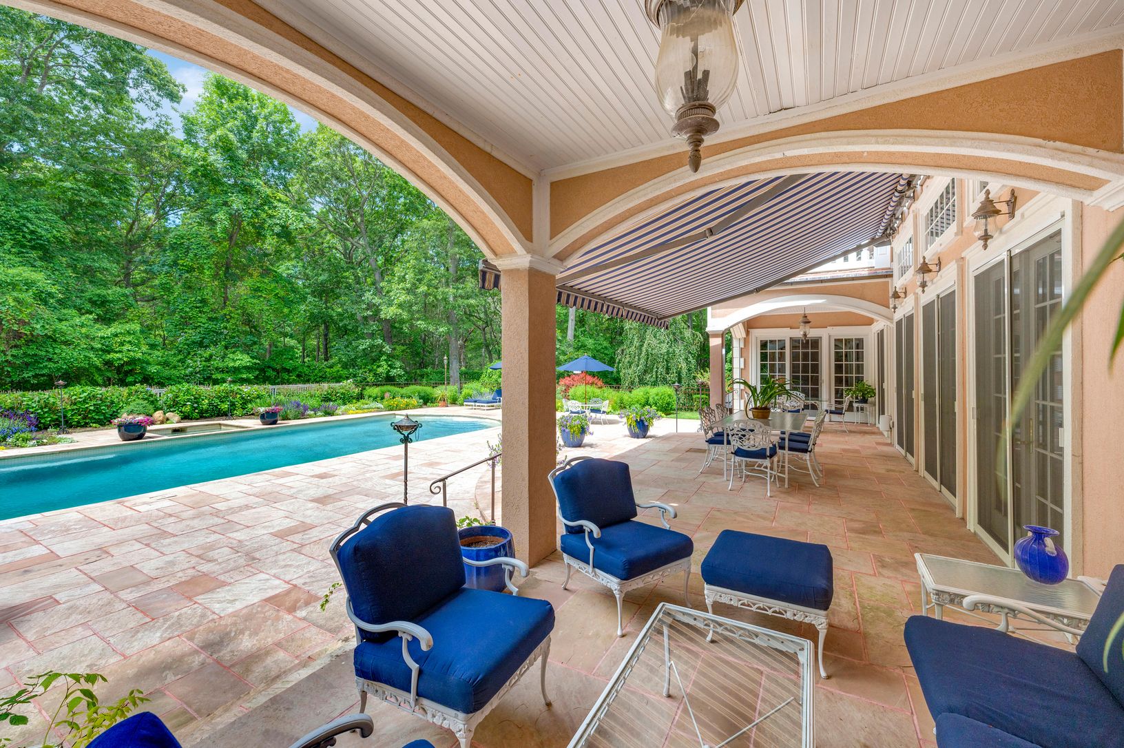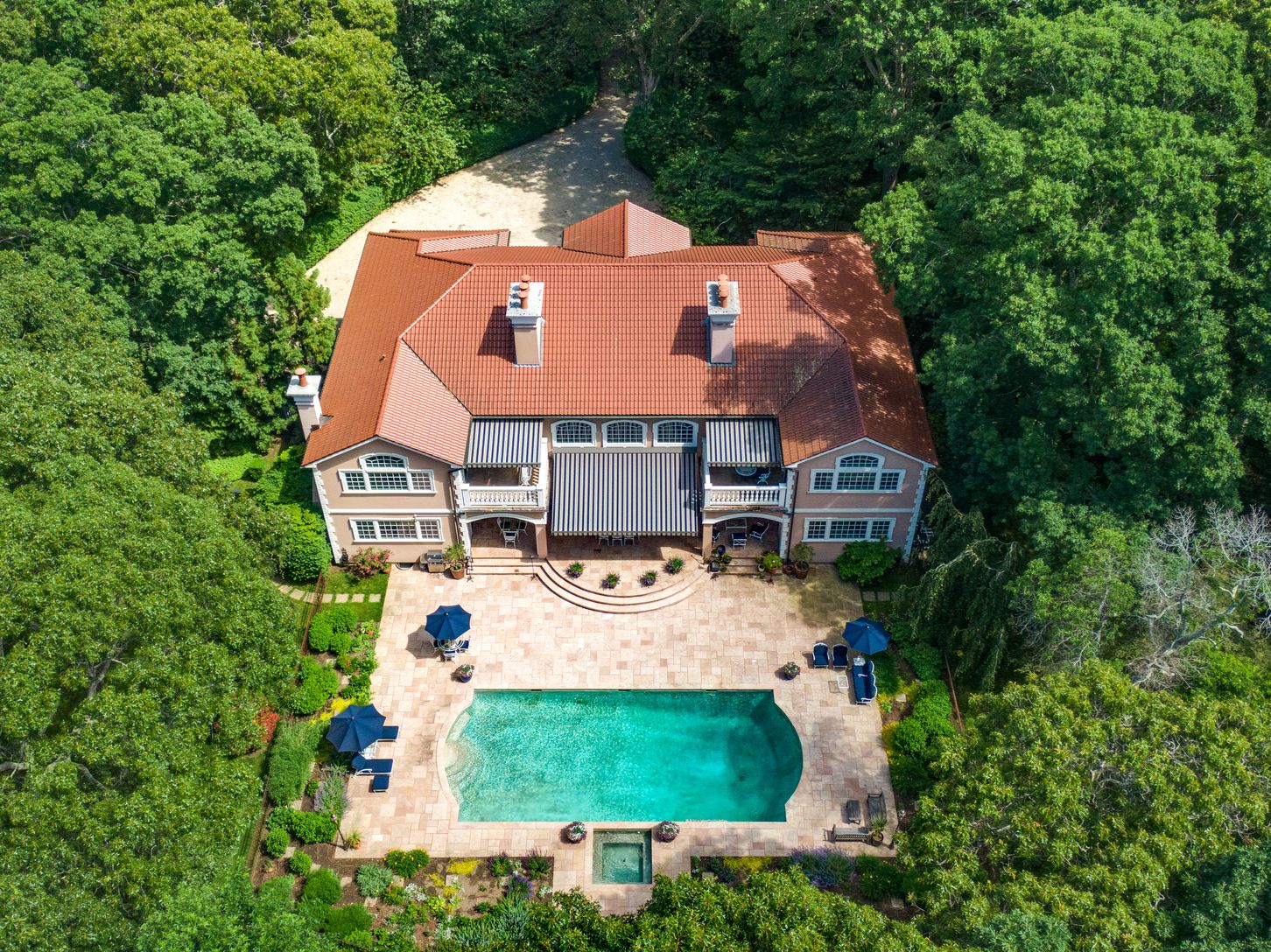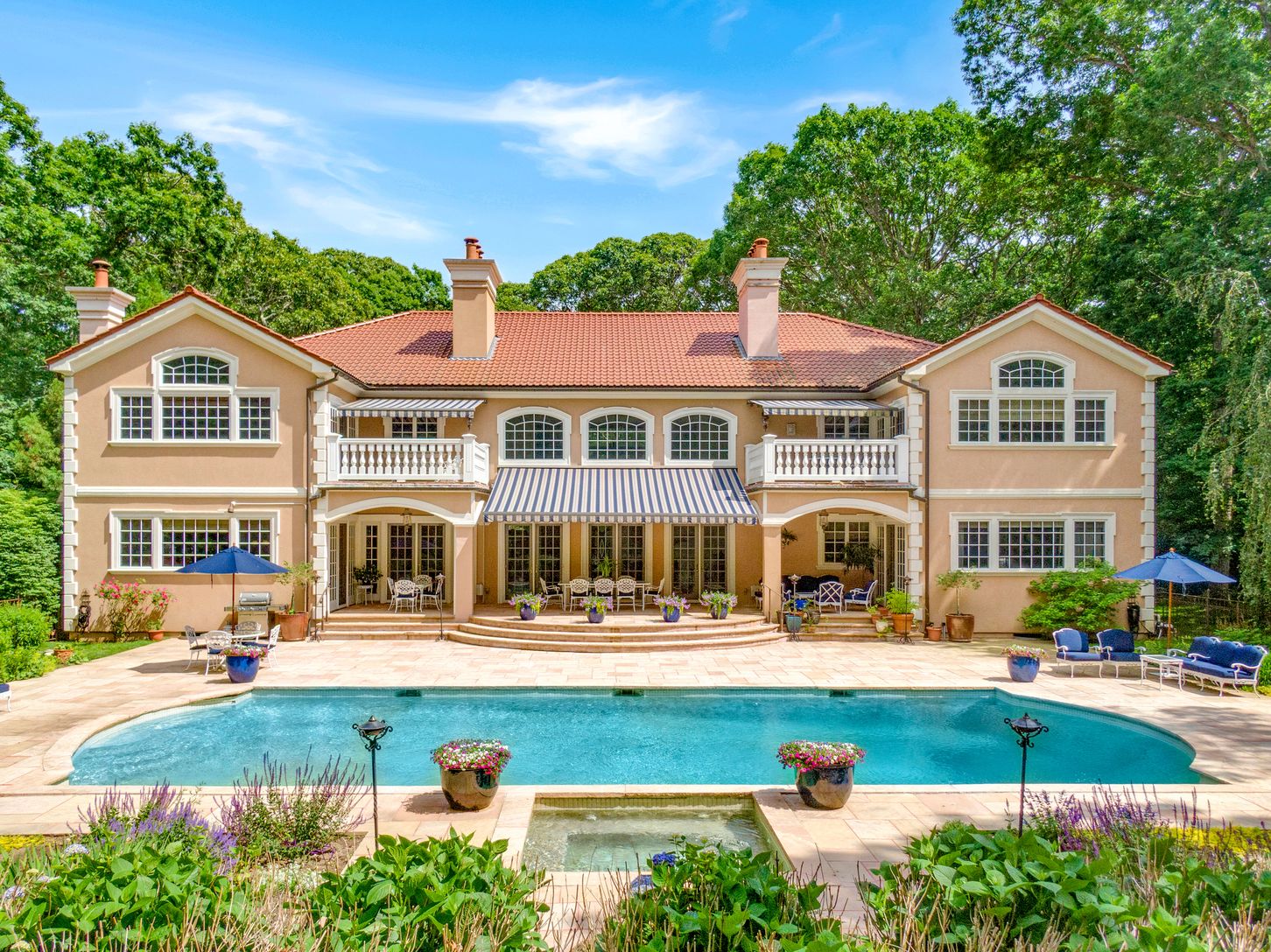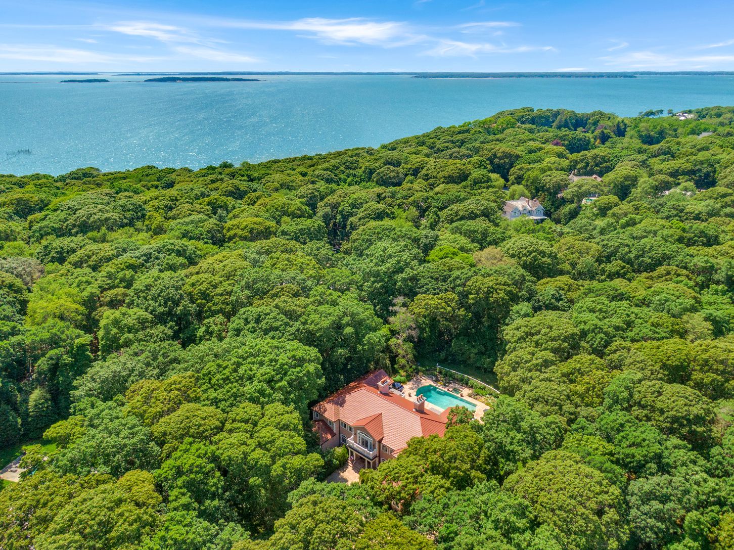 Indulge in the allure of this sprawling European-inspired estate in the prestigious waterfront community of North Haven Point. This magnificent home, already counted among the timeless great estates, awaits its new owner's updates and personal touches. Nestled on 2 acres and bordering reserve, the grandeur and impressive scale of the house unfold as you enter through the gates and up the cherry tree-lined driveway. The two-story foyer with its