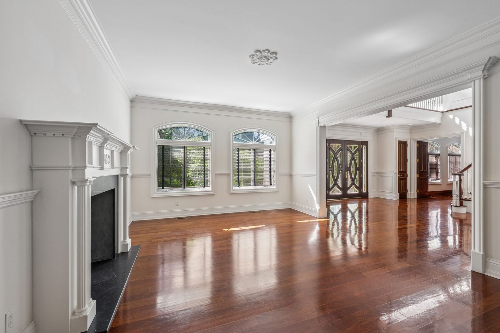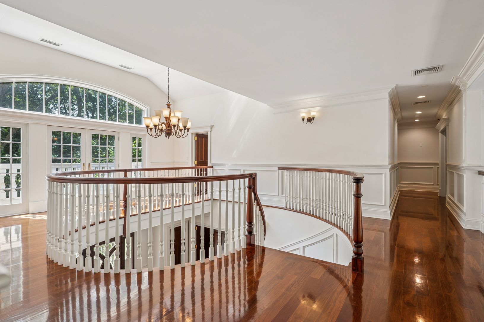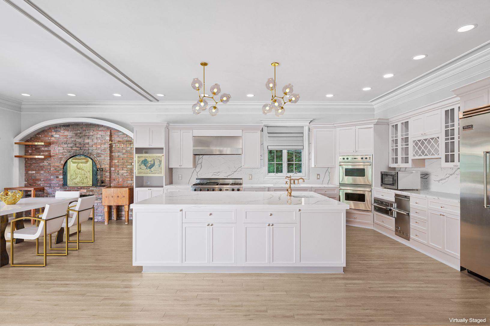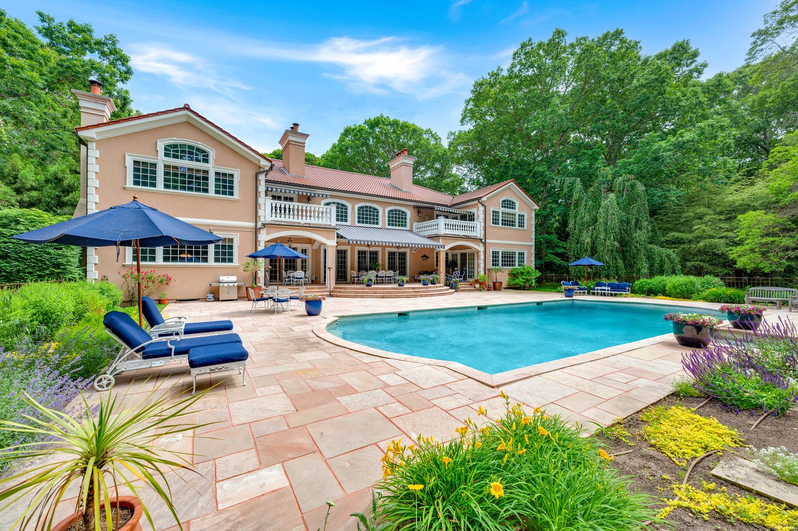 Indulge in the allure of this sprawling European-inspired estate in the prestigious waterfront community of North Haven Point. This magnificent home, already counted among the timeless great estates, awaits its new owner's updates and personal touches. Nestled on 2 acres and bordering reserve, the grandeur and impressive scale of the house unfold as you enter through the gates and up the cherry tree-lined driveway. The two-story foyer with its