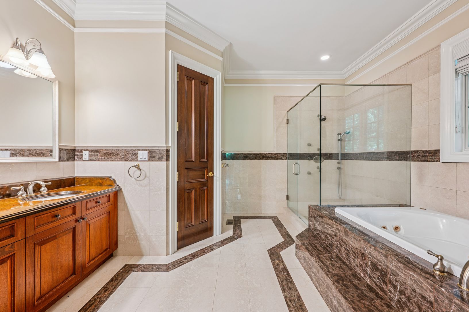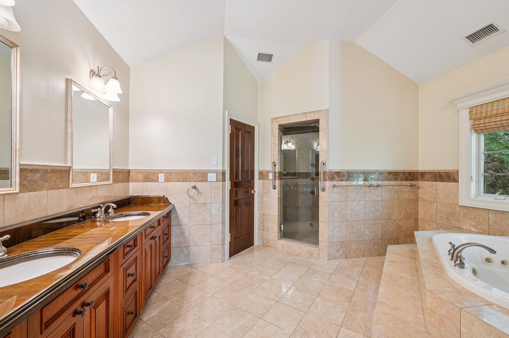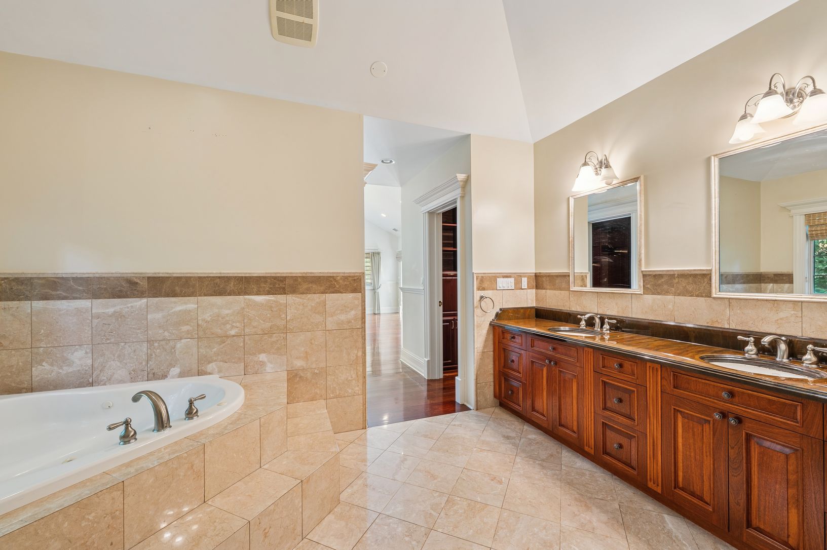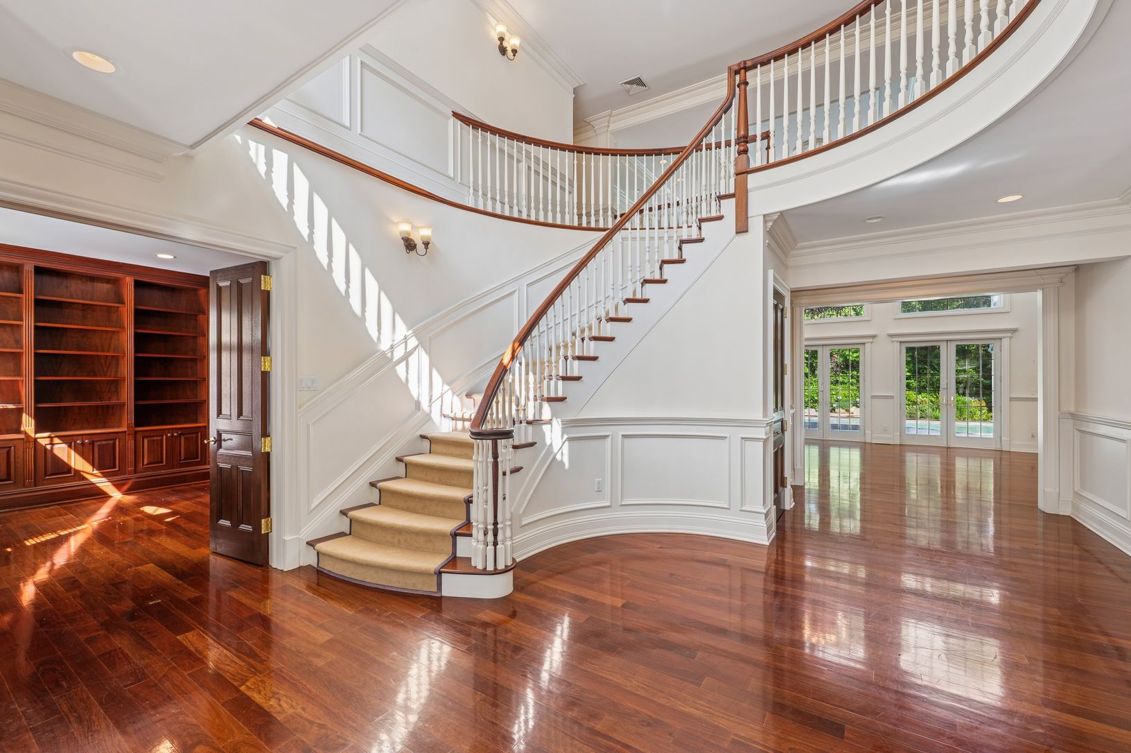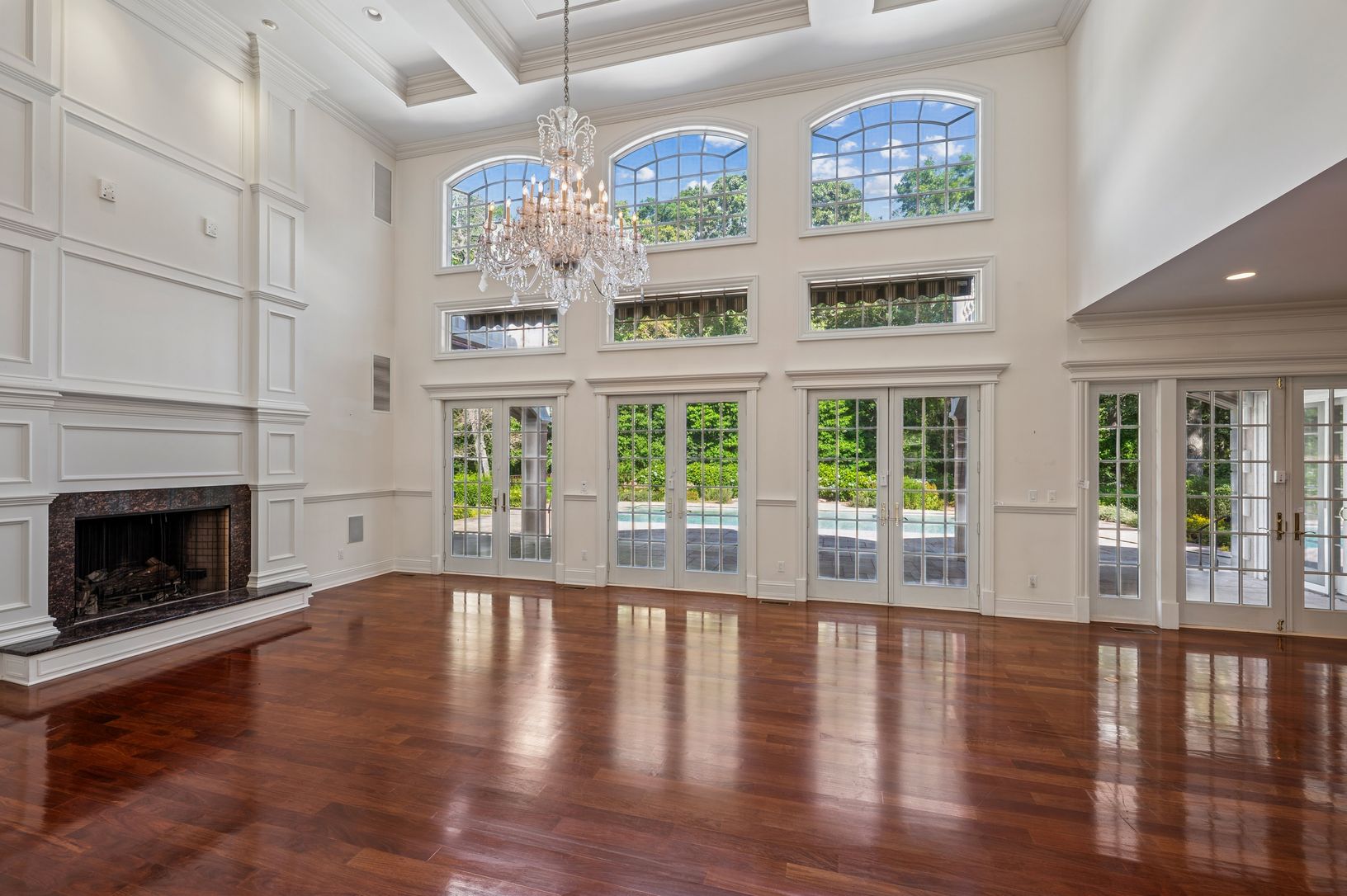 Indulge in the allure of this sprawling European-inspired estate in the prestigious waterfront community of North Haven Point. This magnificent home, already counted among the timeless great estates, awaits its new owner's updates and personal touches. Nestled on 2 acres and bordering reserve, the grandeur and impressive scale of the house unfold as you enter through the gates and up the cherry tree-lined driveway. The two-story foyer with its