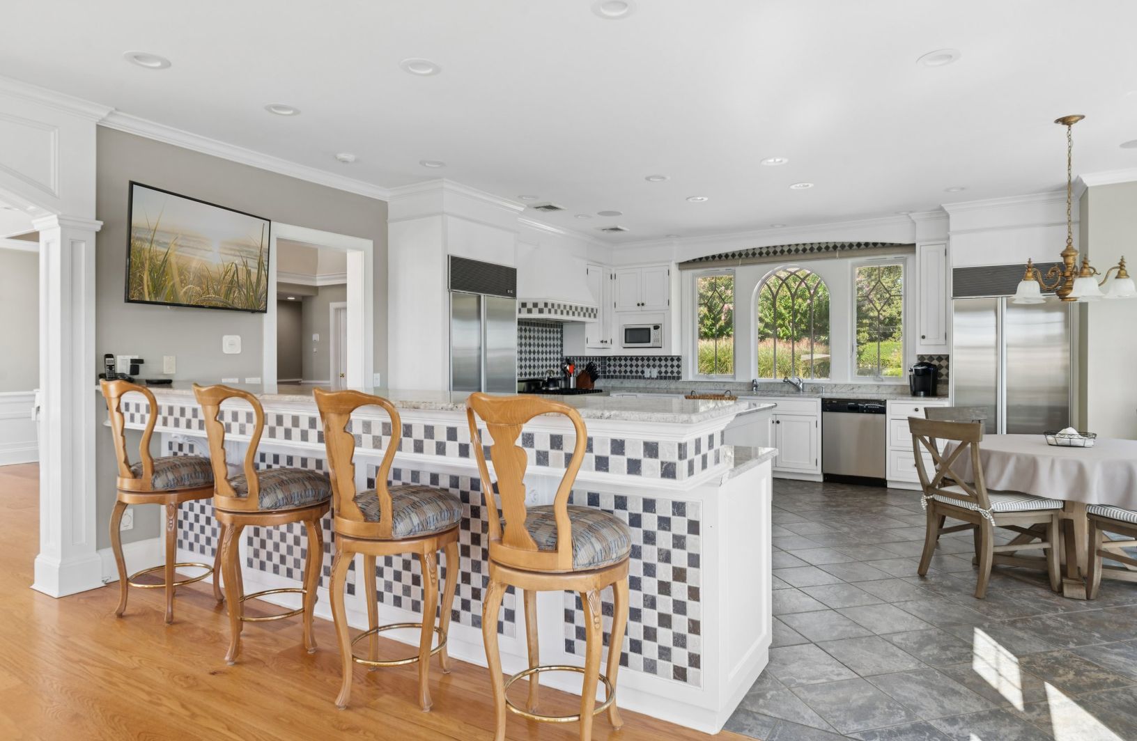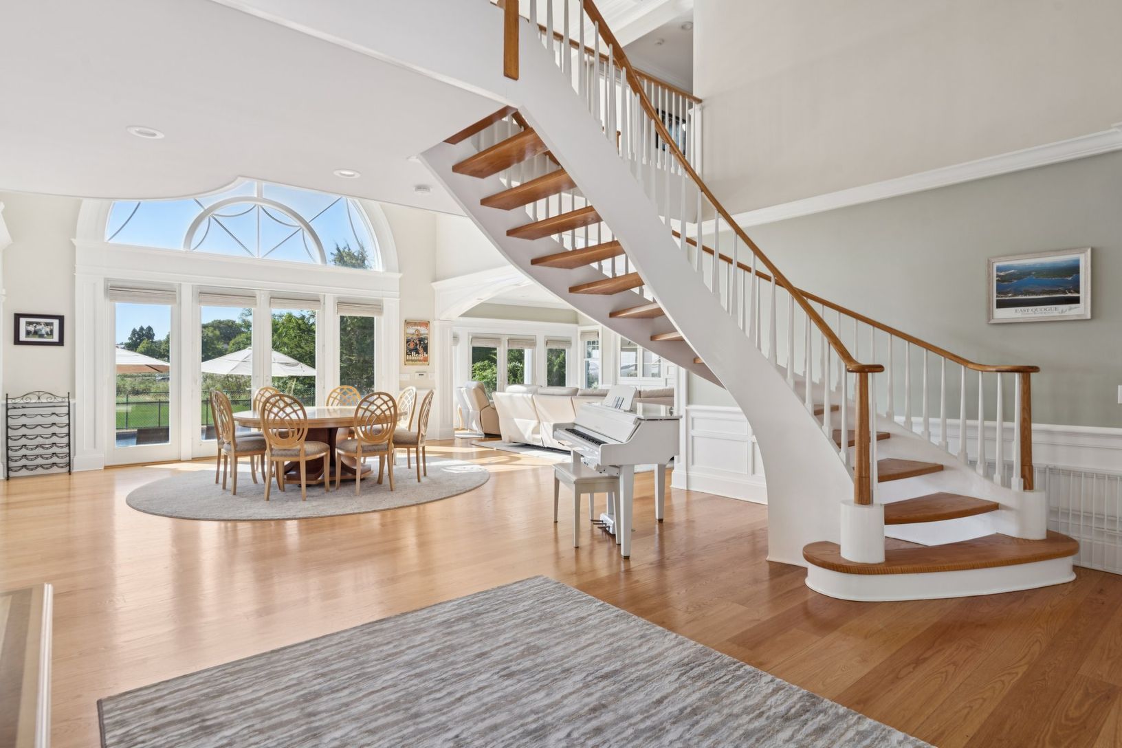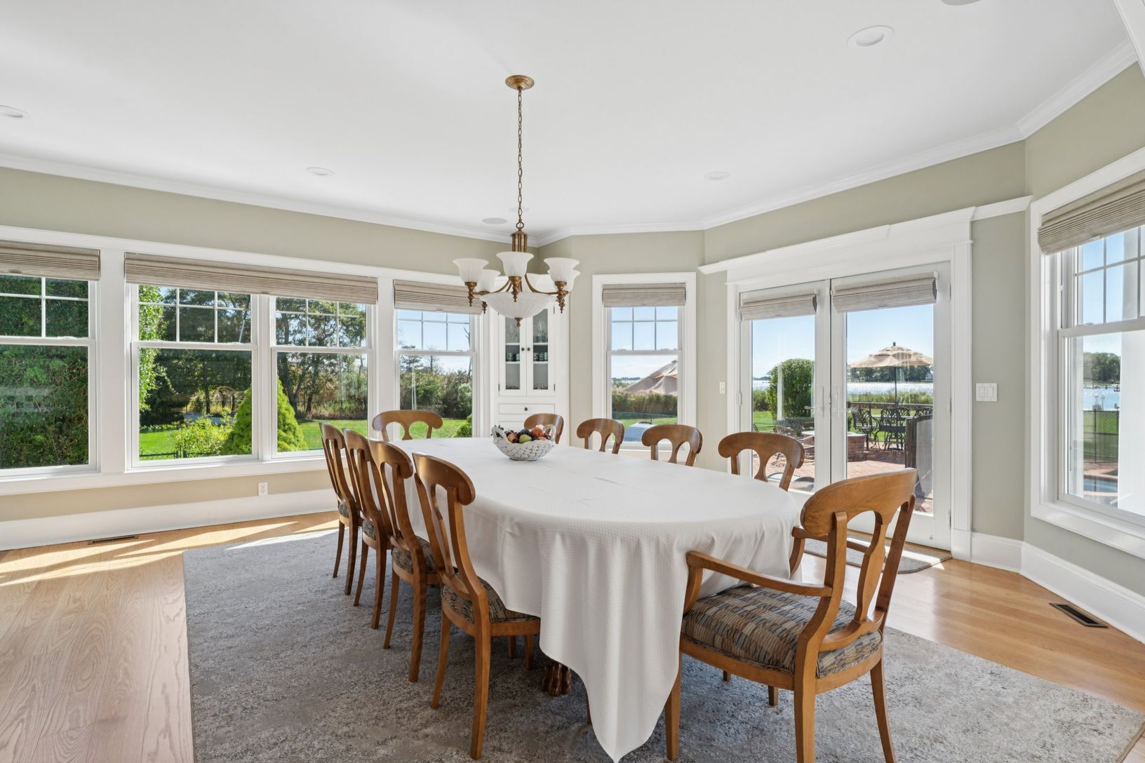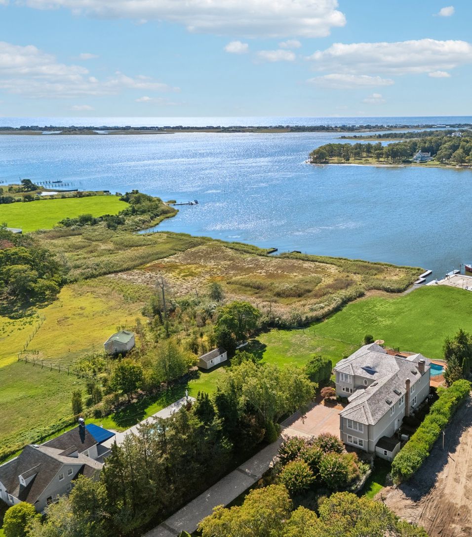 Set along East Quogue's highly sought-after Sunset Avenue, this 1.4-acre waterfront estate offers a rare combination of privacy, scale, and direct access to open water. Tucked deep off the road and framed by manicured hedges, a long private drive leads to the residence, creating a grand sense of arrival. With 100 feet of water frontage on Phillips Creek and views extending toward Shinnecock Bay, the property includes a deep-water dock designed