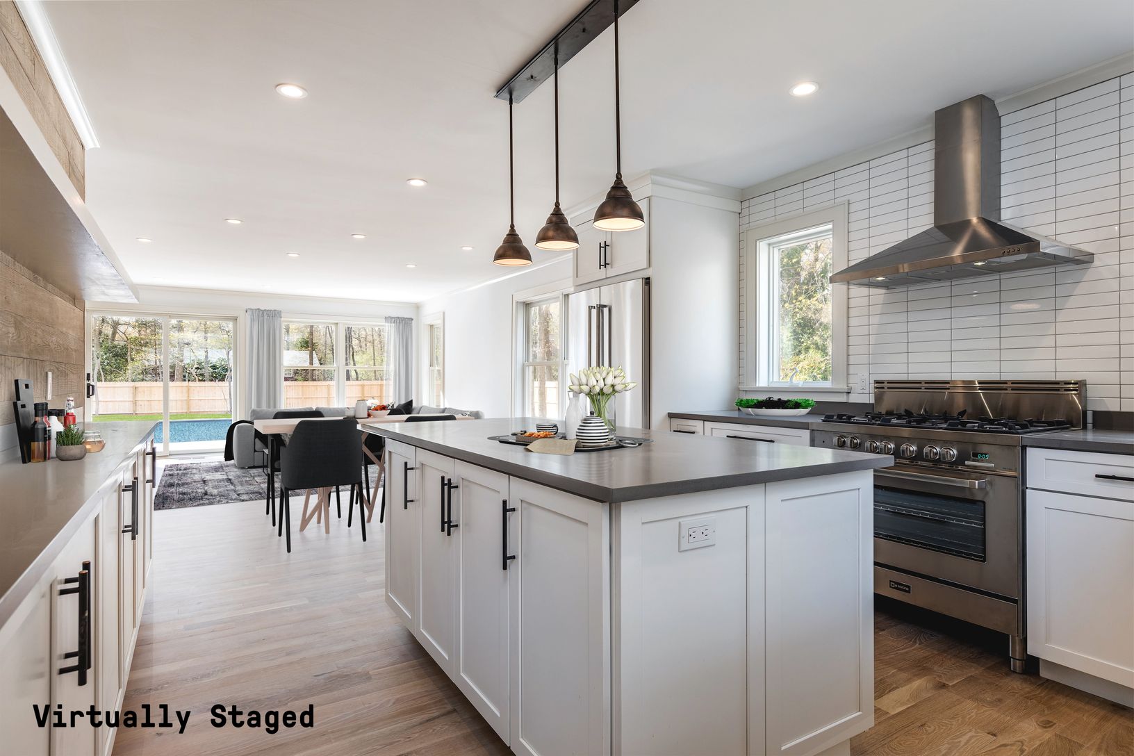 This newly renovated and expanded fully turn-key home has it all featuring 4 bedrooms and 3.5 baths. The open layout provides a perfect space for entertaining both inside and out between the kitchen, dining, living areas and exterior spaces. The chef's kitchen features top of the line stainless steel appliances, kitchen island, along with a nearby dining area. A junior master bedroom is situated on the 1st floor with an ensuite bath and access
