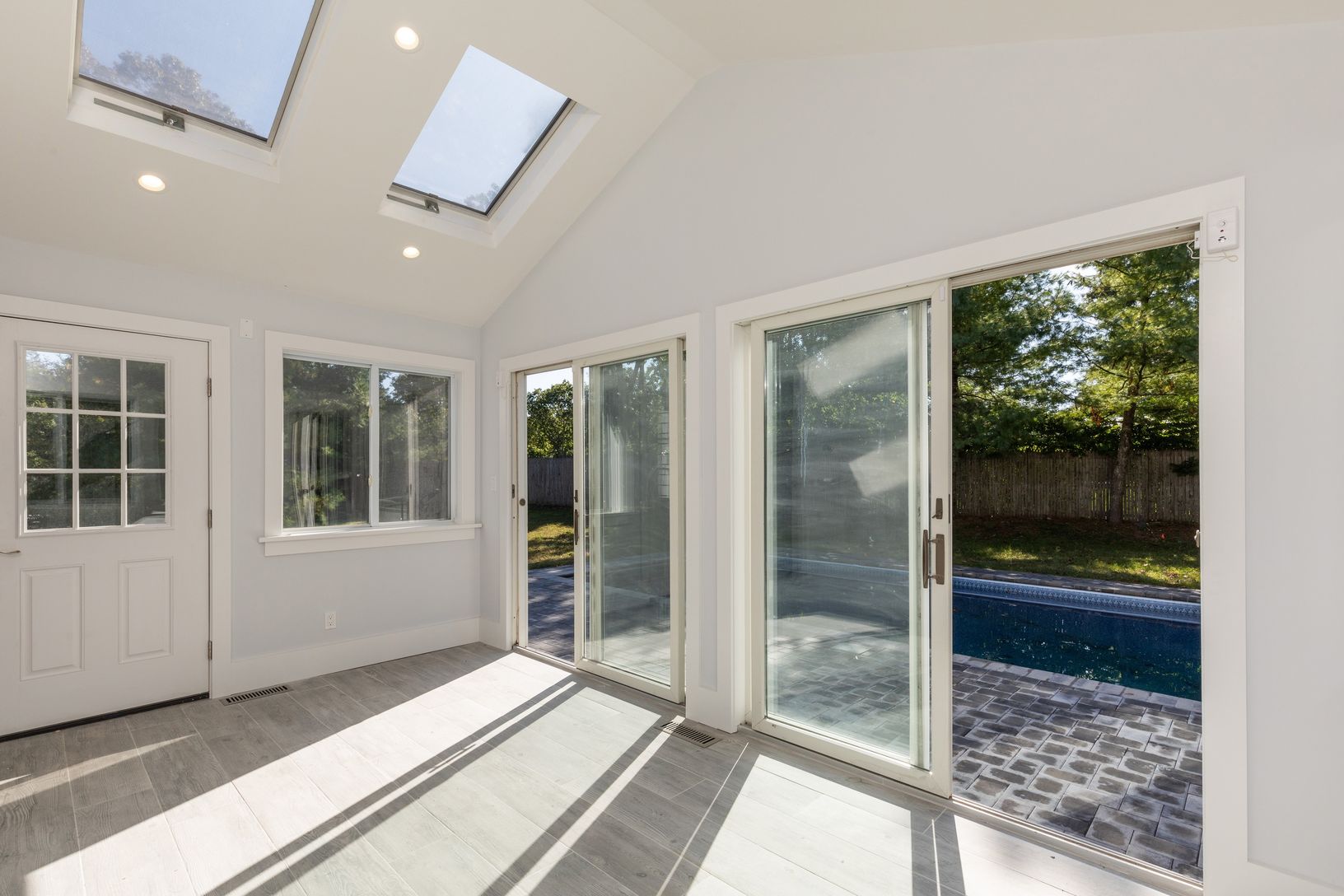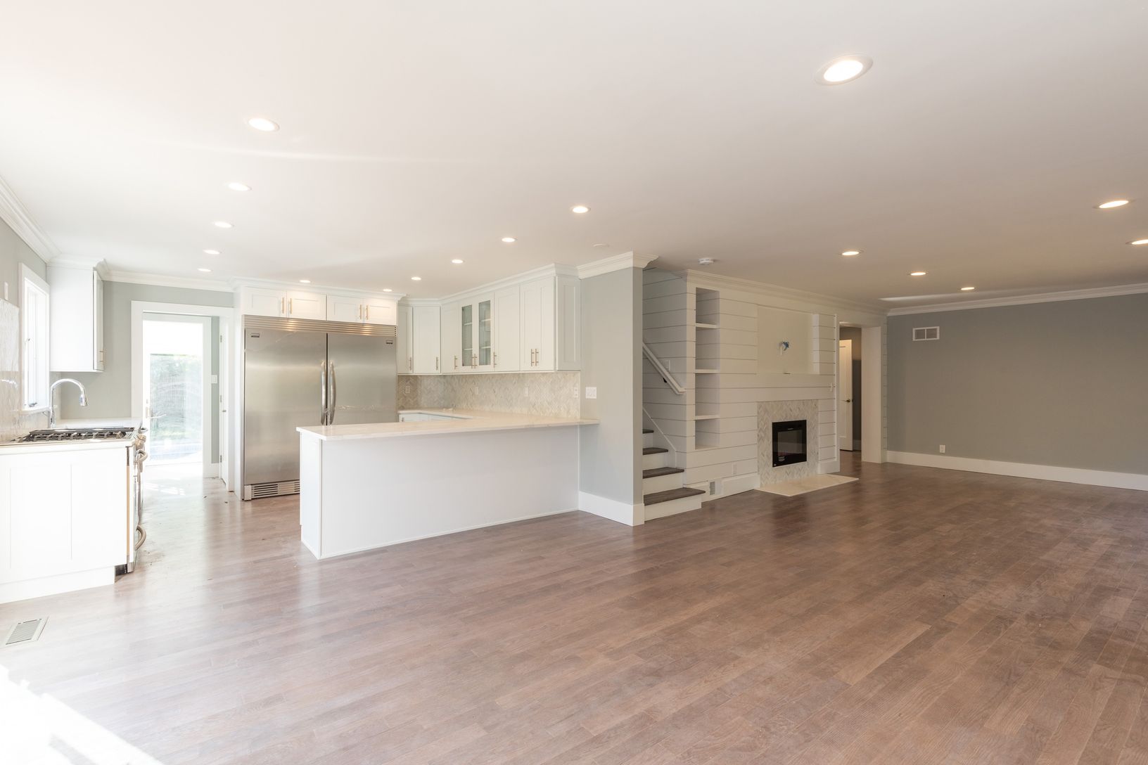 This south of the highway 3200 +/- square foot home was just completed , the high end renovation set on .89 acres with heated pool is not to be missed . The classic yet contemporary four bedroom , four and a half bathroom home with oak floors throughout has an open floor plan first floor with tons of natural light , the state of the art kitchen opens to dining area and living room with fireplace along with french doors that lead to den/office