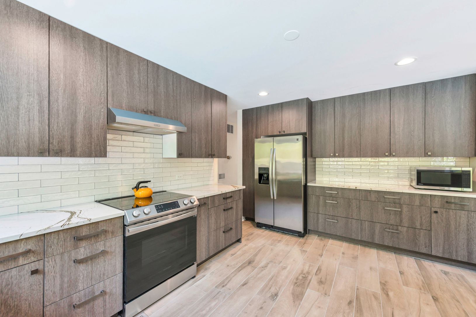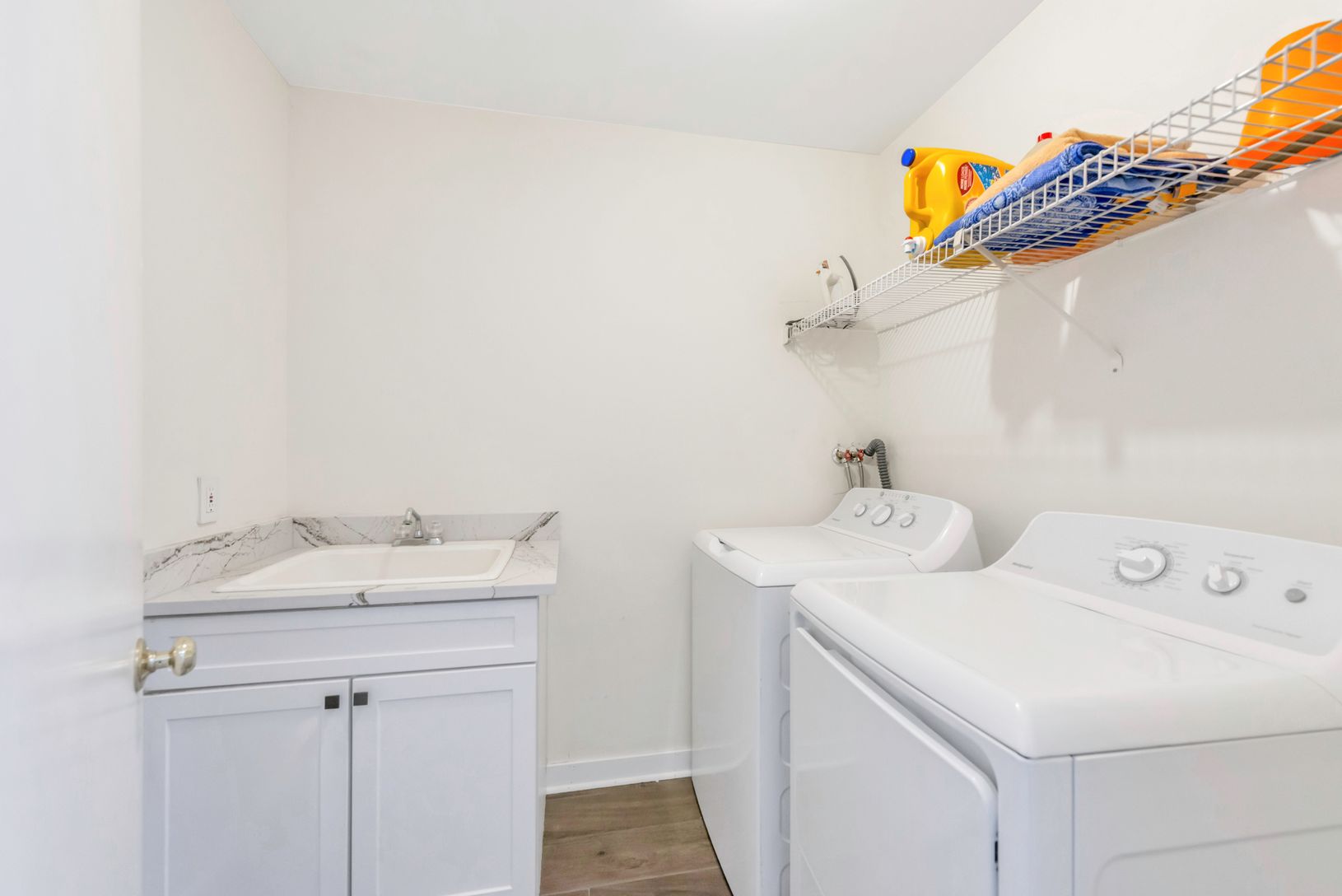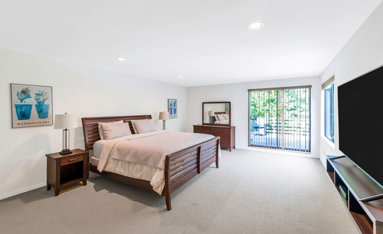 High ceilings and wood floors can be found throughout the interior. Entertain or simply enjoy each other’s company in the b