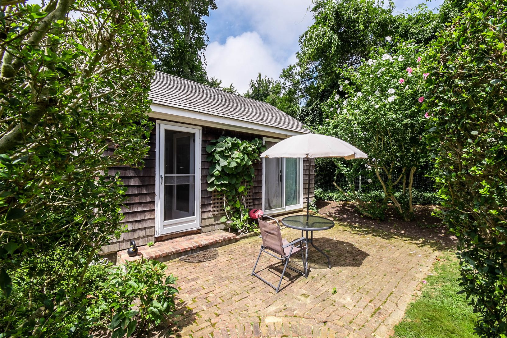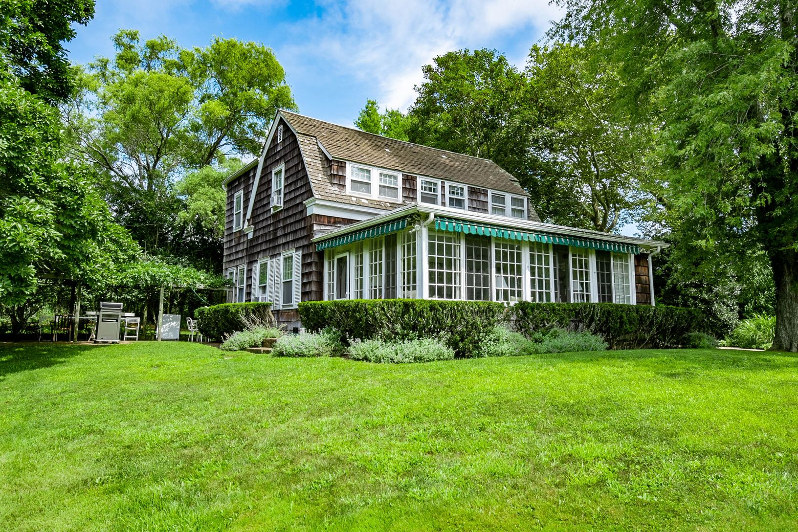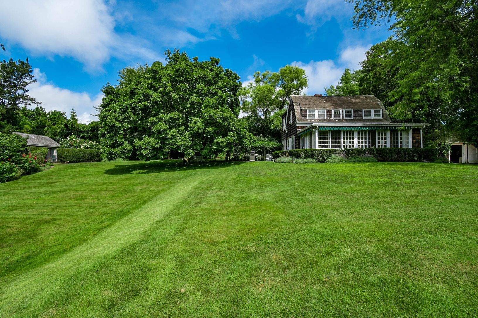 Sited on a 1.36 acre flag lot in East Hampton Village, located moments to local shops and dining as well as world class white sand ocean beaches. This storybook cottage exudes charm in every way. Offering 3 bedrooms and 3 full baths, a tastefully decorated interior with eat in kitchen and light filled sunroom. The exquisite grounds include mature trees, lush rolling lawn and a wisteria covered arbor over the brick patio, as well as a legal gue