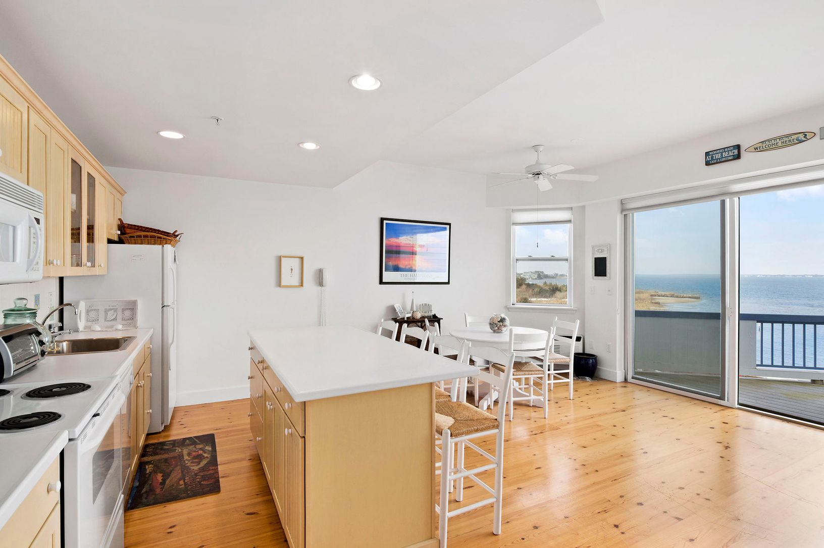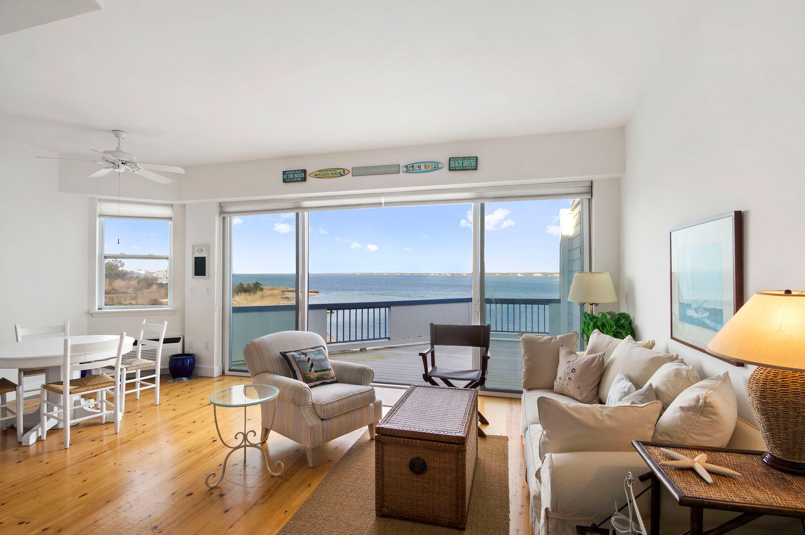 It's all about the views folks , and they get no better than this ! Expansive western exposure yielding incredible sunsets from the top floor.The most sought after unit in the most popular complex .Come for the summer ,or stay year round , your option to enjoy one of the few year round Condo's on Dune road . A spacious living area with two bedrooms and two full baths, tastefully updated with a beachy feel . This unit also has it's own washer/