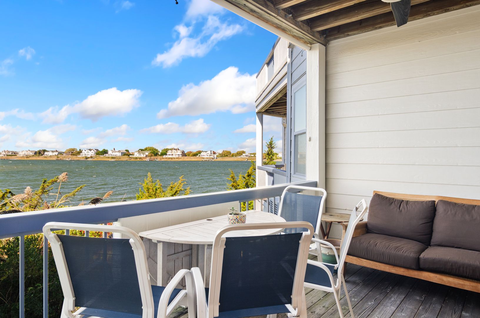 Spend your August soaking up the sun and sunsets in this stunning, fully renovated bayfront condo located in the Yardarm community of Westhampton Beach Village. This is the largest model in the complex, offering two bedrooms plus a bonus room and sleeping accommodations for up to eight guests. The open layout features a cooks’ kitchen with an oversized eat-in counter, a dining area, and a bright, spacious living room that flows seamlessly onto