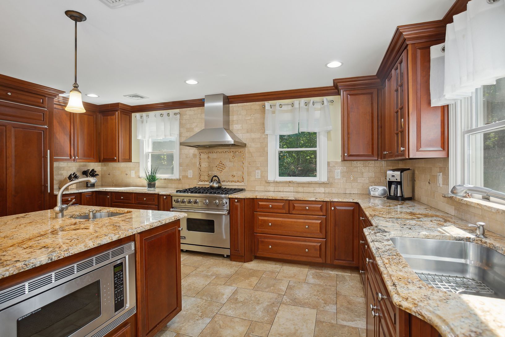 Welcome to Your Hamptons Getaway! As you walk into the home, you are greeted by an abundance of Natural Light and a Two Story Entrance Foyer. Formal Living Room with Wood-Burning Fireplace, Formal Dining Room, extra-large Great Room with Gas Fireplace and Sliding Glass Door leading to Back Deck. The Gourmet Kitchen features Sub-zero Refrigerator/Freezer, Viking Gas Range, Asko Dishwasher, Built-In Sharp Microwave, Main Sink and Prep Sink has L