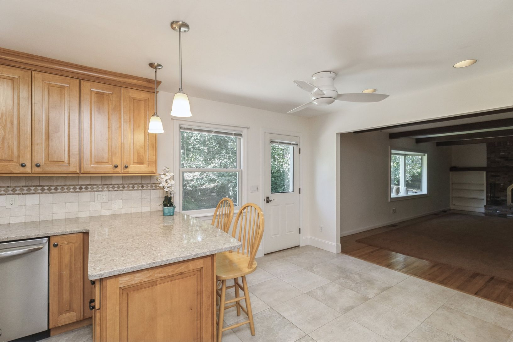 Blissfully quiet and always green; pinewoods scented. Strategically located only two country blocks from the W-I-D-E-S-T Long Island Sound permit- required beach and the North Fork's beloved, agriculture-focused, action-packed Sound Avenue, as well as the East End's most diverse shopping districts along and between Main Street and Old Country Road. Inside, there's lots of rooms with lots of room: great light throughout, an eat-in kitchen, form