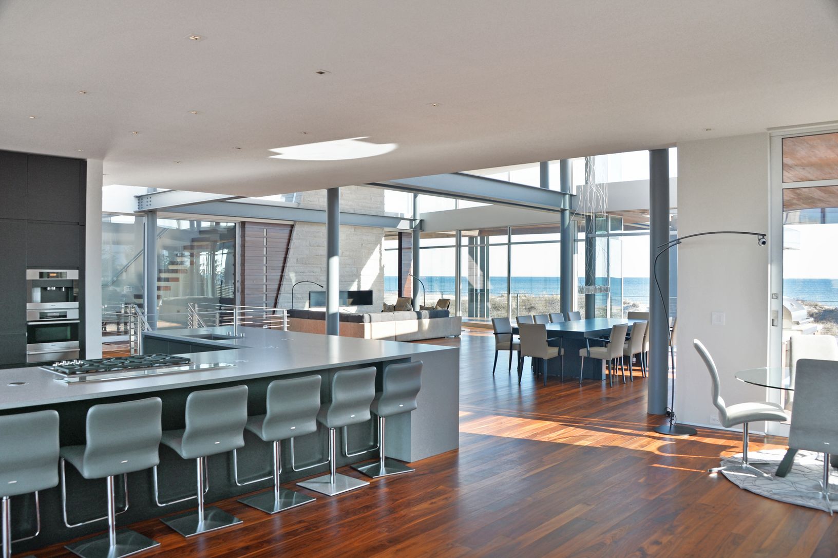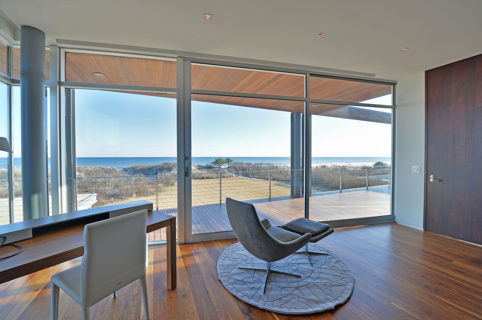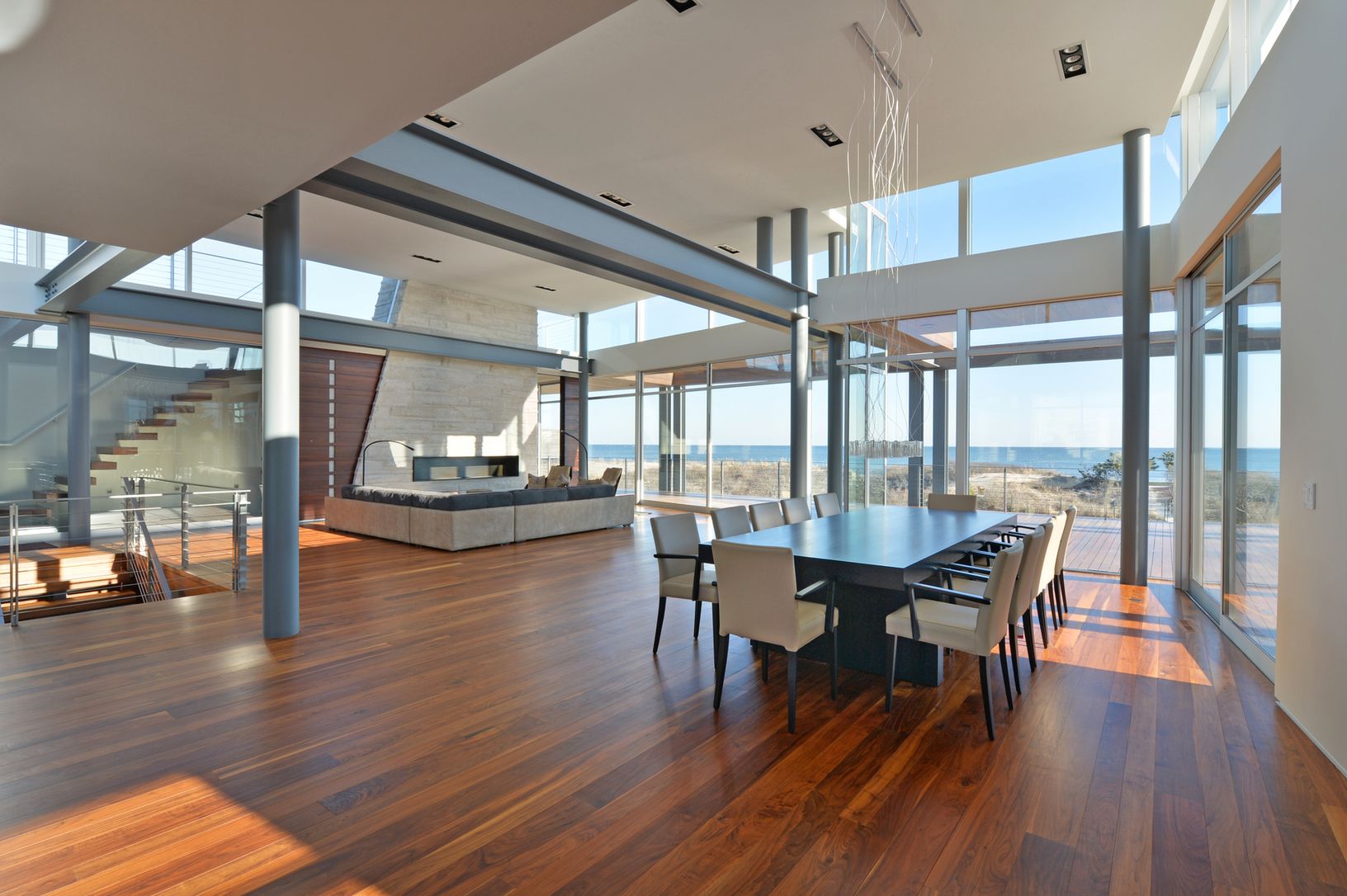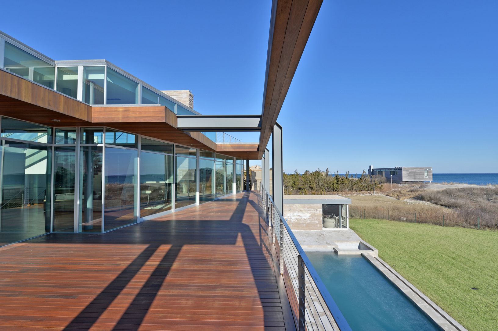 Stunning Modern home located south of the highway in Bridgehampton. The home, which spans an impressive 9,500 sf, sits on nearly 1.5 acres of some of the most sought-after oceanfront property in Hamptons. The ocean can be seen and heard from essentially anywhere on the property, creating an atmosphere of absolute paradise. The home's interior includes 7 bedrooms, 10 bathrooms, walnut and limestone floors, soaring industrial-style ceilings and