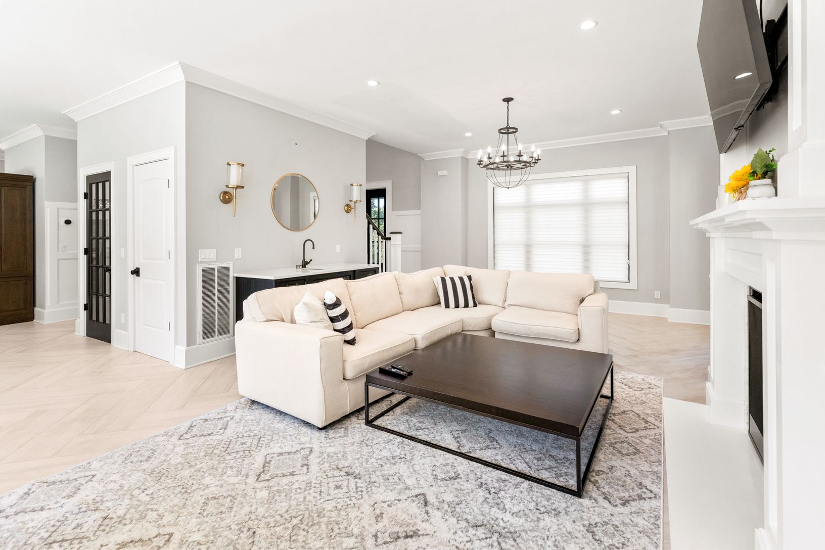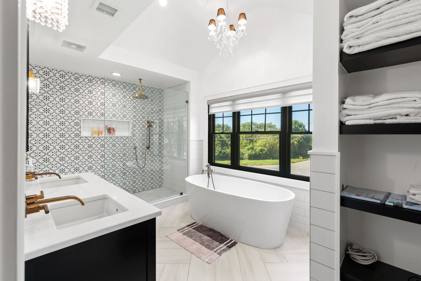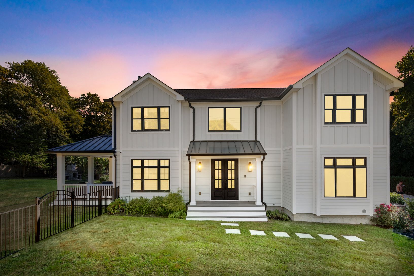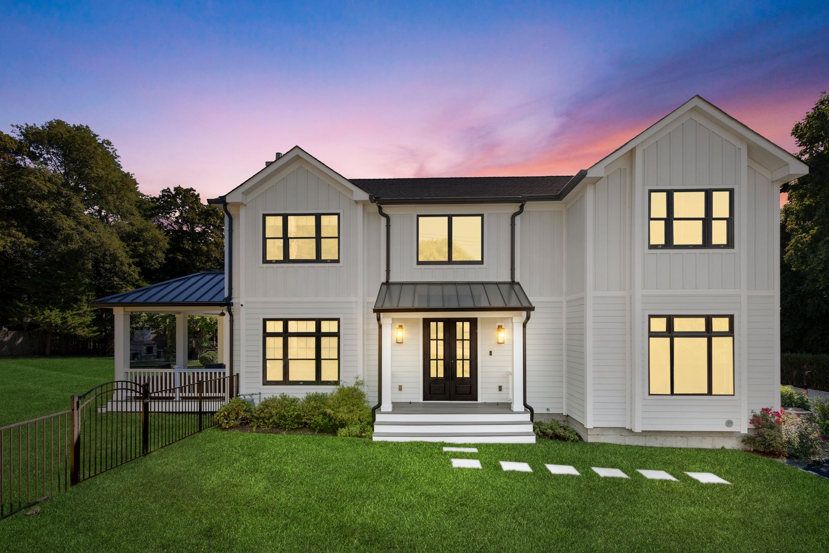 This beautiful, seven bedroom, six bath new construction features an incredible open-concept floor plan with a generous gourmet chef's kitchen, attached dining area, living/family room and fireplace. The upper level houses five bedrooms, and three full bathrooms. The beautifully designed master suite includes a private balcony, and master bath with a large walk-in waterfall shower and stand-alone soaking bathtub. Large modern black windows and