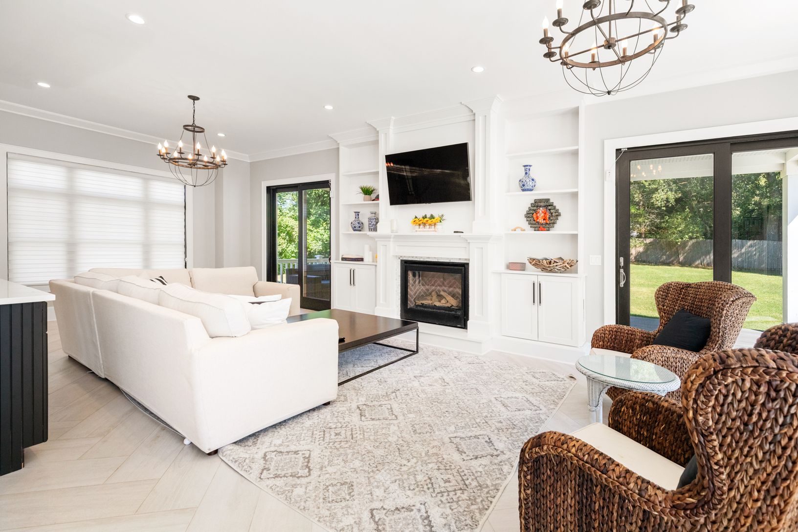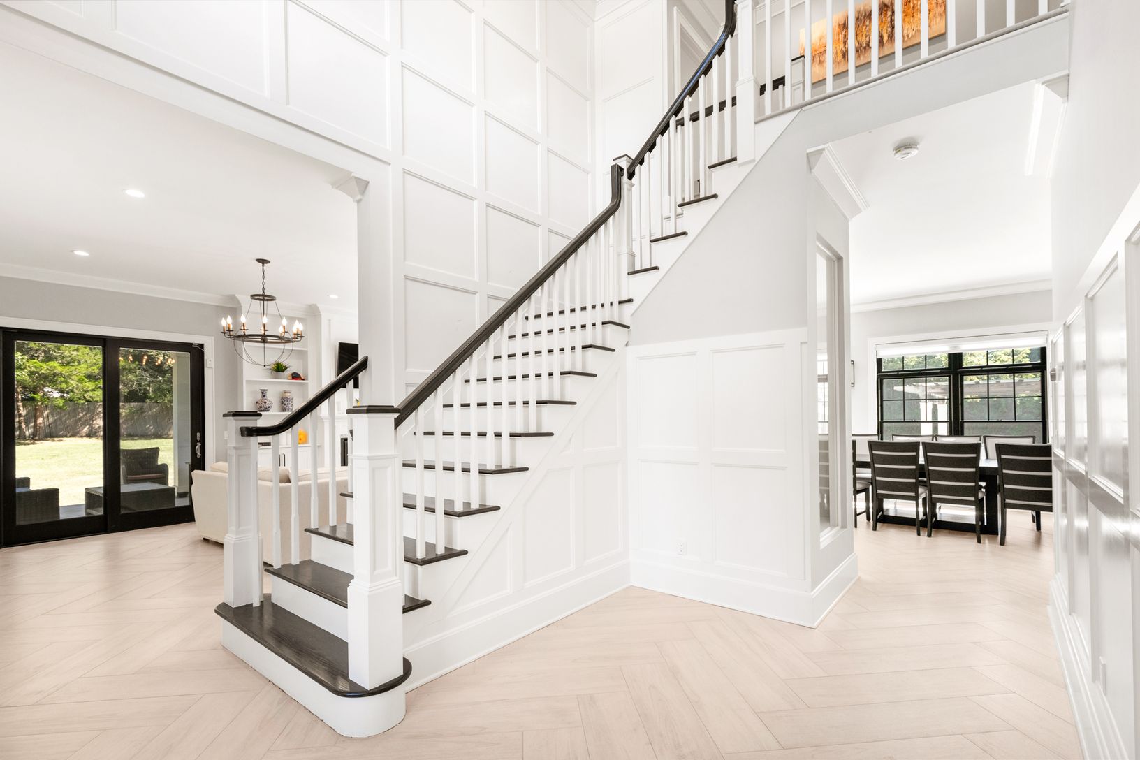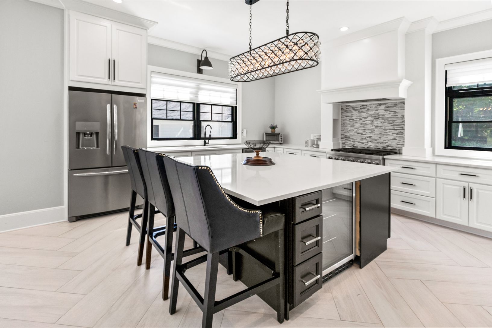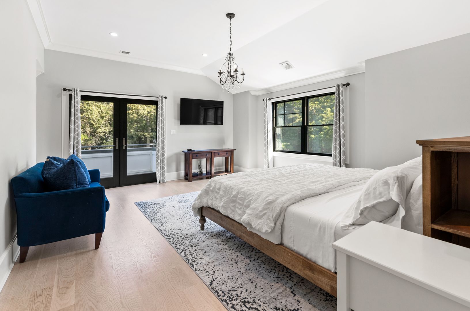 This beautiful, seven bedroom, six bath new construction features an incredible open-concept floor plan with a generous gourmet chef's kitchen, attached dining area, living/family room and fireplace. The upper level houses five bedrooms, and three full bathrooms. The beautifully designed master suite includes a private balcony, and master bath with a large walk-in waterfall shower and stand-alone soaking bathtub. Large modern black windows and