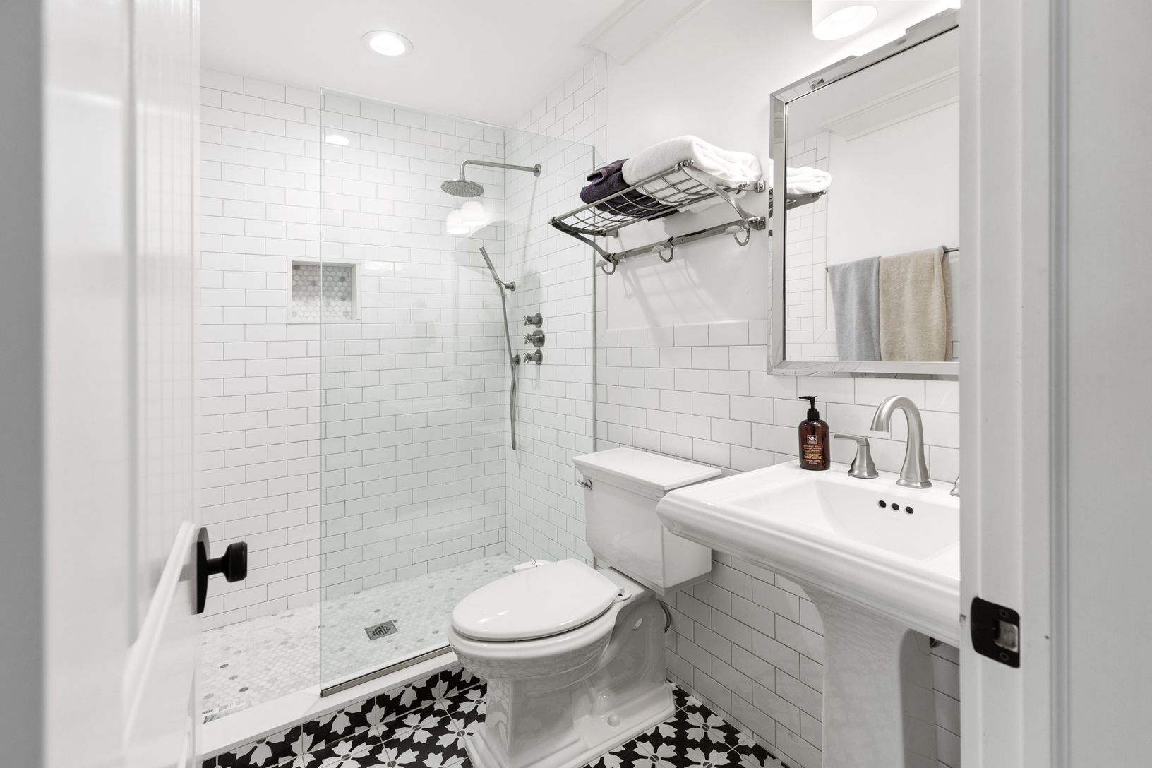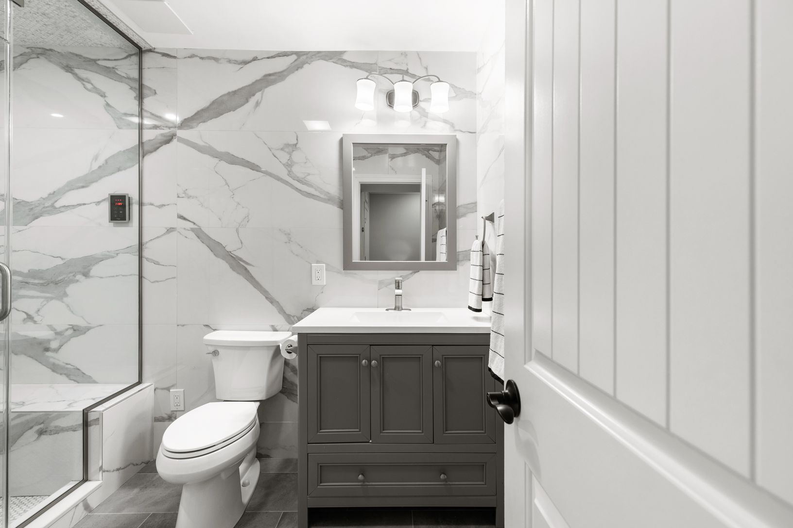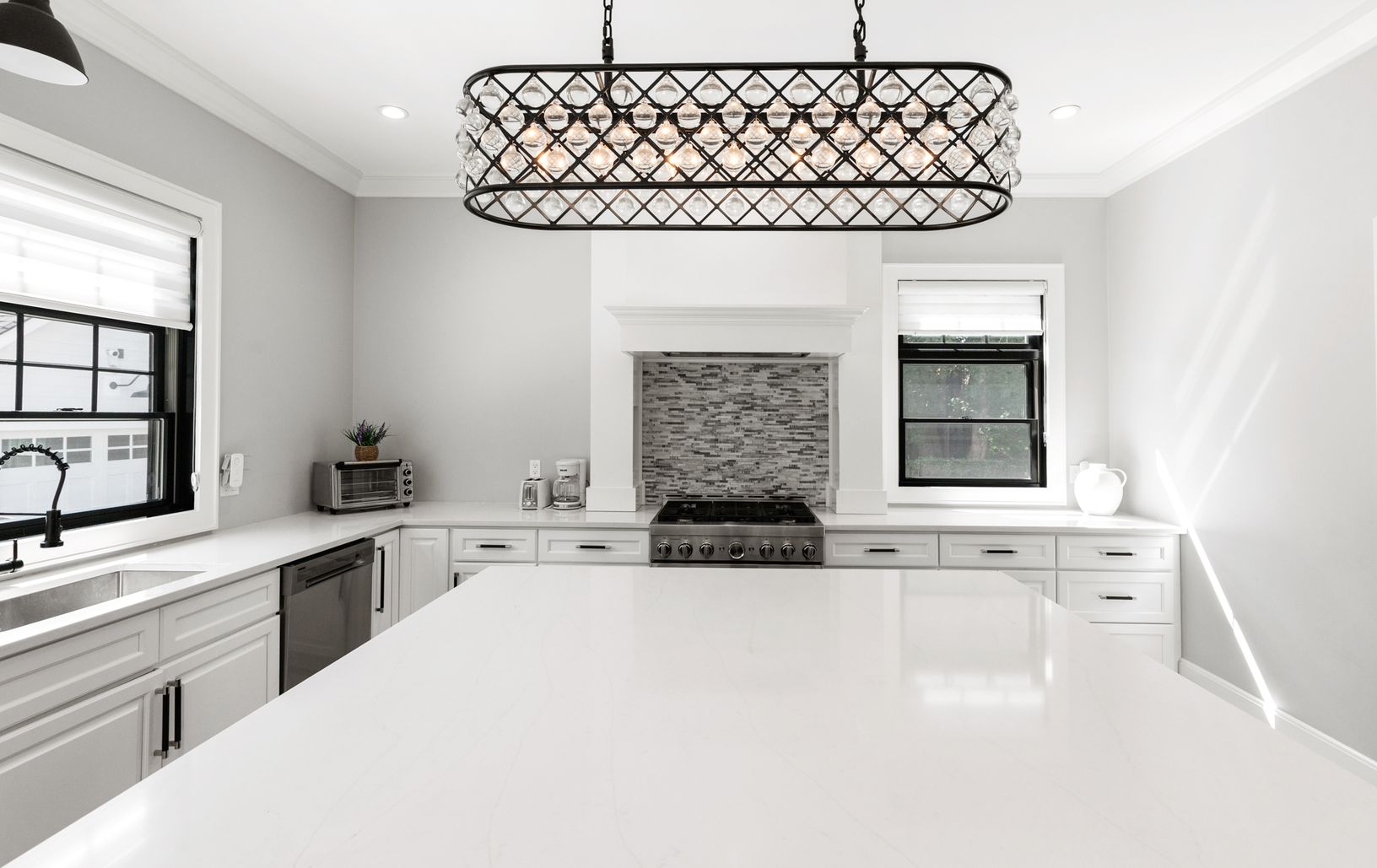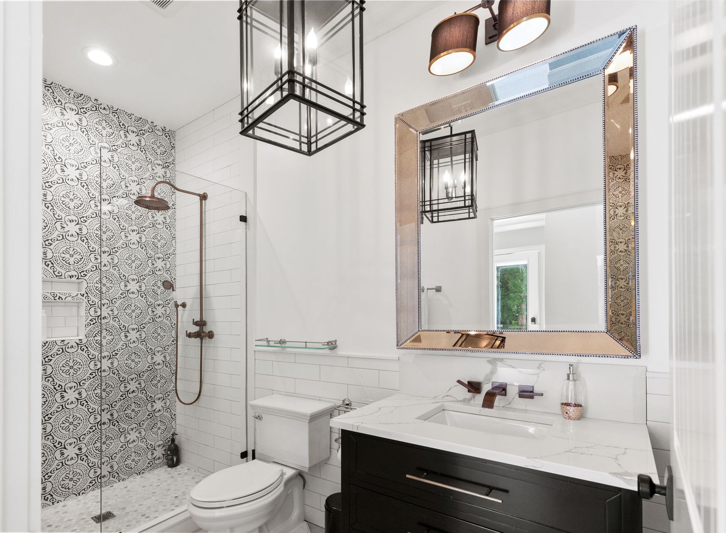 This beautiful, seven bedroom, six bath new construction features an incredible open-concept floor plan with a generous gourmet chef's kitchen, attached dining area, living/family room and fireplace. The upper level houses five bedrooms, and three full bathrooms. The beautifully designed master suite includes a private balcony, and master bath with a large walk-in waterfall shower and stand-alone soaking bathtub. Large modern black windows and