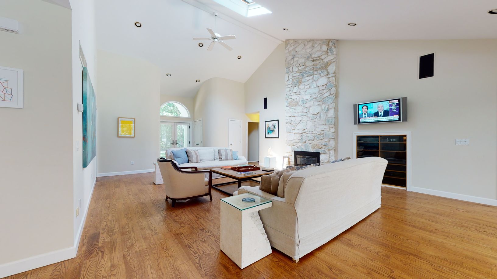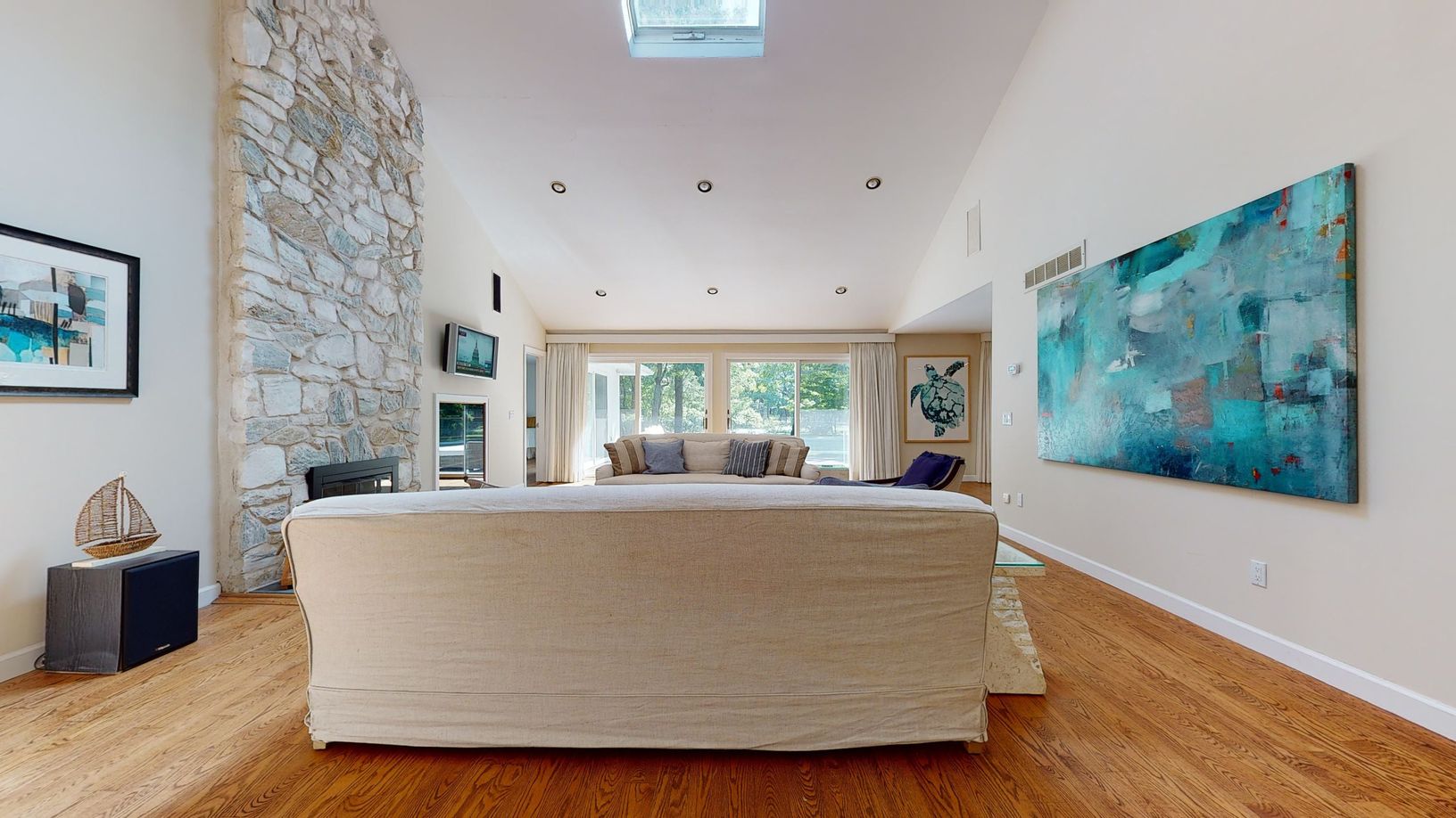 This newly renovated, one level post modern, sits on 3.2 private acres of perfectly manicured land. The open layout boasts a spacious living room w/cathedral ceilings & fireplace, 4 bedrooms, 3.5 bathrooms, an impressive chef's kitchen w/stainless appliances & large stone island. The master suite has sliders leading to the amazing yard. There is also an impeccable full size basement with it's own entrance to the backyard and a 2 car ga