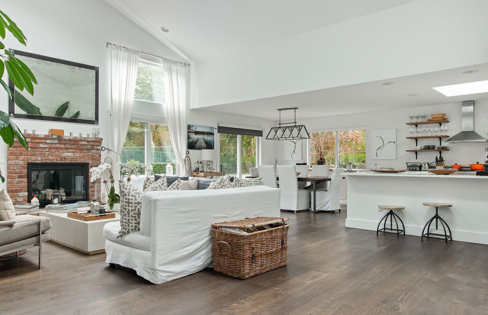 Close to Atlantic Ocean beaches in convenient East Quogue, this residence offers all amenity favorites including Pool, Tennis, 1.84 +/- acres of lush grounds, and an open floor plan with soaring vaulted ceilings in the spacious great room with fireplace. The 3000 square foot home provides 5 bedrooms and 4 full baths. With wide plank hardwood or ceramic tile flooring throughout, the home is bright, airy and flooded with brilliant light from lar