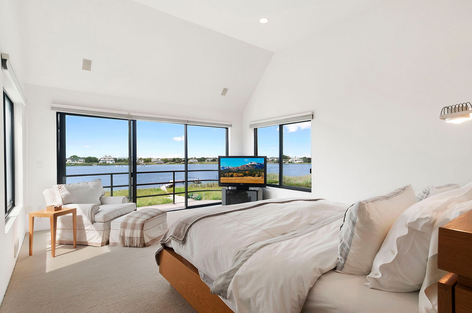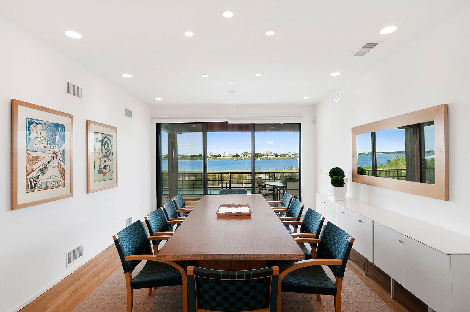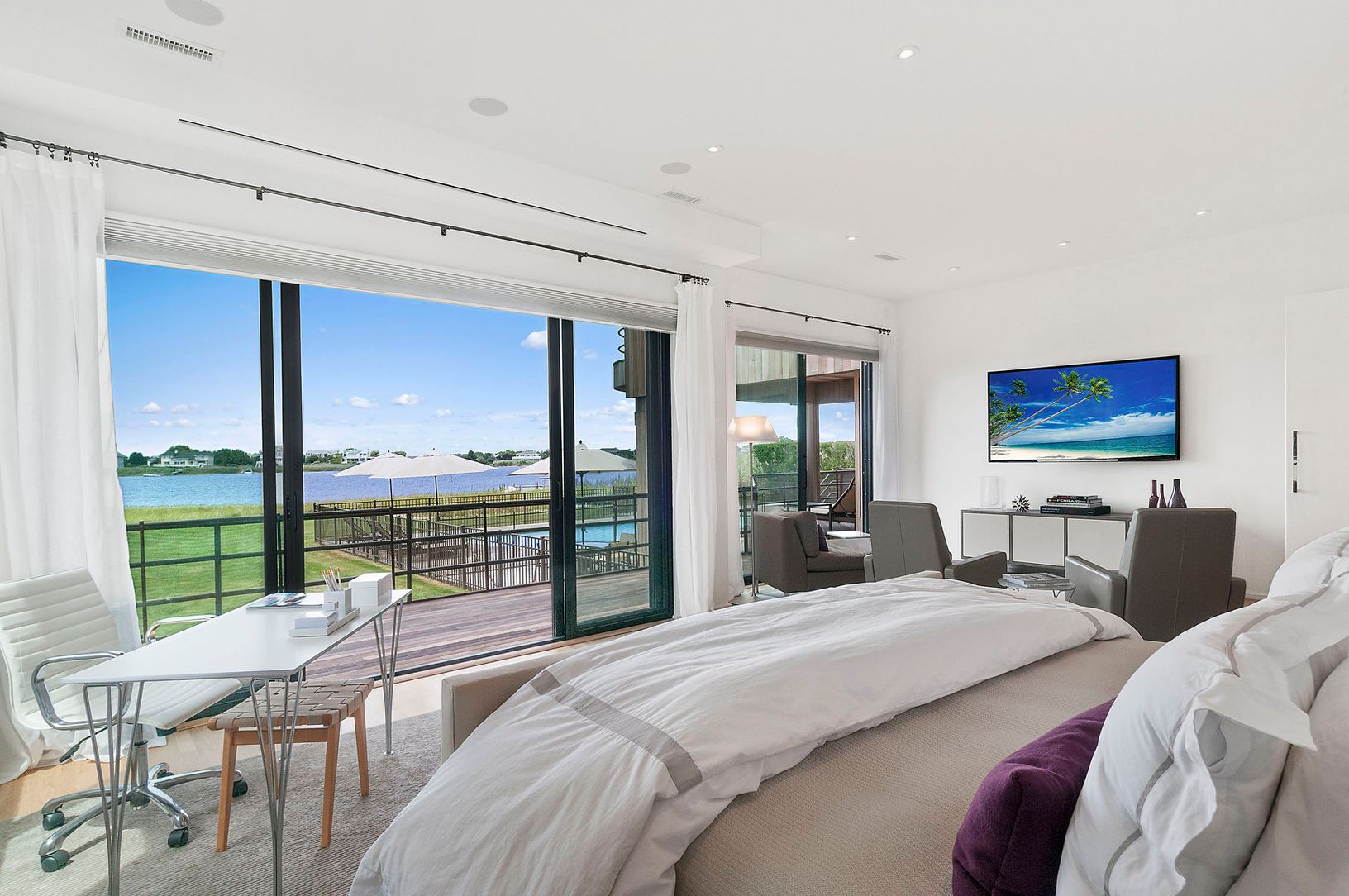 This ultra-pristine and stylish bayfront Contemporary -- built in 1980 and continuously upgraded/renovated through the years -- is located in a prime Dune Road location in Westhampton Beach and offers 132 feet of bulkheaded bay frontage and 5,500 sq. ft. of ample living space, complete with 8 bedrooms and 11 ½ baths. Designed to maximize sunsets and water views, the first floor features an open living room, white oak floors, skylights and wood