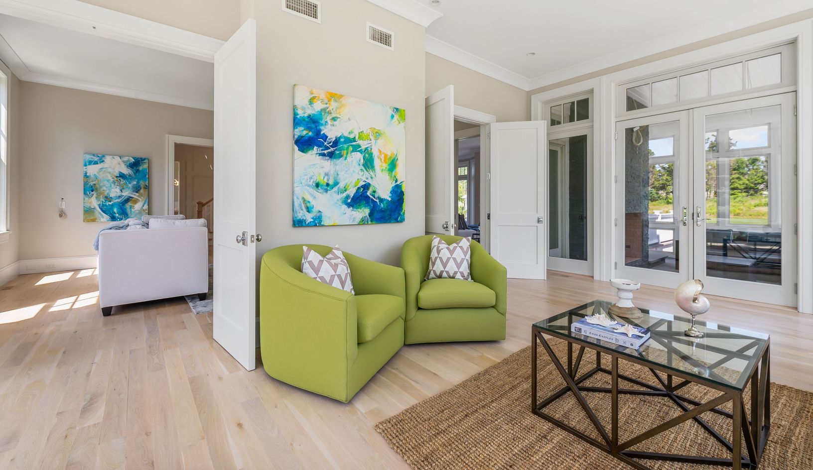 The latest project from Georgica Builders, this impressive North Main Street home is newly completed. In the heart of Southampton Village, this 1± acre property is in the perfect location with easy access to Village shopping, dining and beaches. The brand new home offers 8,000± sf of living space with a total of seven bedrooms, seven full and two half baths. The first floor features a gorgeous foyer, formal dining room and spacious living room