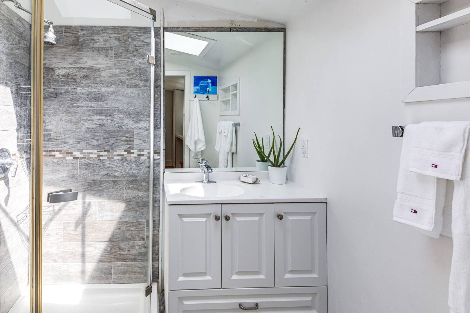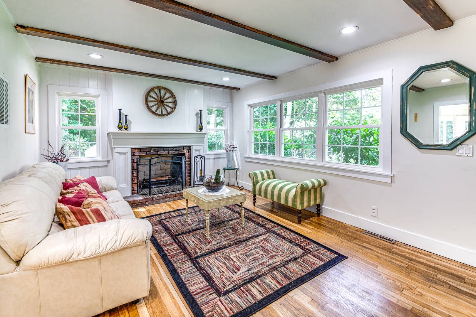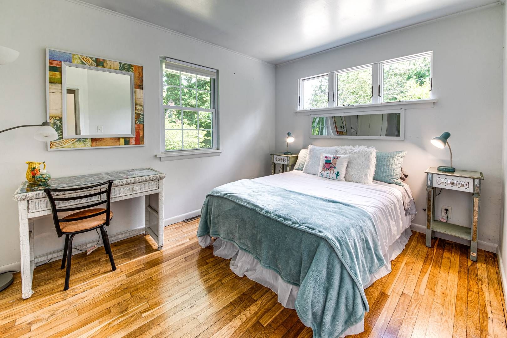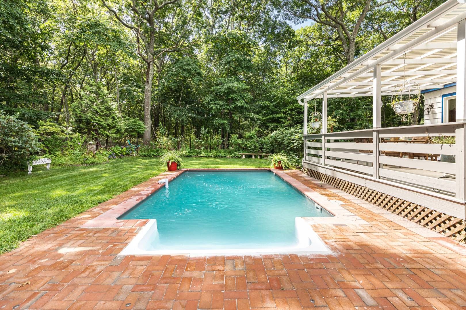 Good things DO come in small packages! This clean and bright ranch style home is deceiving to the eye. There are 5 total bedrooms, 3 of which are ensuite, and 4.5 bathrooms tucked into this tidy package.The main living room features hardwood floors and a wood burning fireplace. The adjacent eat in kitchen opens to a large covered deck that overlooks the back yard and pool area. The main level also features a primary en suite bedroom, and two a